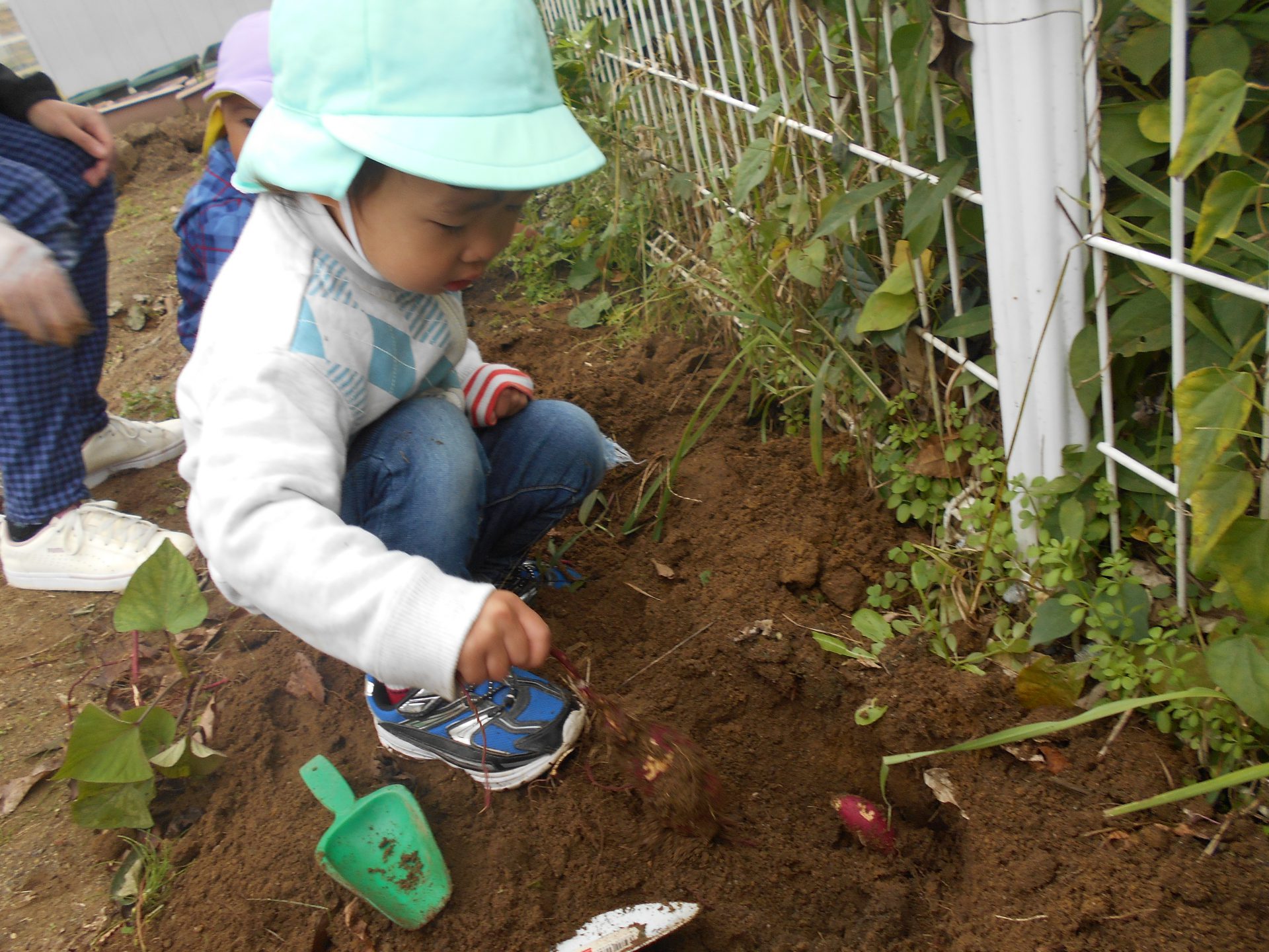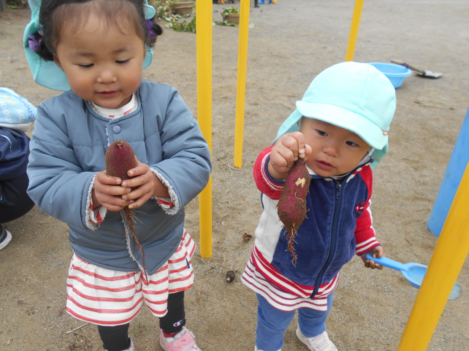 園内の畑のお芋は、年中さん年少さん未満児さんでとりました☆