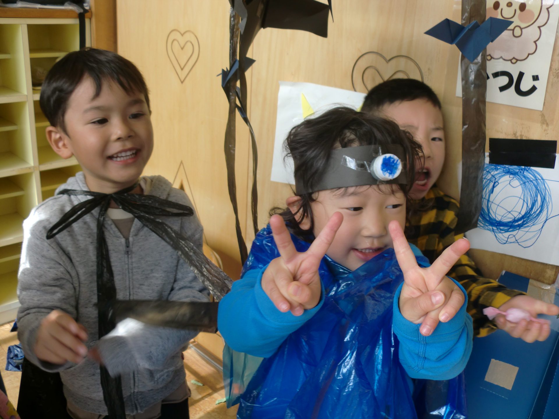 夏にやった年長さんのお化け屋敷を見て”僕たちもやりたい!!”とコツコツと準備していた年中さん。