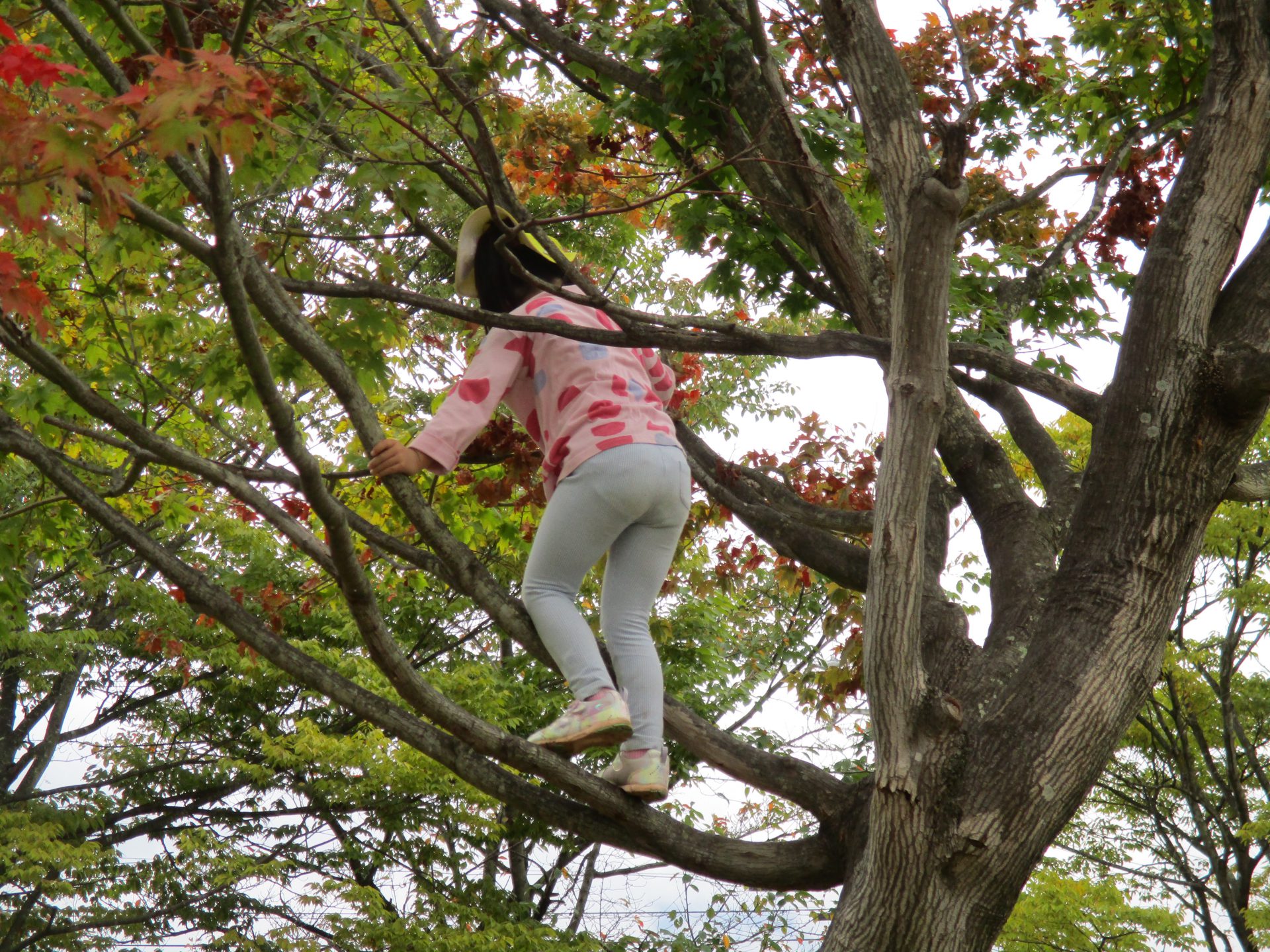年中さんのお姉さんたちが木登りをしているのをみて年少さんもチャレンジ!!