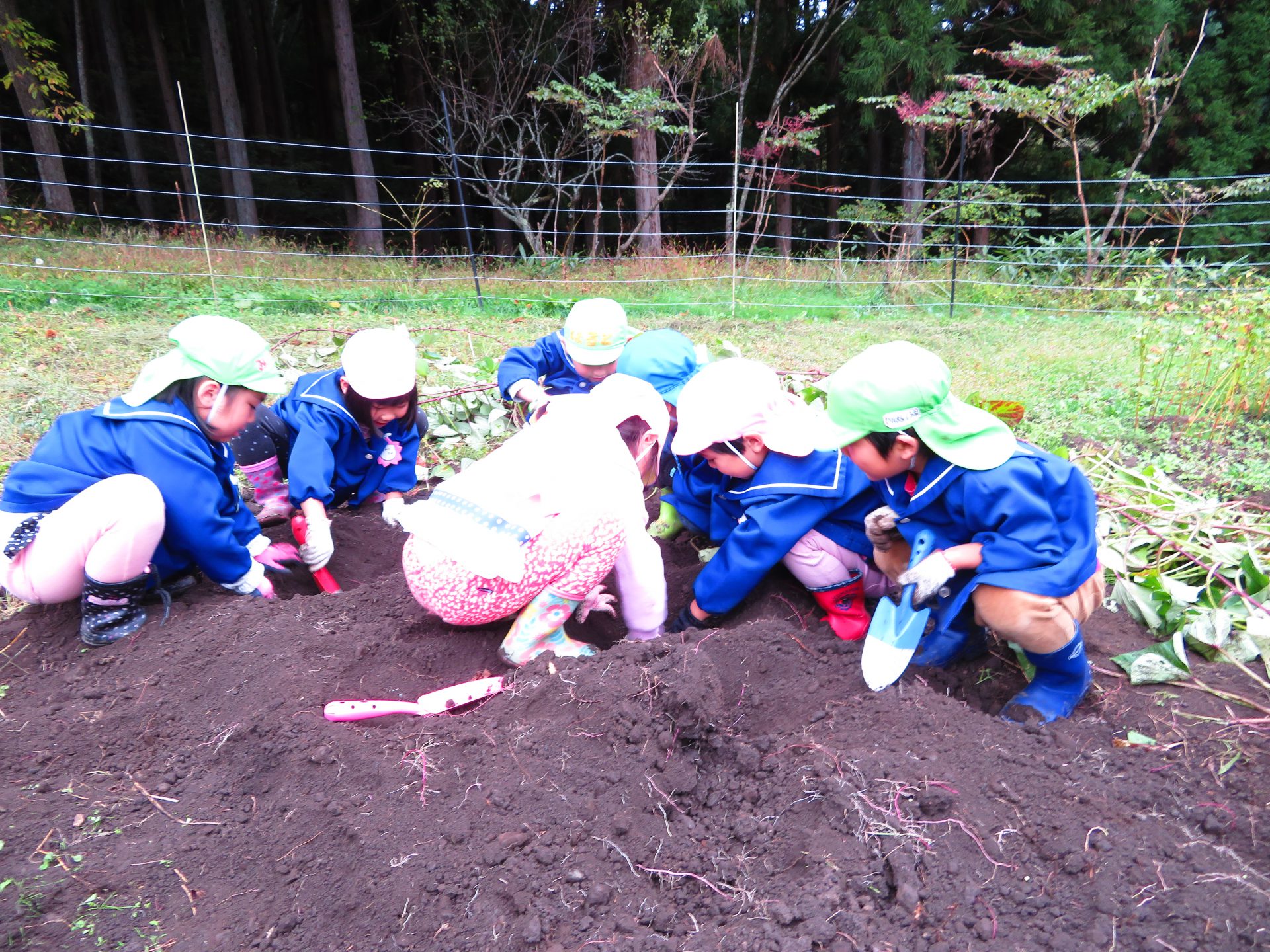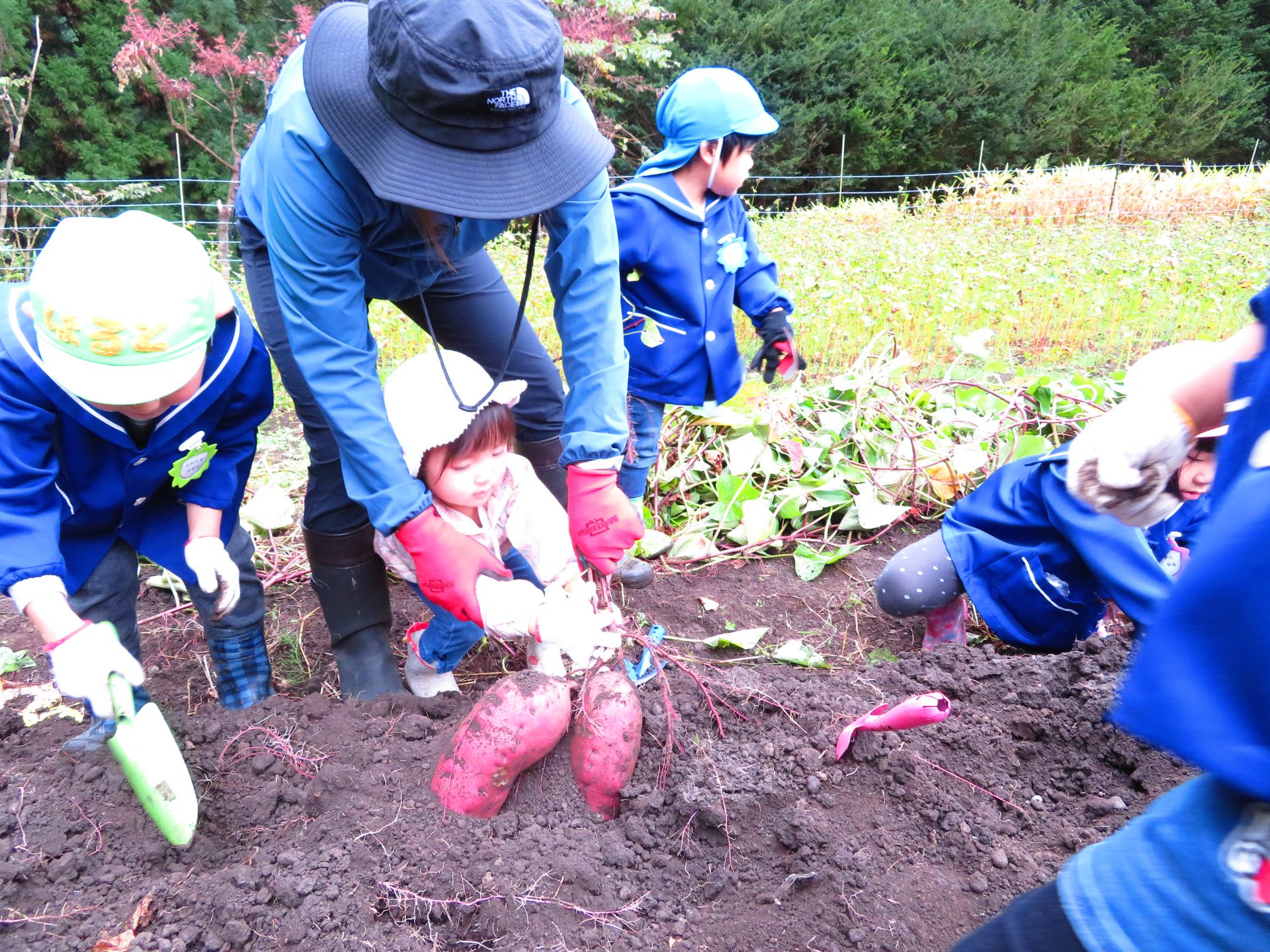 ・土はとても固くて、手では掘れない。スコップが必要だけど、気をつけないとおいもが切れちゃう。