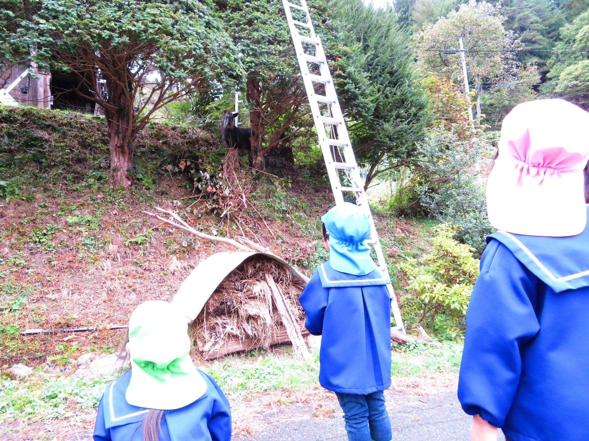 「保育園にいつも来るカモシカさんより大きいね。」