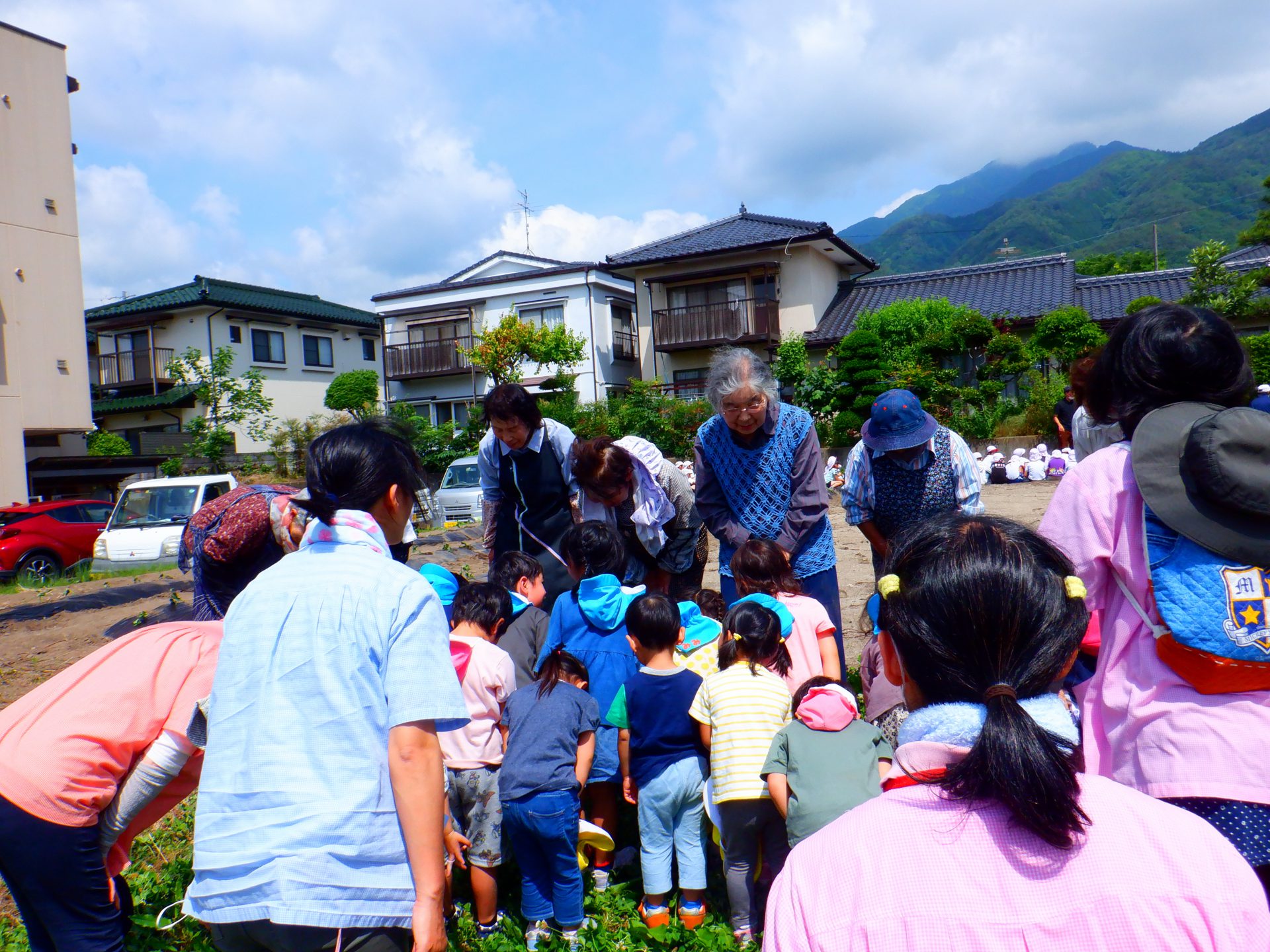 ・夕市の会の皆さんとサツマイモ作りの交流を始めて20年以上になります。市街地に住む我が園の子どもたちにとってこのような畑活動を体験させていただける貴重な機会となっています。