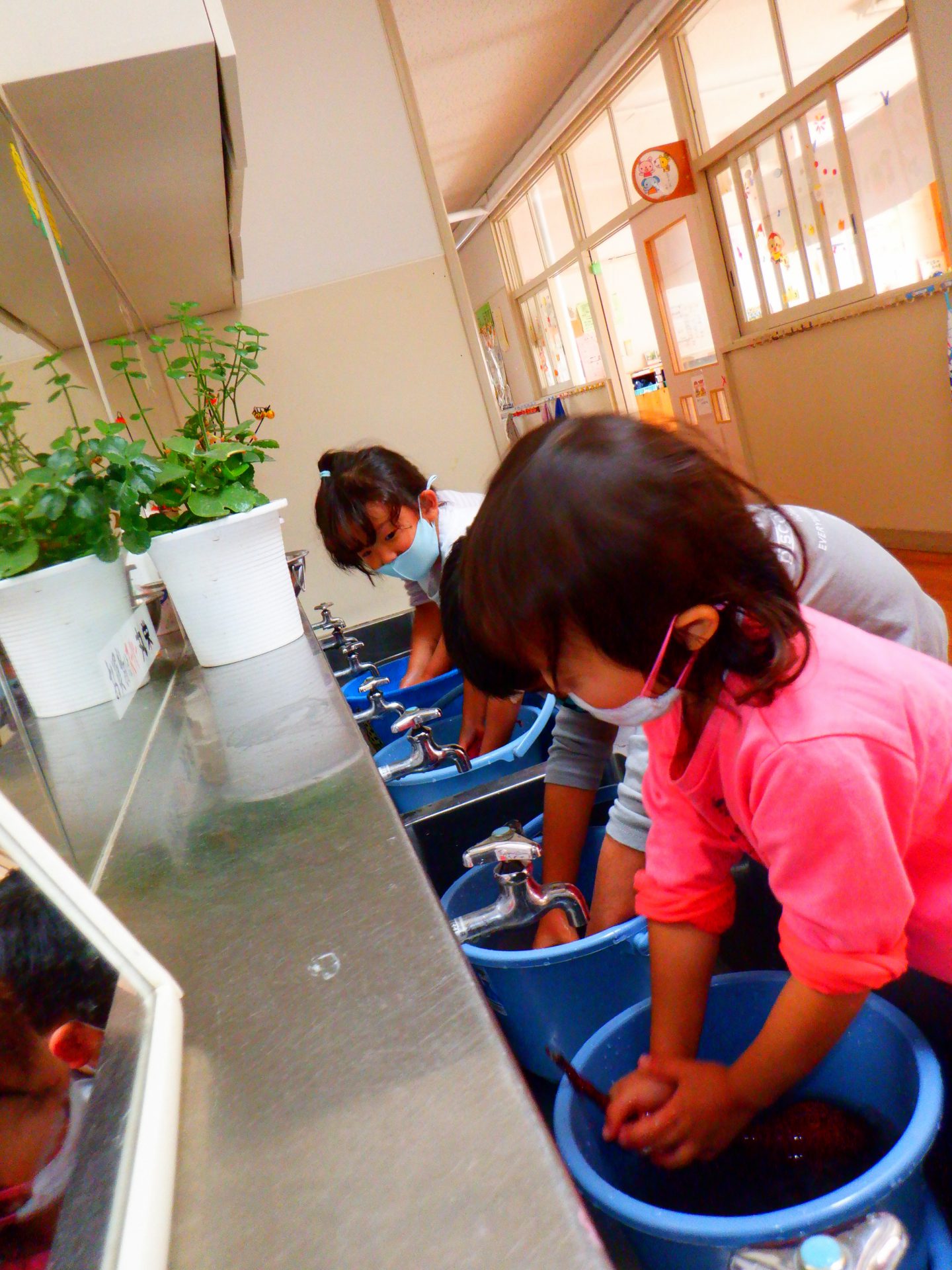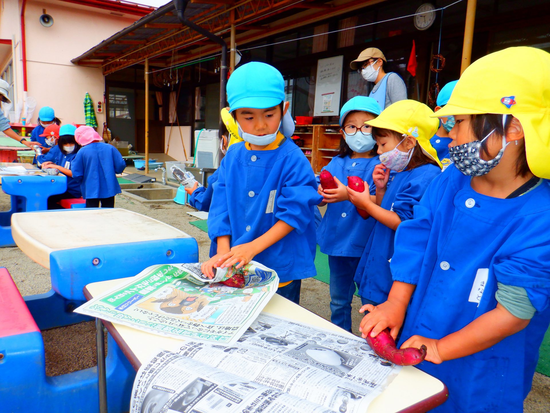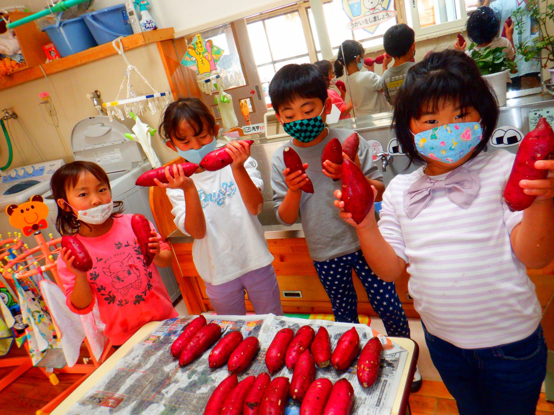 前日、年長さんがサツマイモを洗って準備をしてくれました。