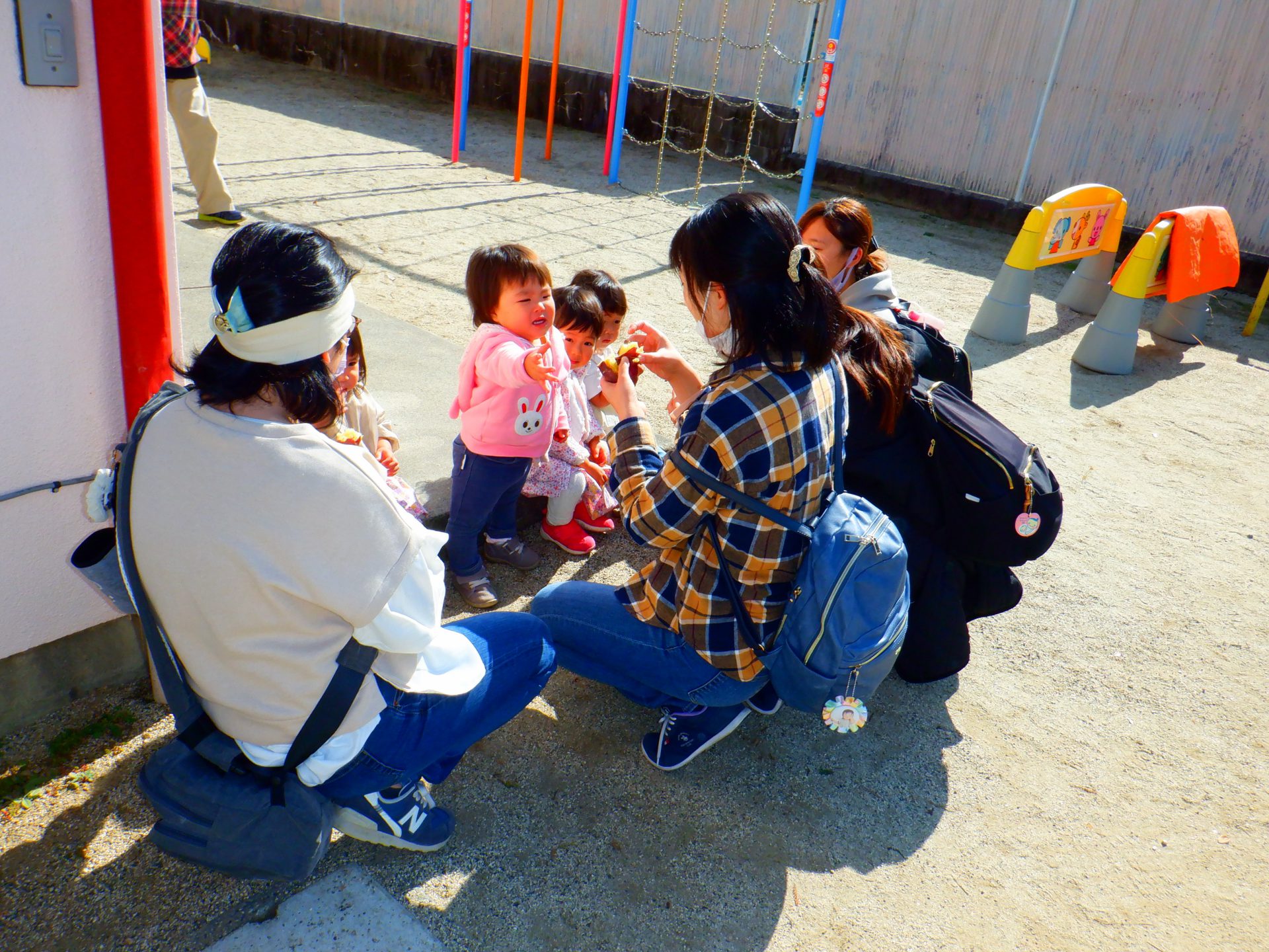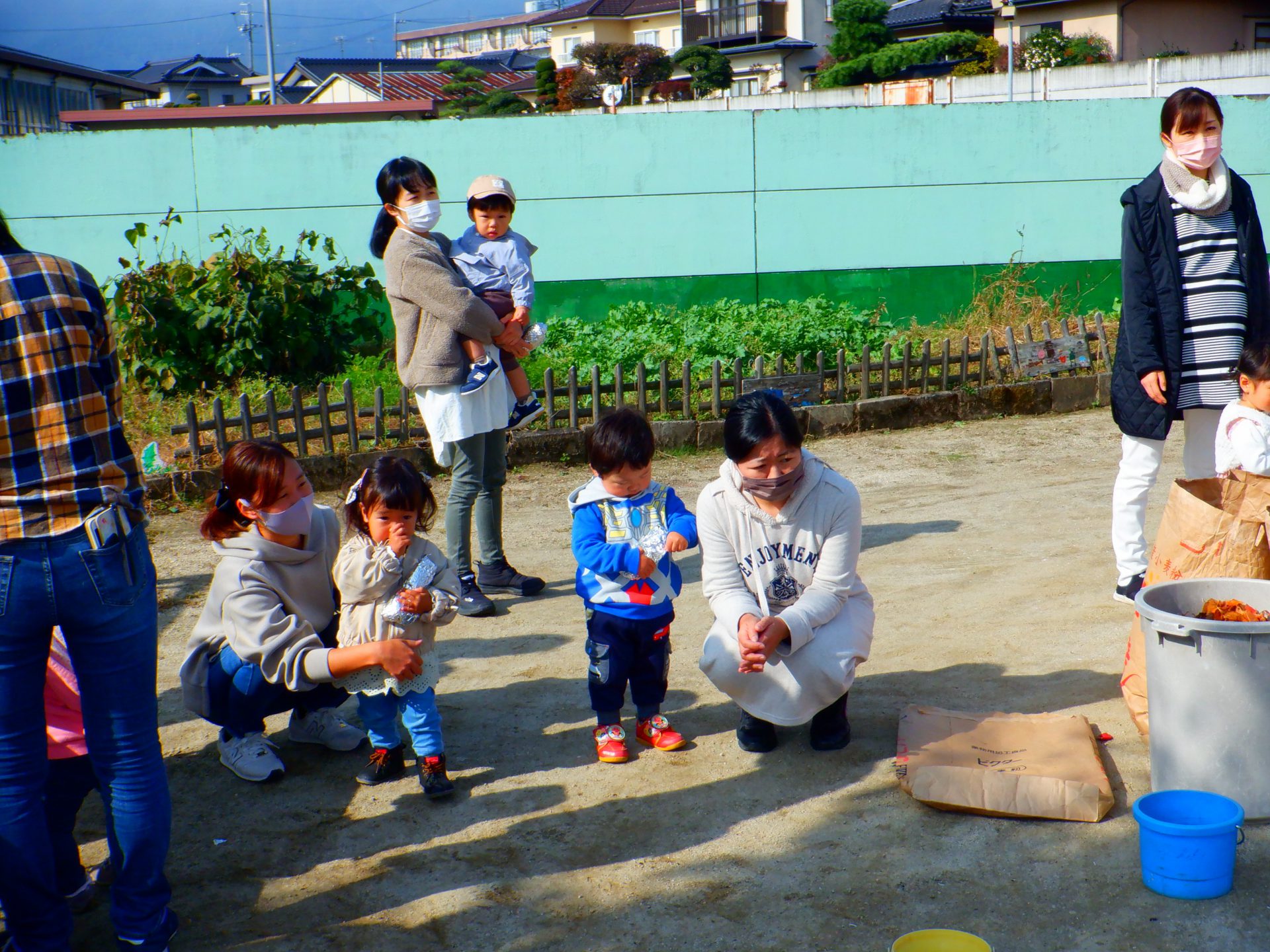 ・薪拾いから、焼き芋準備まで子どもと共に行い、子どもが自分たちで「焼き芋大会」をしたと実感できたと思う。ひよこの会の小さいお友だちにも喜んでもらえてよかった。