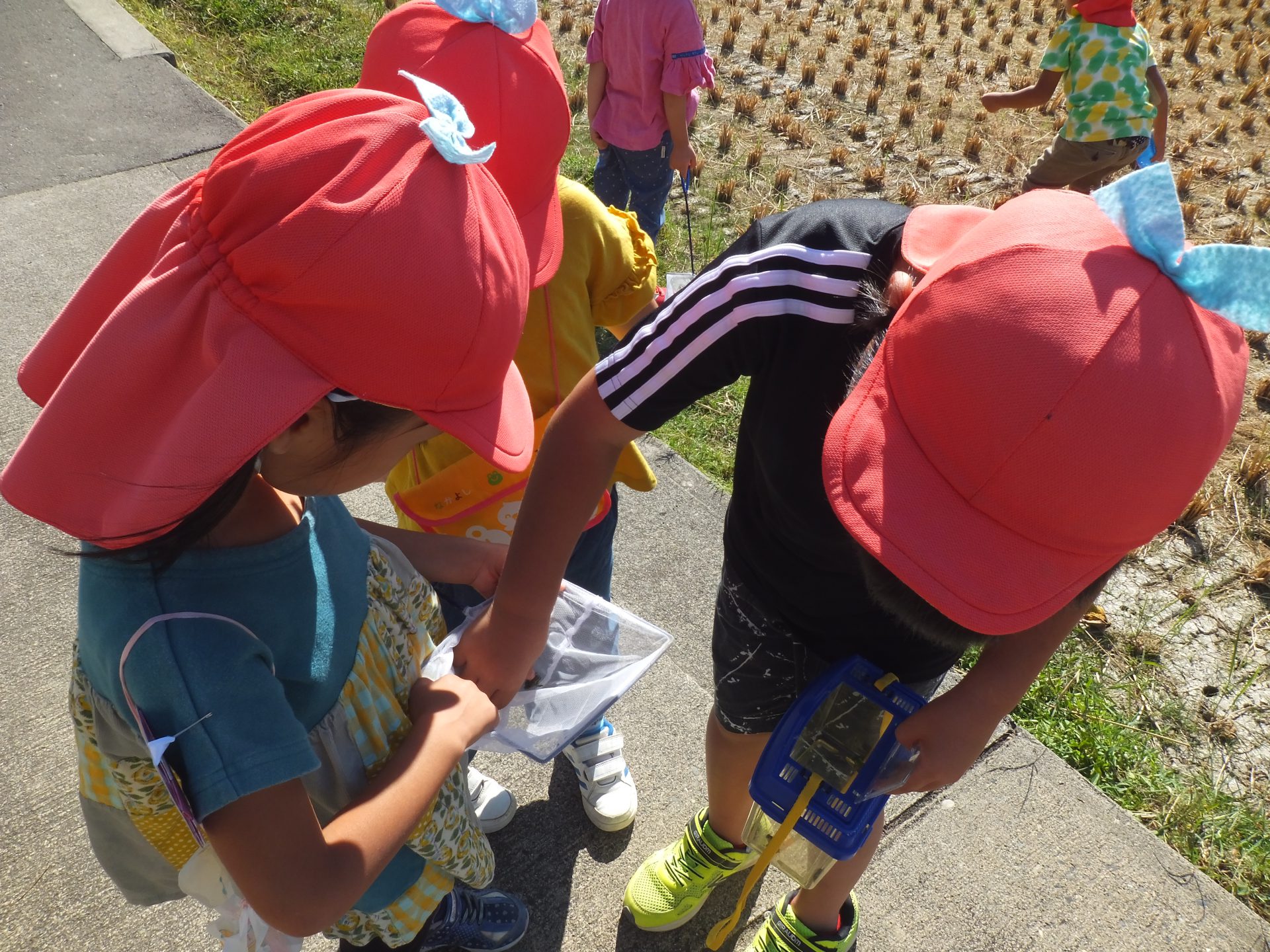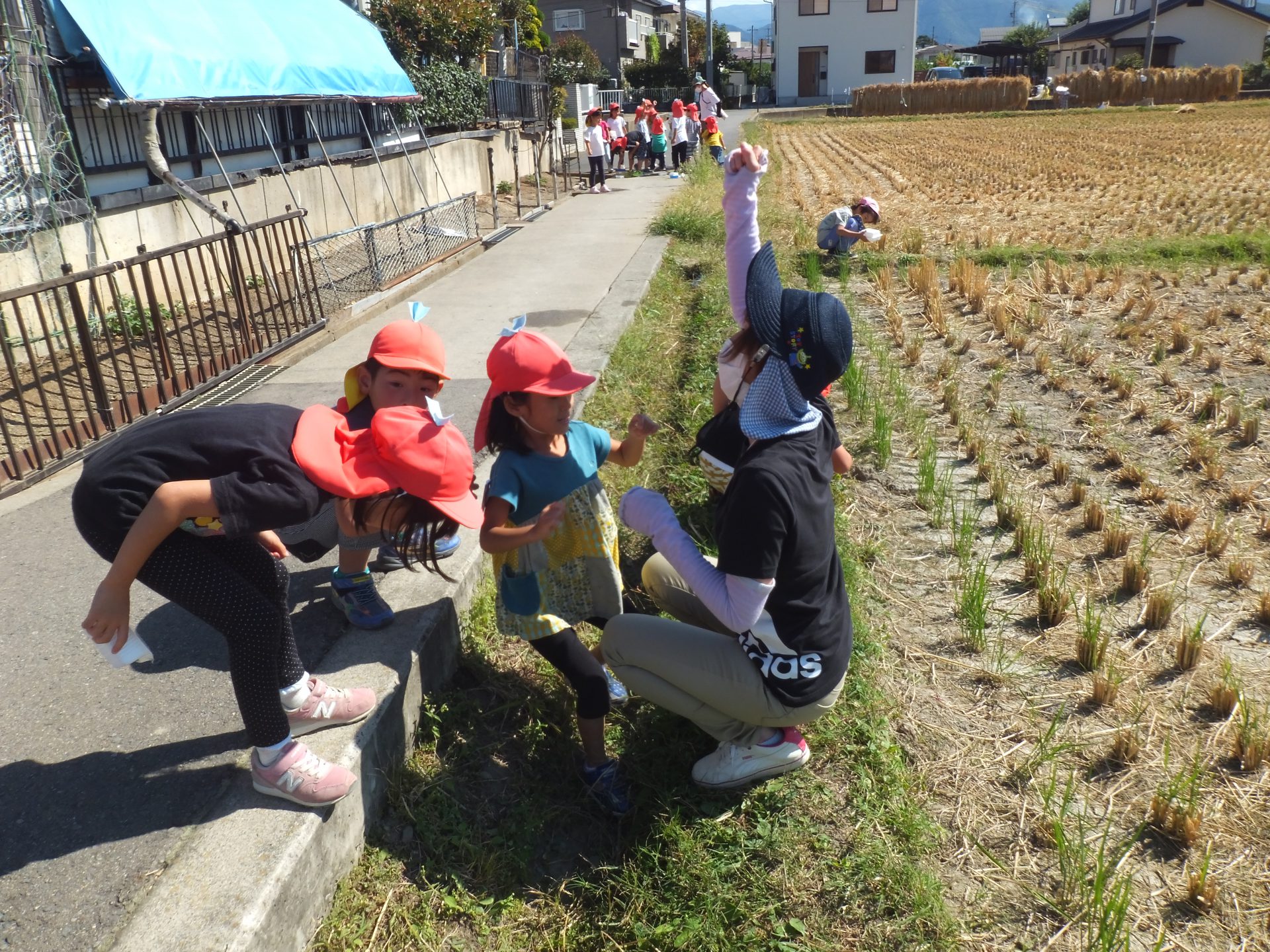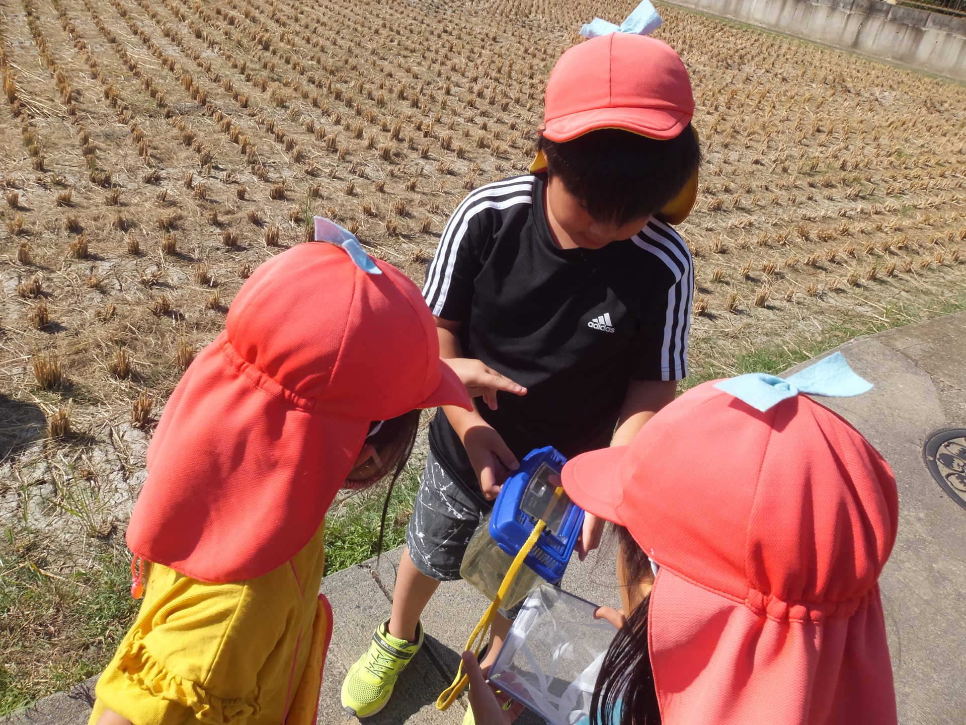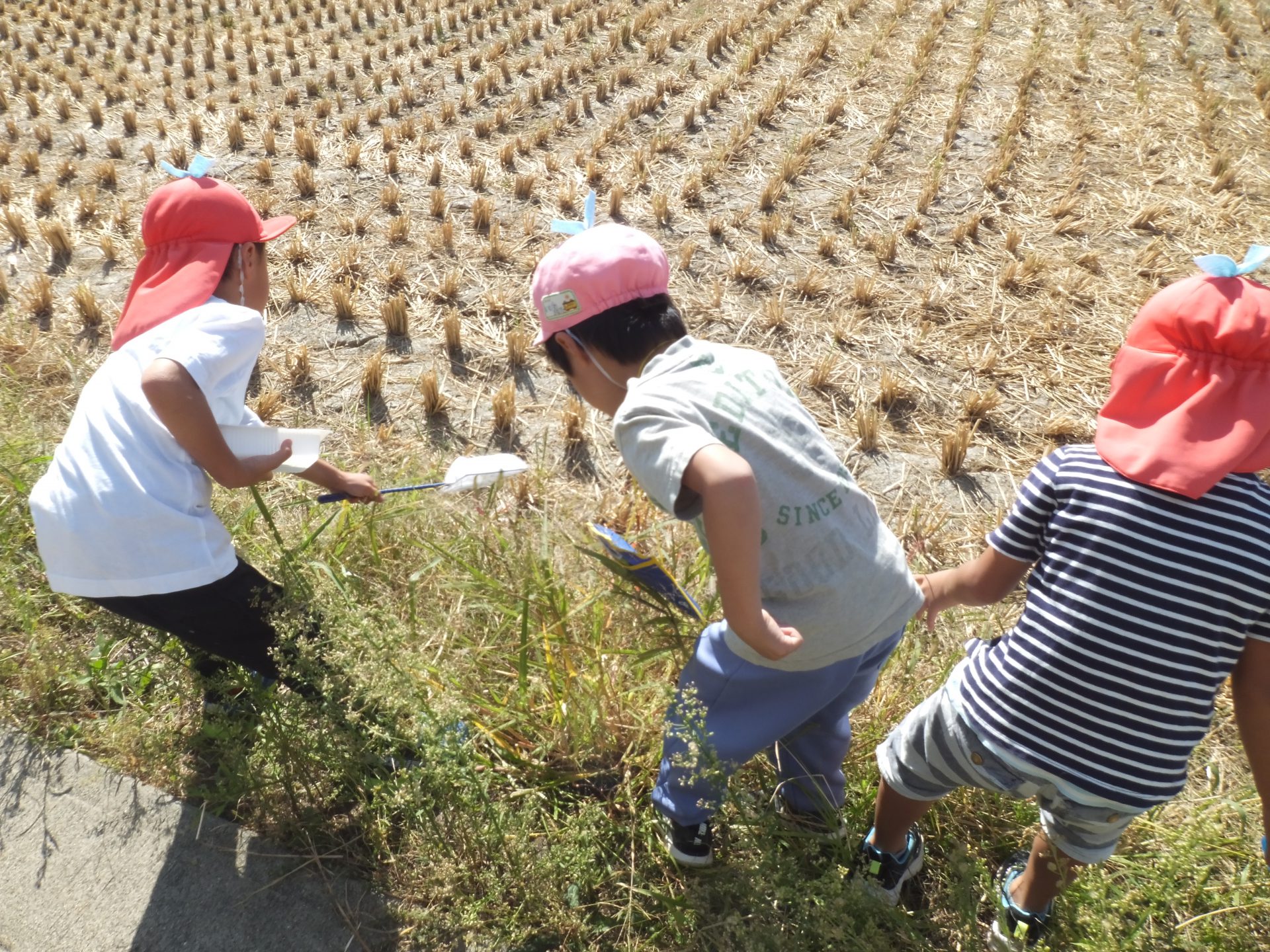 大好きな田んぼへ散歩に行きました。あぜ道を通り、生き物を探します。
