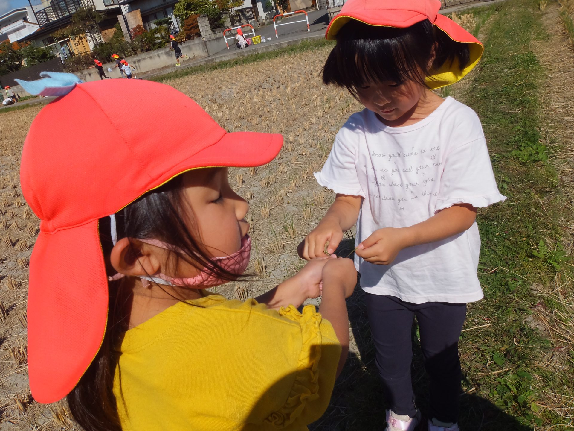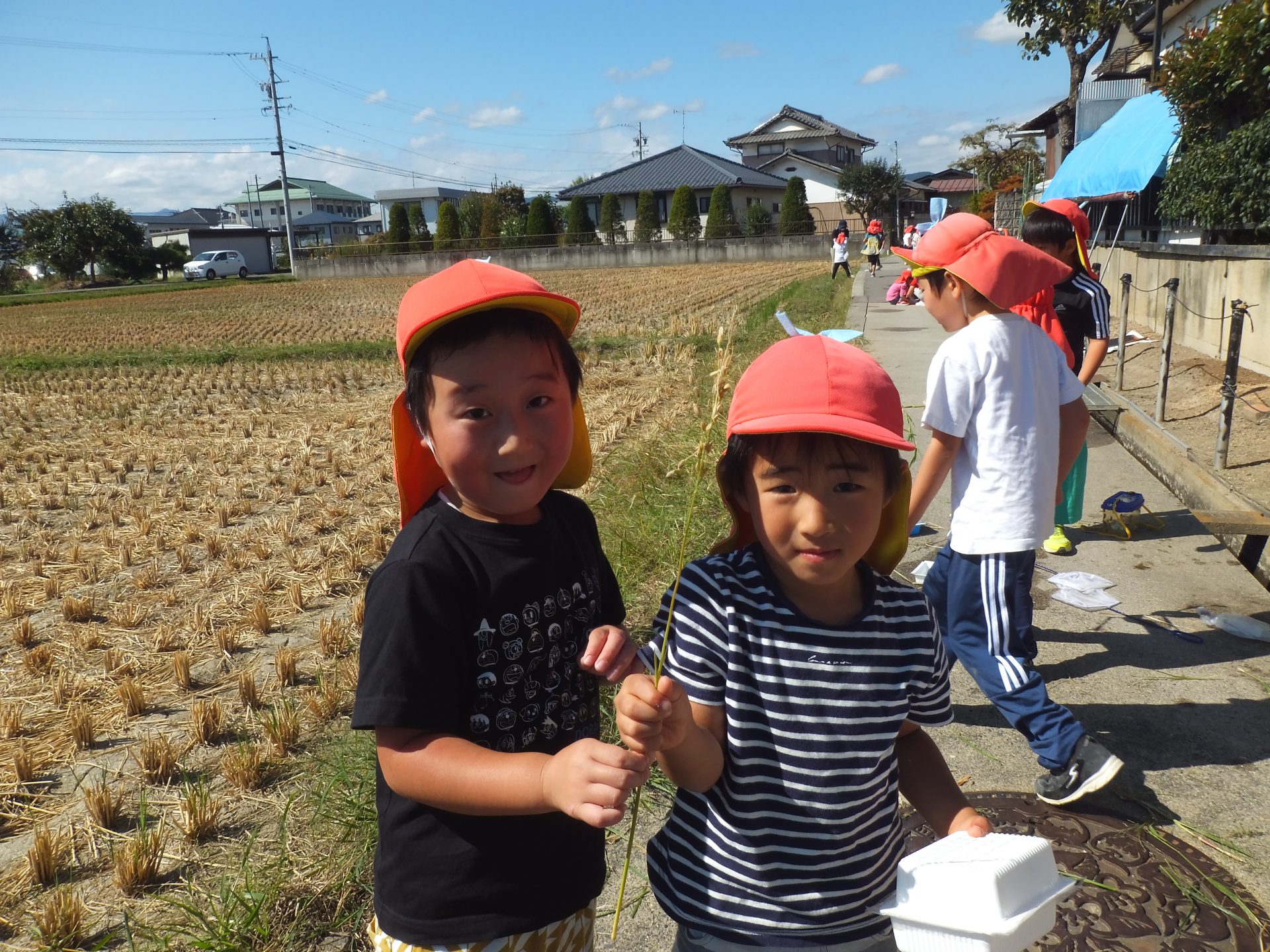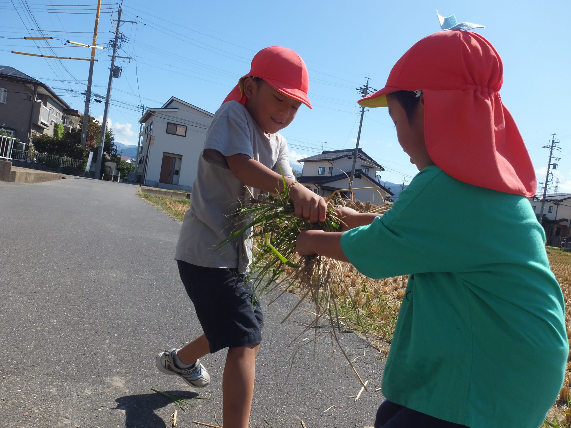 「あ!お米だ!」残っていた稲穂を発見しました。