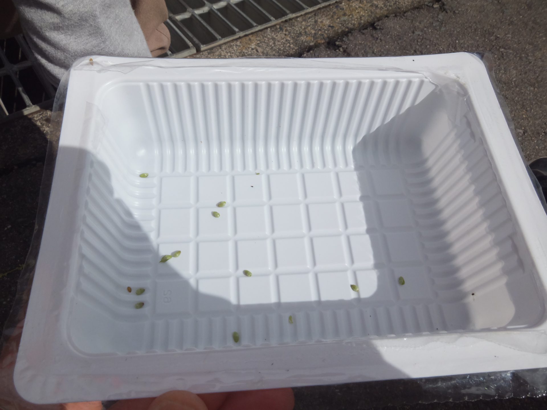 「あれ、なんか種みたいなのがあるよ。」オオバコの葉をじっくり眺めていると小さなつぶつぶがあることを発見したD君。