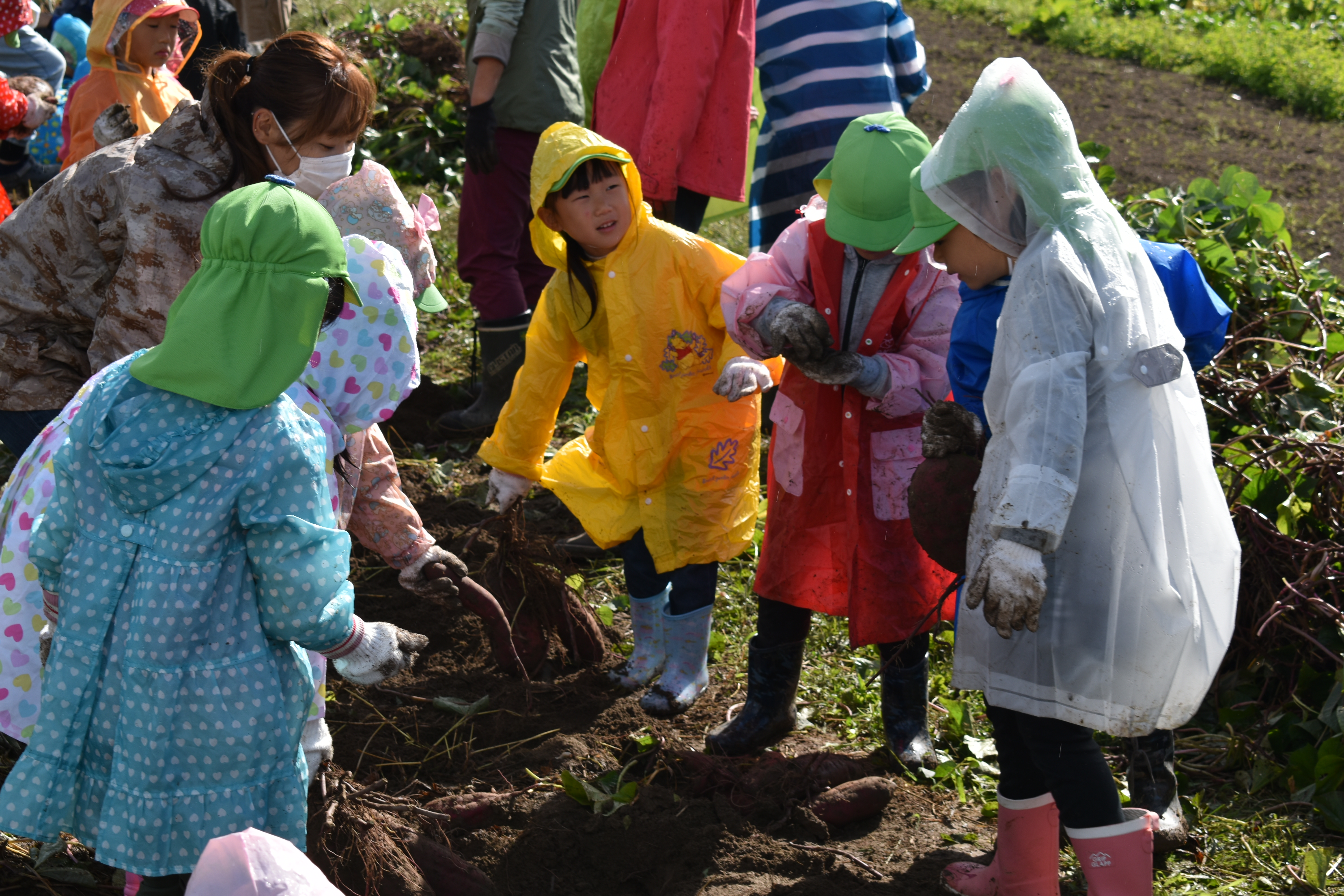もちろん、お芋掘りが一番の目的ですが、それと一緒に別の気付き(天気や寒さ・暖かさ・虫や生き物、そして周囲でお手伝いしてくれるボランティアの方々)も大切にしたいと思っています。