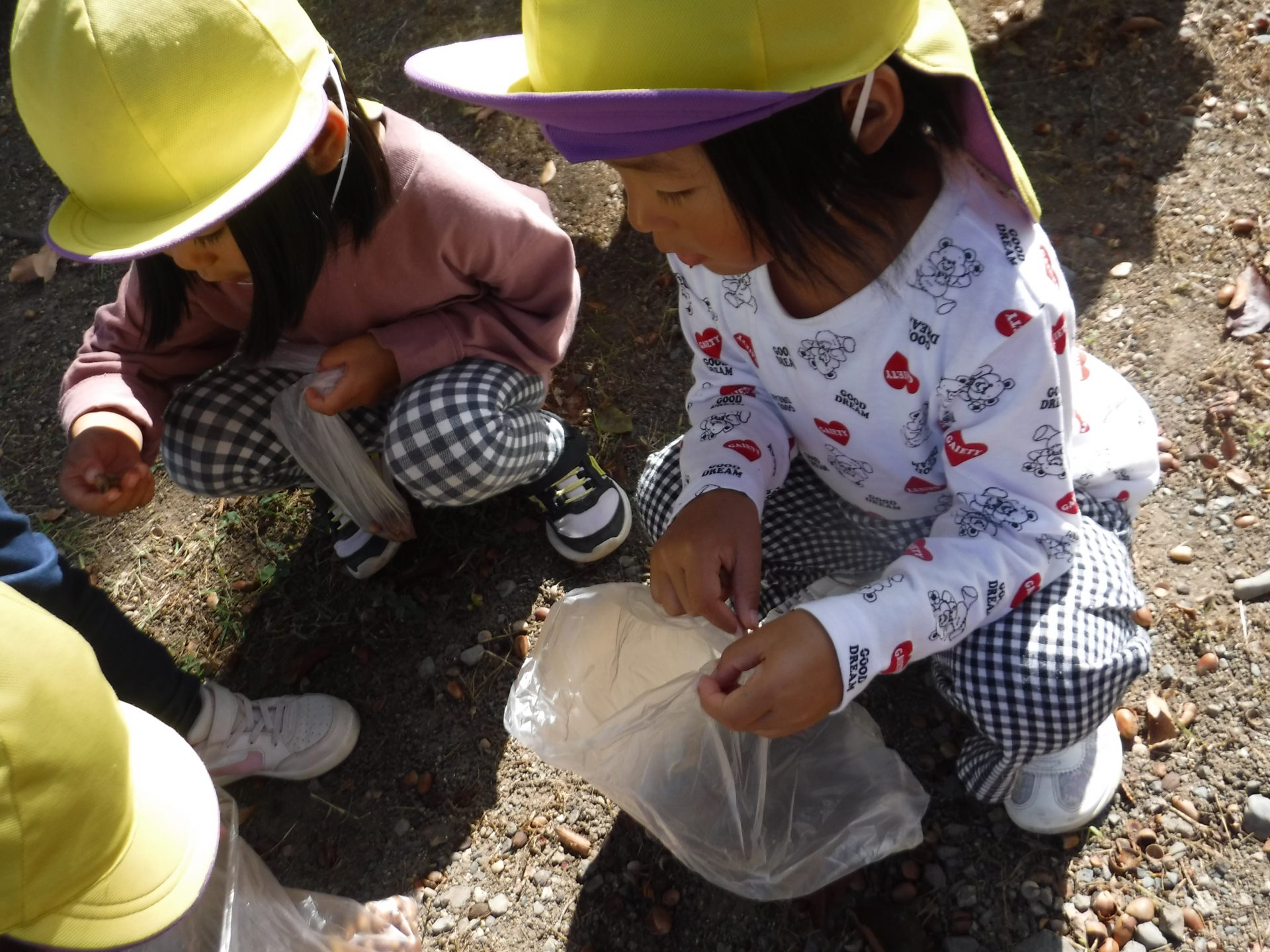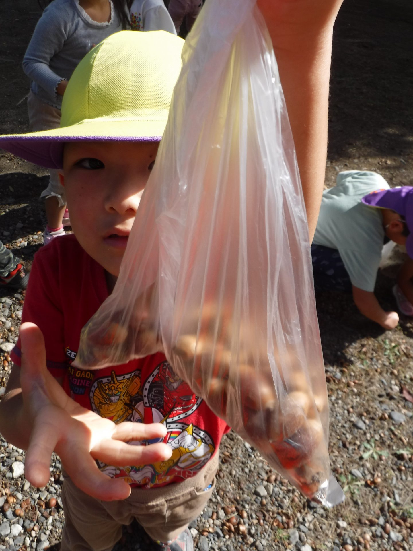 「丸いのもちっちゃいのもある!」「穴があいているどんぐりもあったよ!」