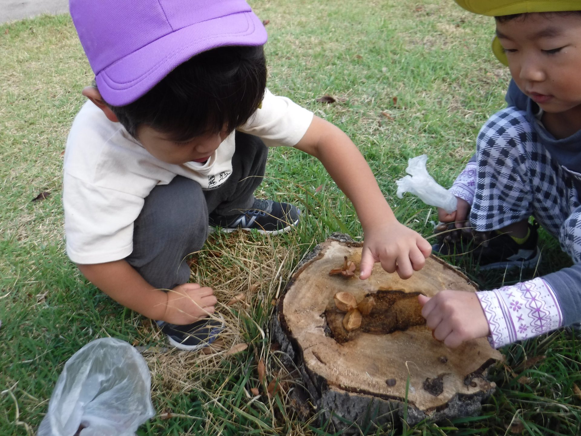 「この形、おもしろい!」友達の発見に周りの子も一緒に拾いはじめました。