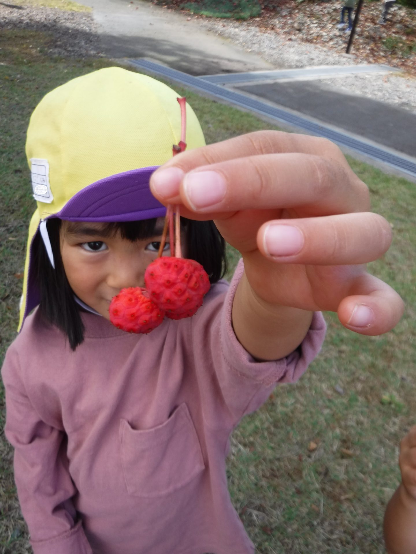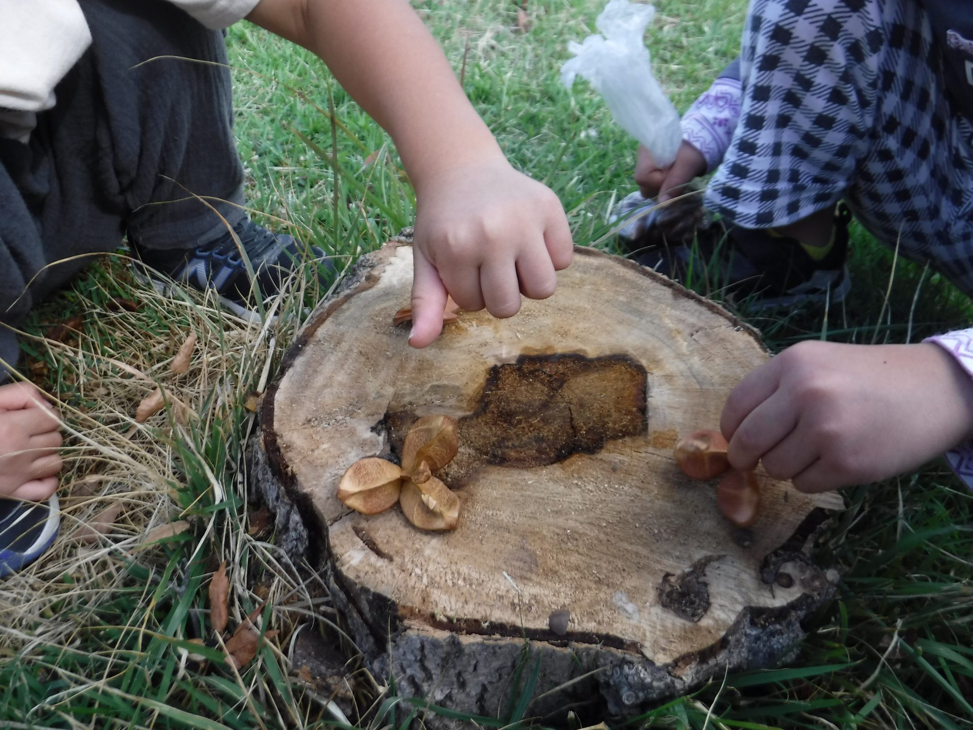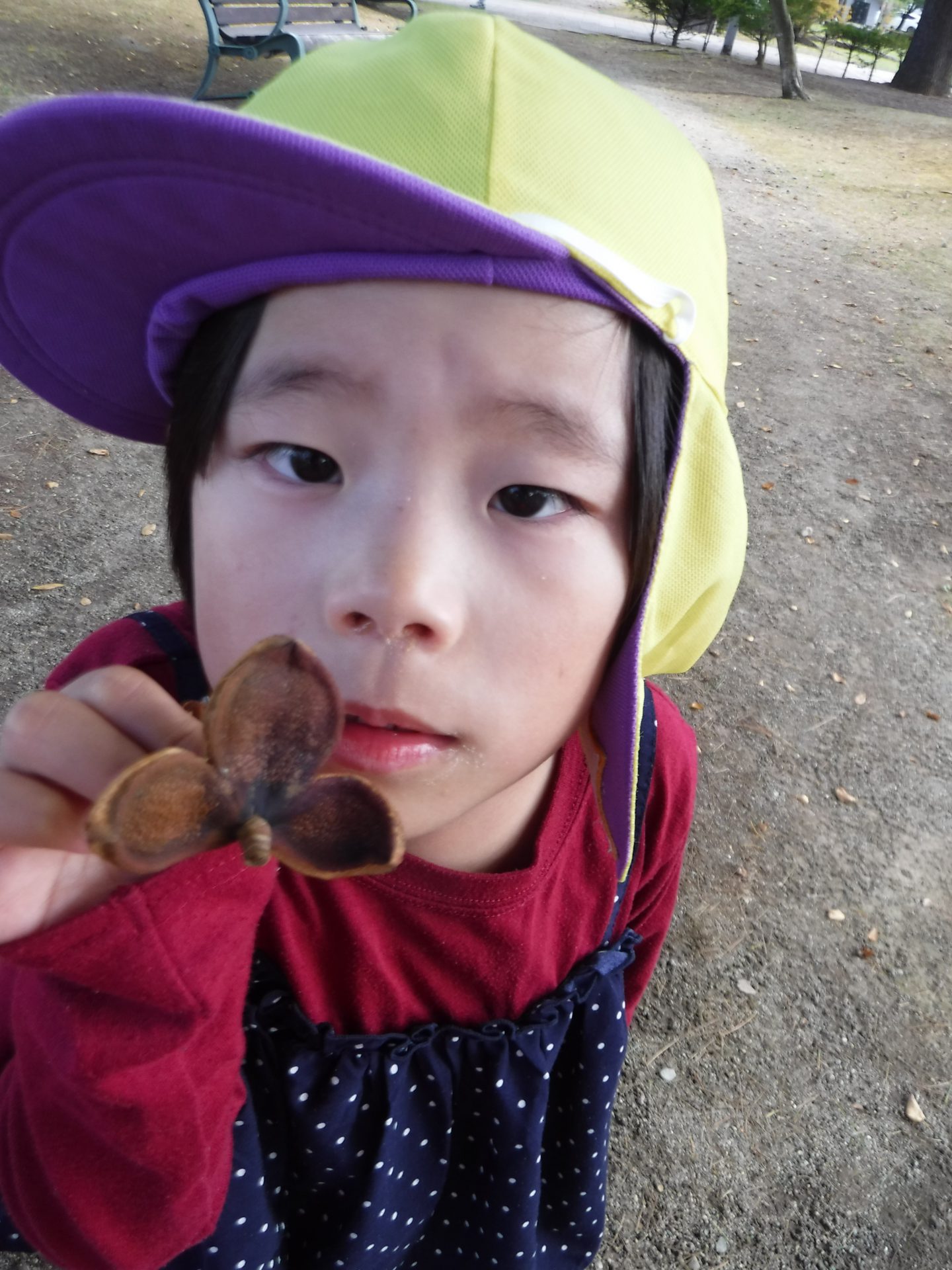 「こま」の形に似ていることを発見し試してみる子、それを聞いて一緒にこま回しに挑戦する子。「自然」は、子どもたちにたくさんの学びを与えてくれると改めて感じた場面でした。