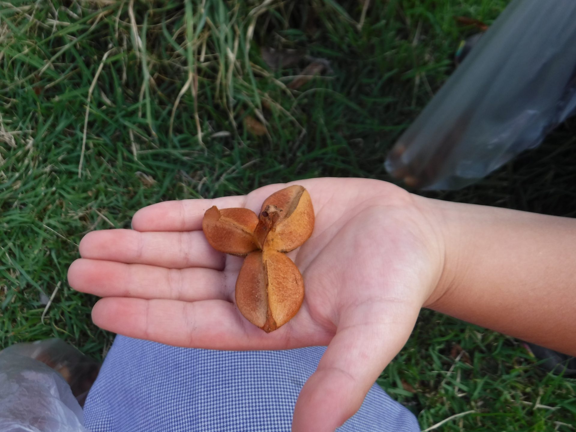 どんぐりの木の近くに違った木の実を発見すると、殻の形の面白さに気付いた子どもたち。