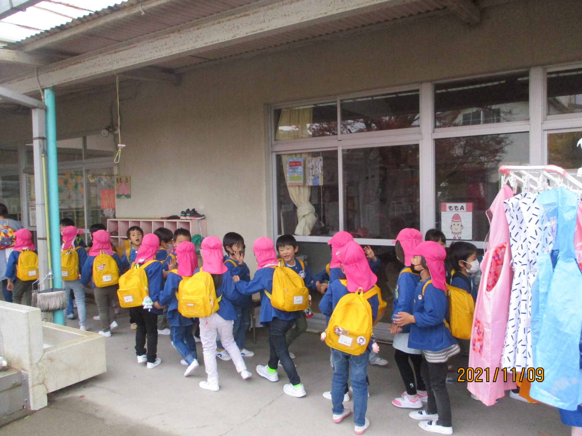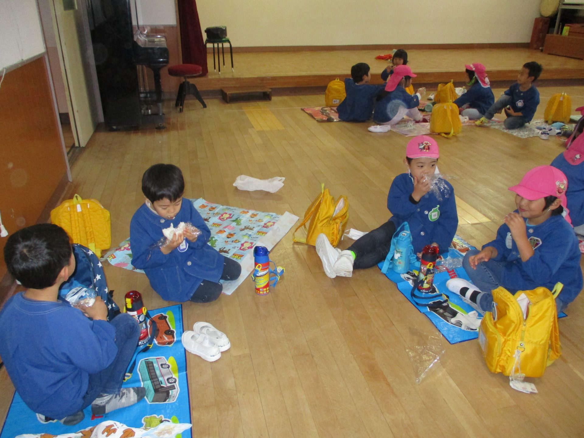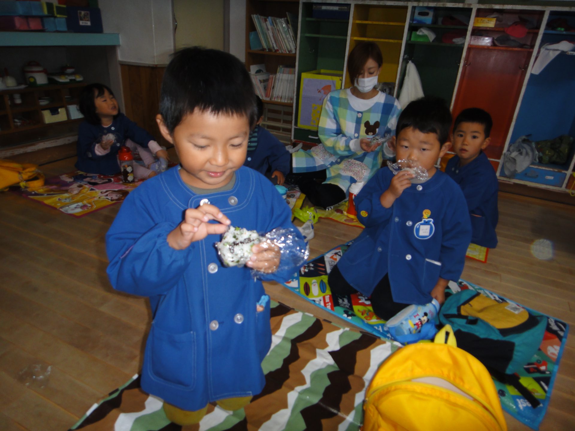 おうちの方におにぎりを2つ作っていただき、遠足ごっこに1つ、もう1つは給食の時に食べました。