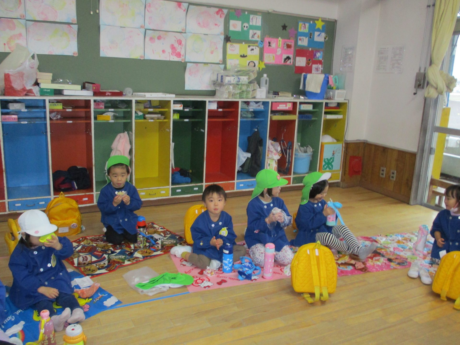 0.1.2歳クラスも、お兄さん・お姉さんのクラスに行っておやつを食べ、遠足気分を味わいました。