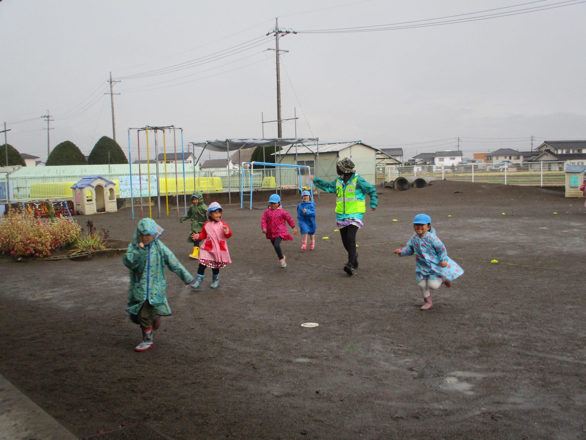 「いってきま~す。このくらいの雨なら大丈夫だね」