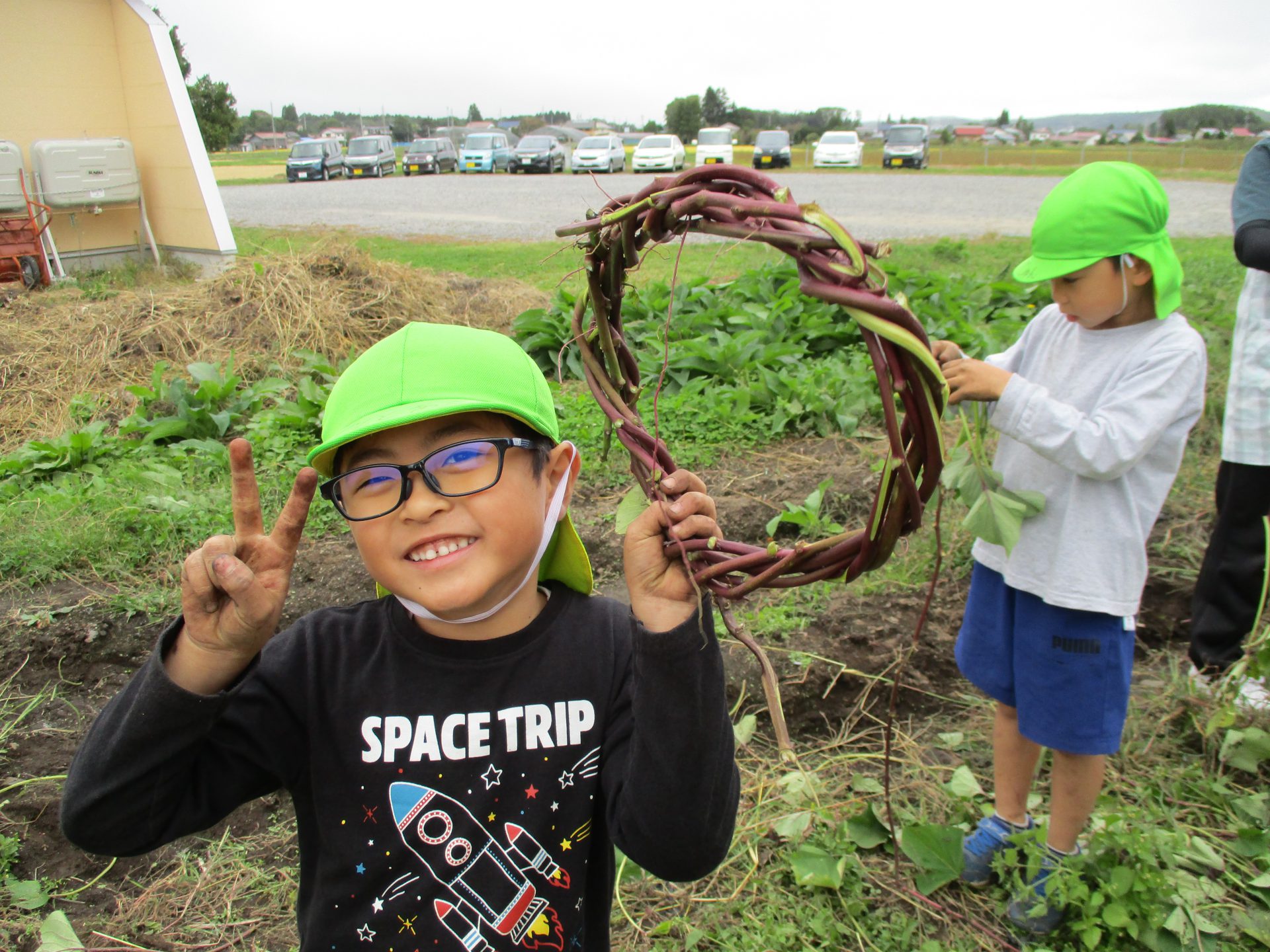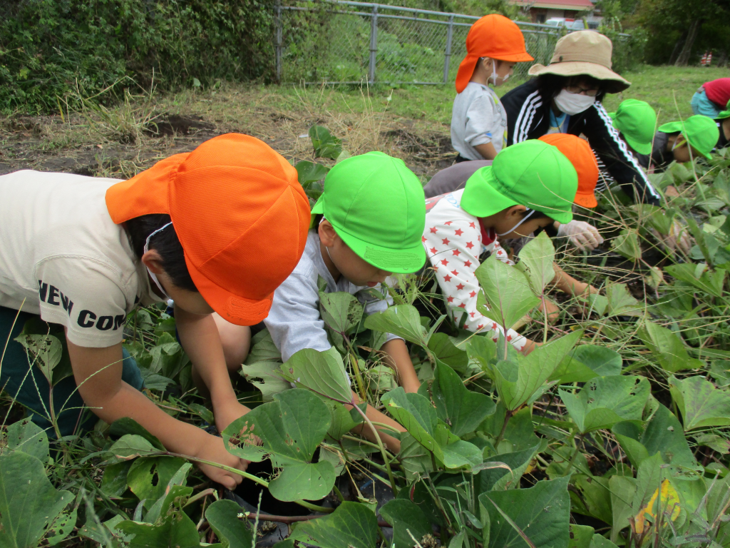 ・さつまいも掘りでは土が固く、掘り進められないと「しゃべるもってくる」とシャベルを持ってきた子どもがいました。「ぼくこっちほるから、そっちからほって」と子ども同士工夫しながら掘り進めていました。