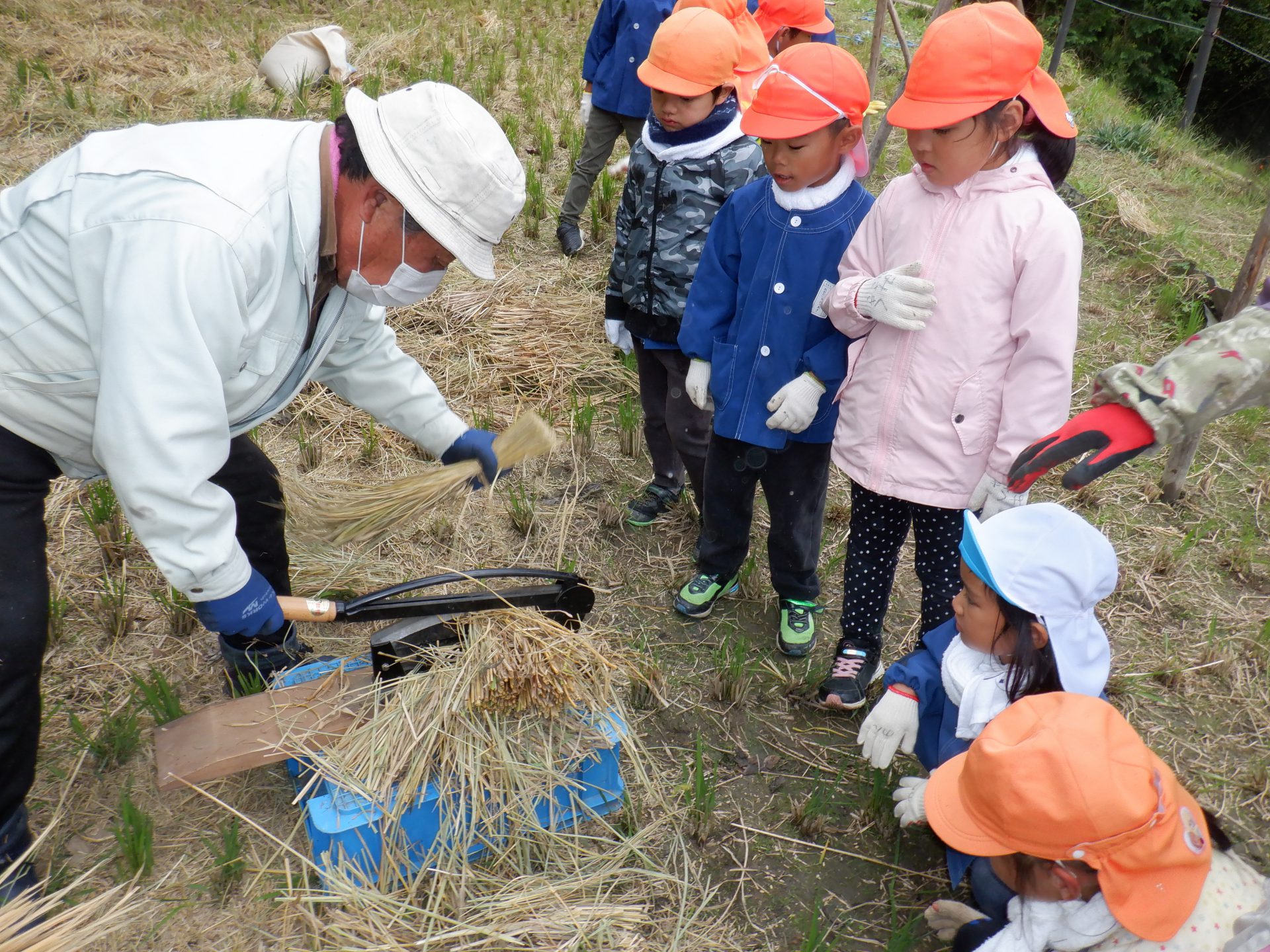 ・籾蒔きから関わってきたお米作り、いくつもの作業を経験してきたことで、子ども達は田んぼやお米についての関心は高く、あぐりの田んぼに行くことを楽しみにしている。あぐりの田んぼ学校の地域の方々にも作業に行くごとに親しみを持ち、関わることができ会話も多く聞かれるようになった。都合の付くときには保護者の方にも参加してもらっているお米作りなので、家庭でも話題になっている。