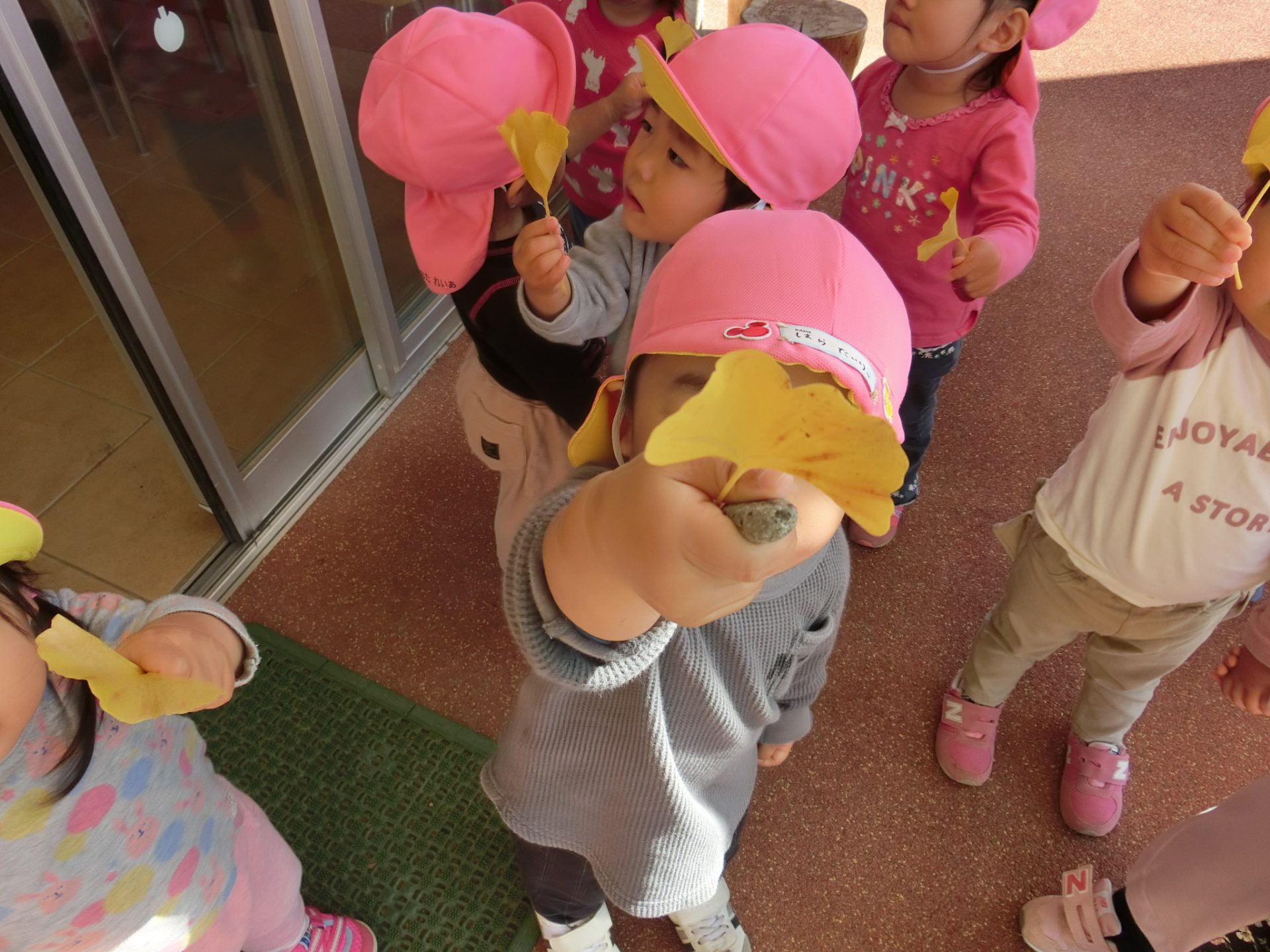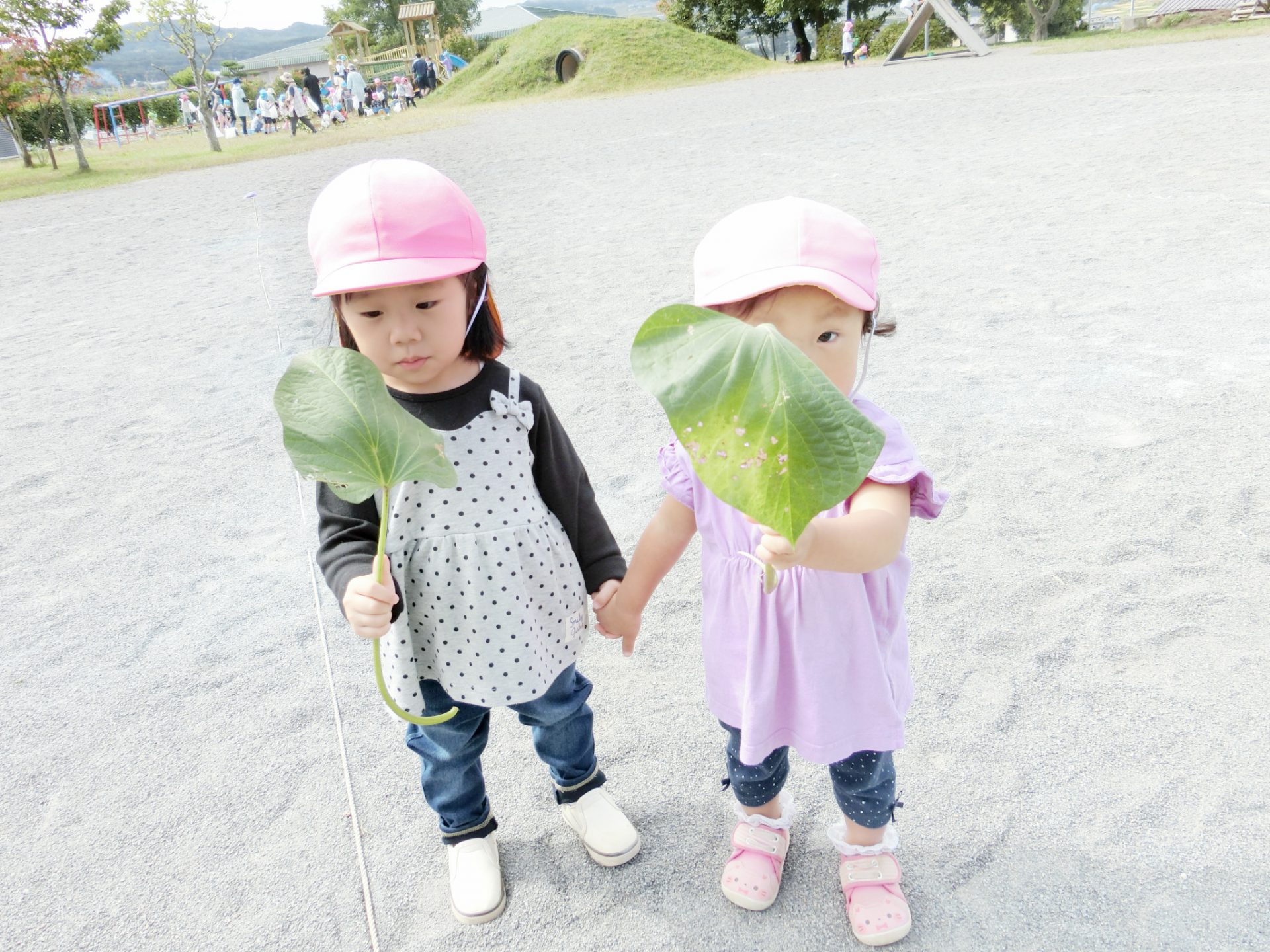 確かにトトロが使っていた傘みたいに大きい葉っぱでした。葉っぱを持って2人でお散歩をして楽しみました。