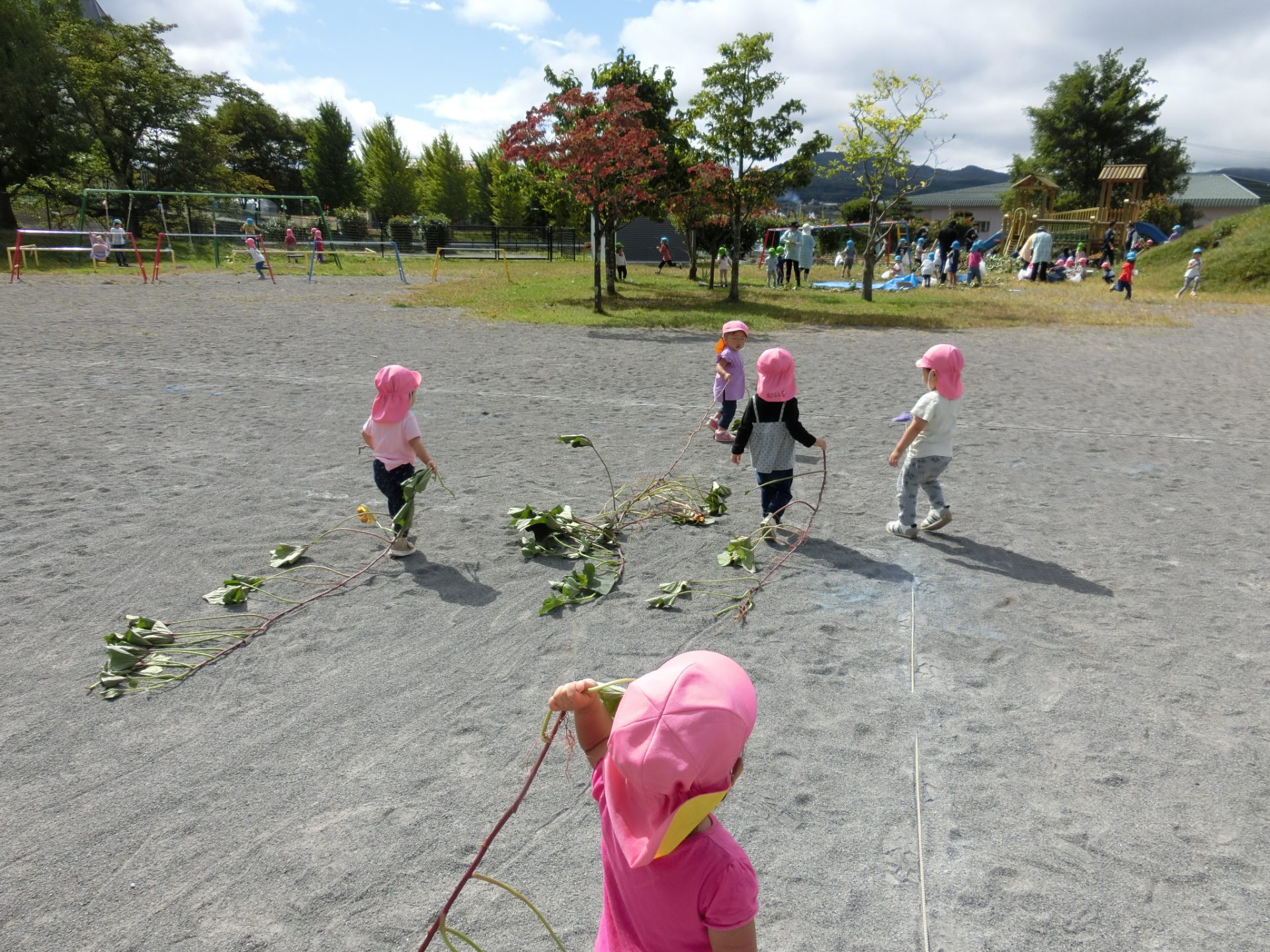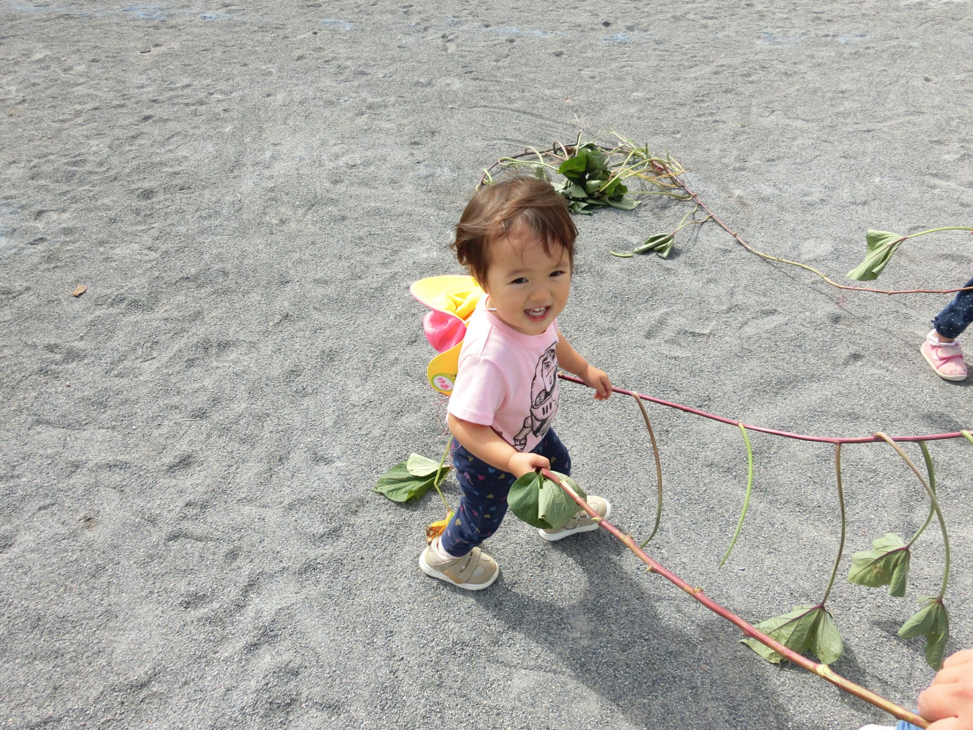 さつまいものつるを持って走ってみたり…。追いかけたり…。