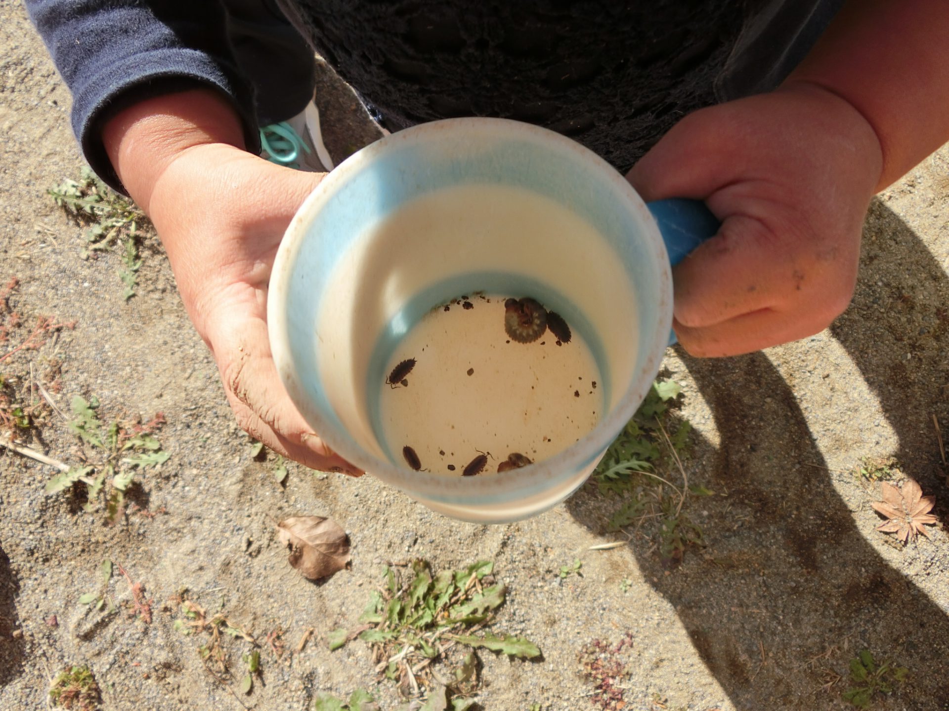 まだ、急に動くとびっくり!!なんてことはありますが、じーっと観察したり、スコップですくってみたり、触ったり、友達に見せてあげたりと少しずつ怖さが減ってきたようです。