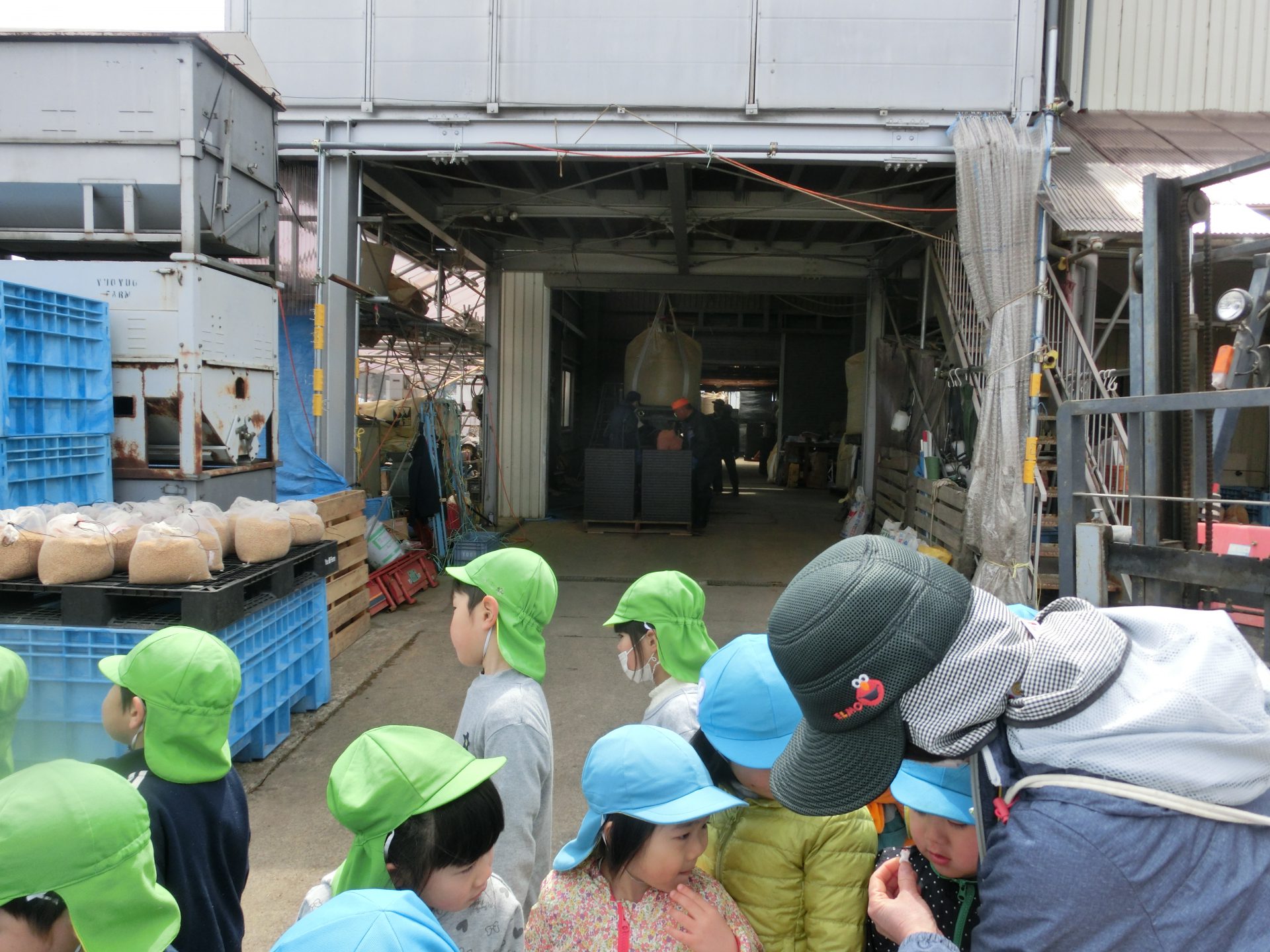 出てきたところは農作業の作業場。たくさんの方が働いていらっしゃいました。