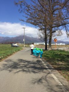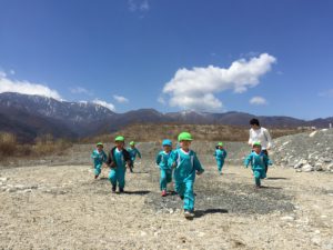 ・新しいクラスになってまだ間もないですが、お散歩を通してお友達と発見したことを共感し合ったり、協力して園まで帰ってきたりする中で、仲間意識を早く持ち、お友達を思い合ったり助け合ったり出来るクラスになっていってほしいと思います。
