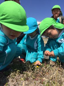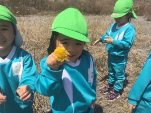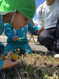 タンポポやつくしの発見を通して、春を見つけた嬉しさや、お友達と感動を共有しながら会話を楽しんでいました。