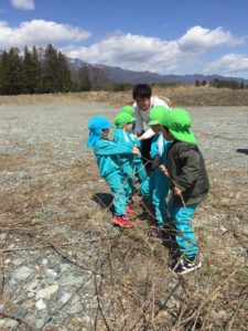 春の心地よい風を体で感じたり、春ならではの植物に触れました。