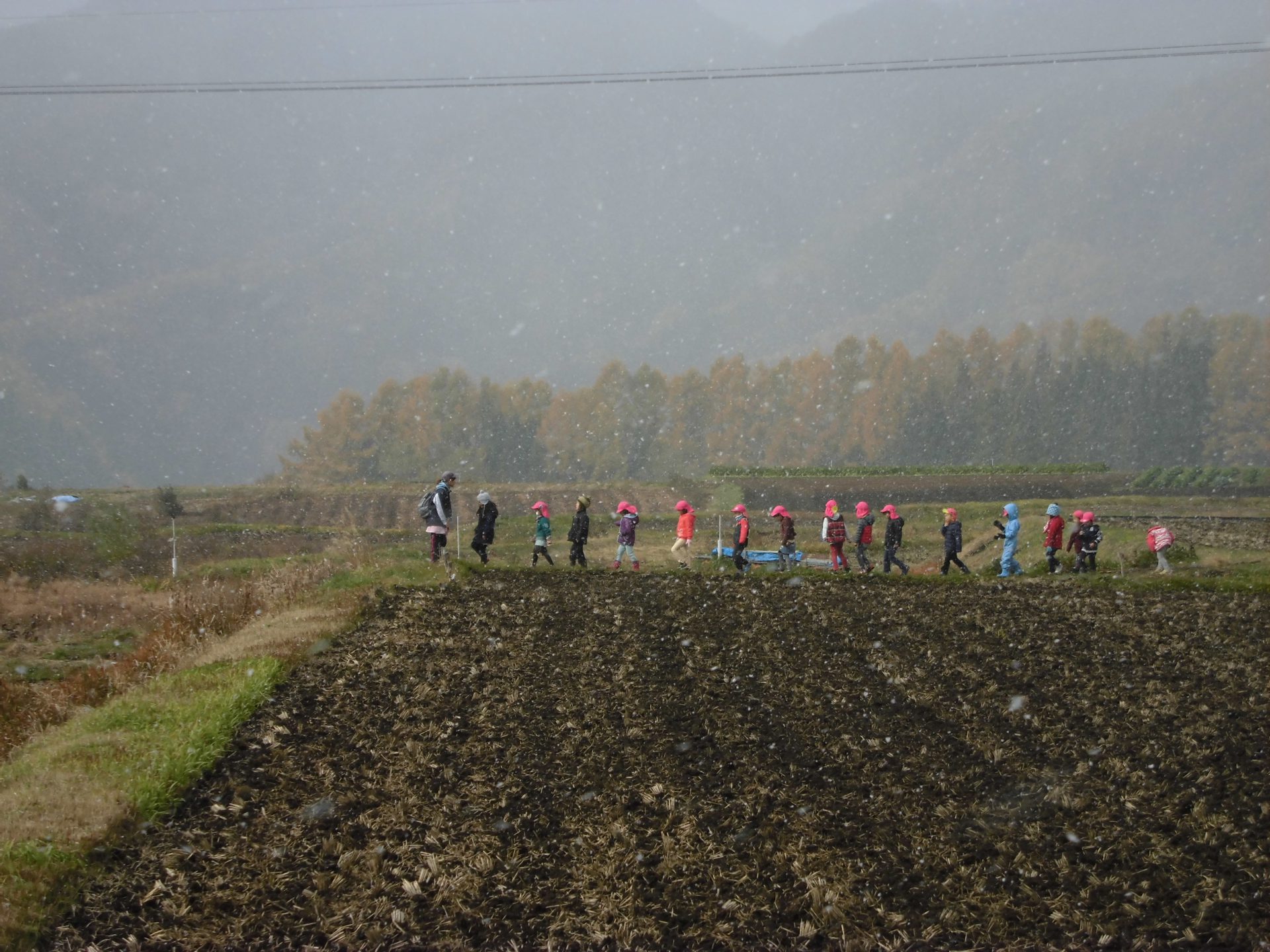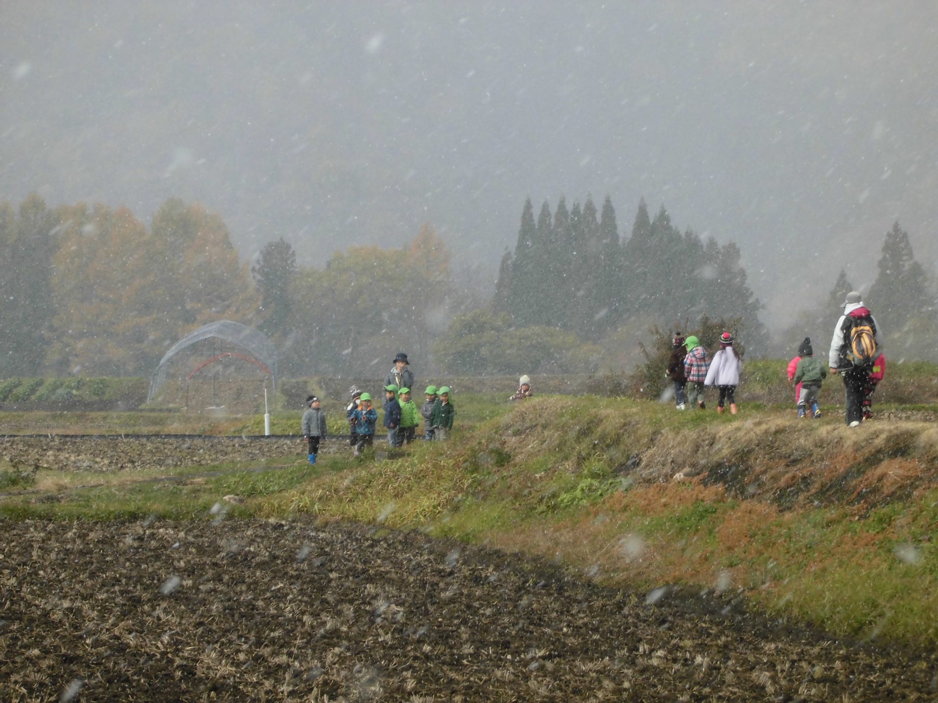 11月、戸隠に雪がやってきます。初めて頬をなでる雪を感じる散歩です。