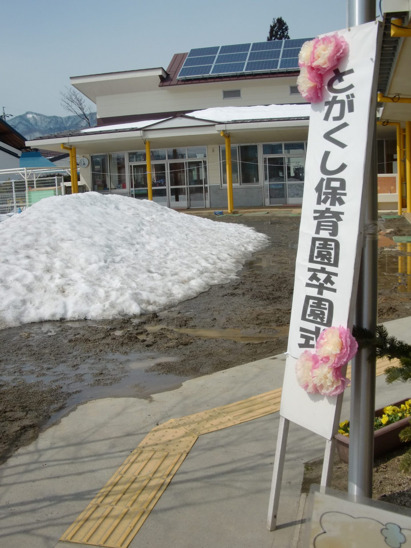 ついに園庭の雪山も小さくなって、卒園式を迎えました。
