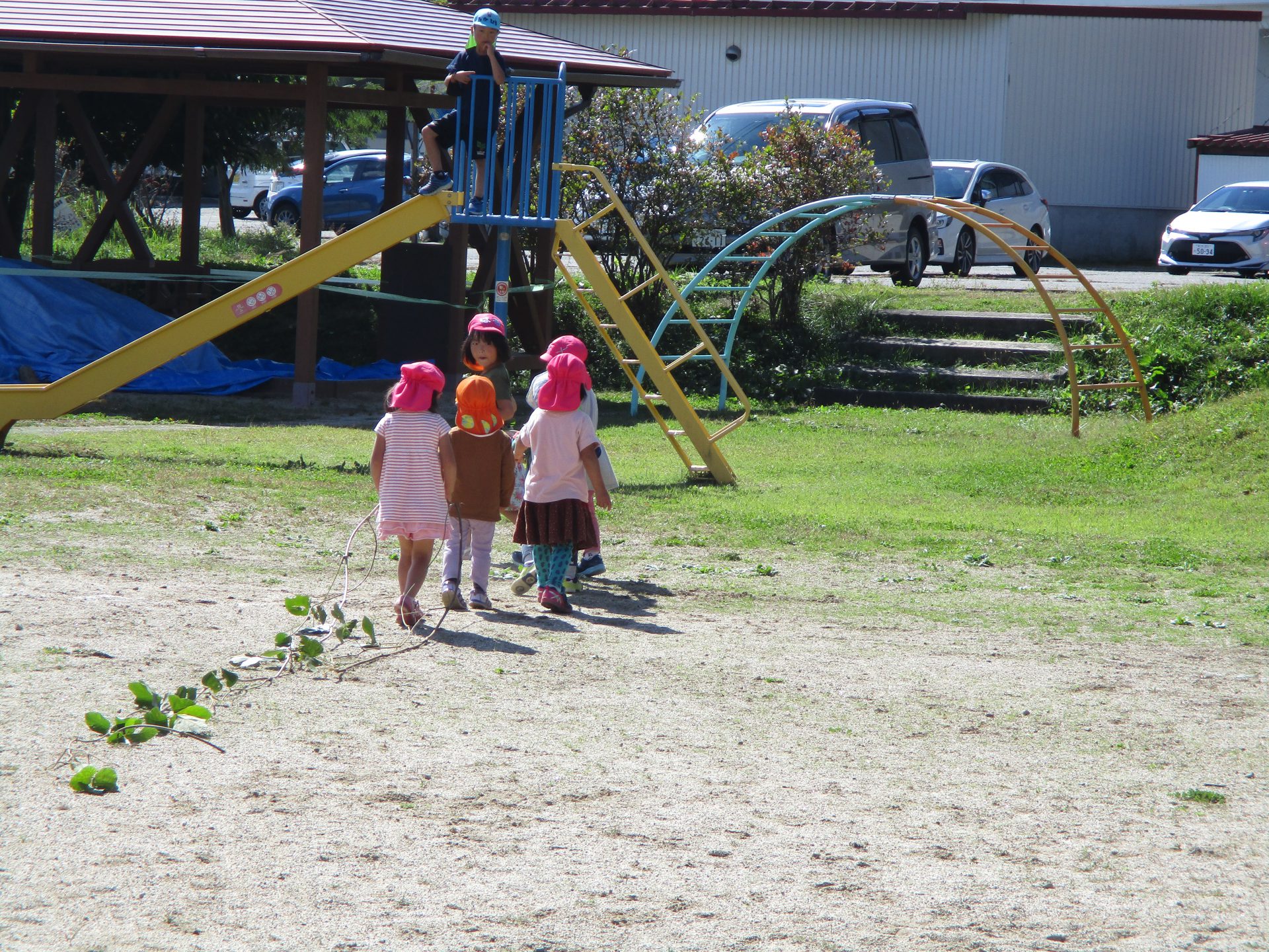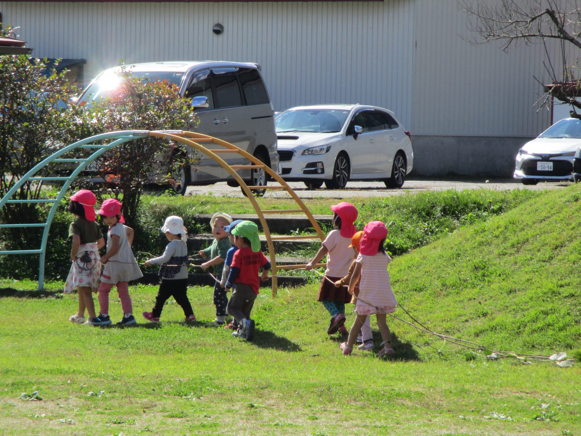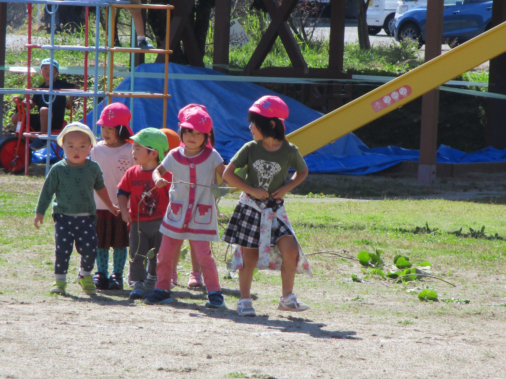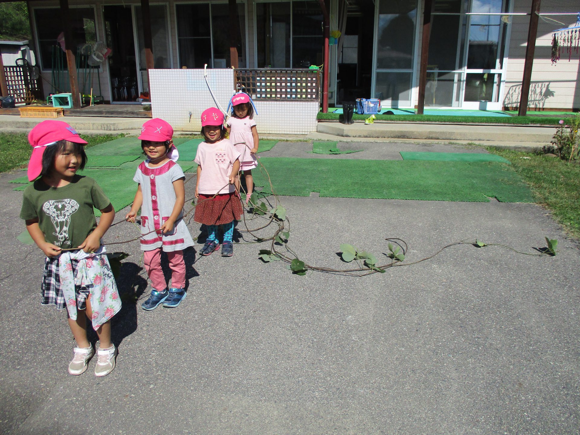 園庭で長いツルをみつけたよ!