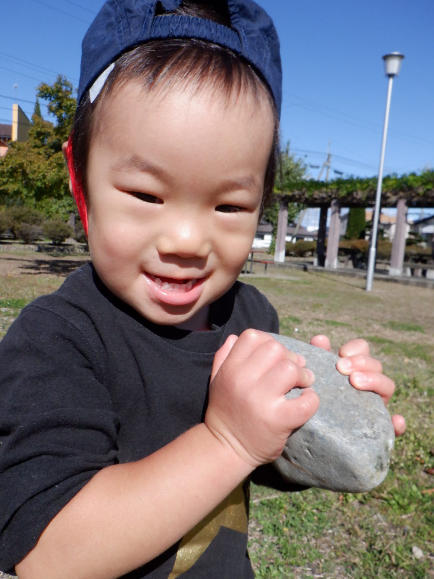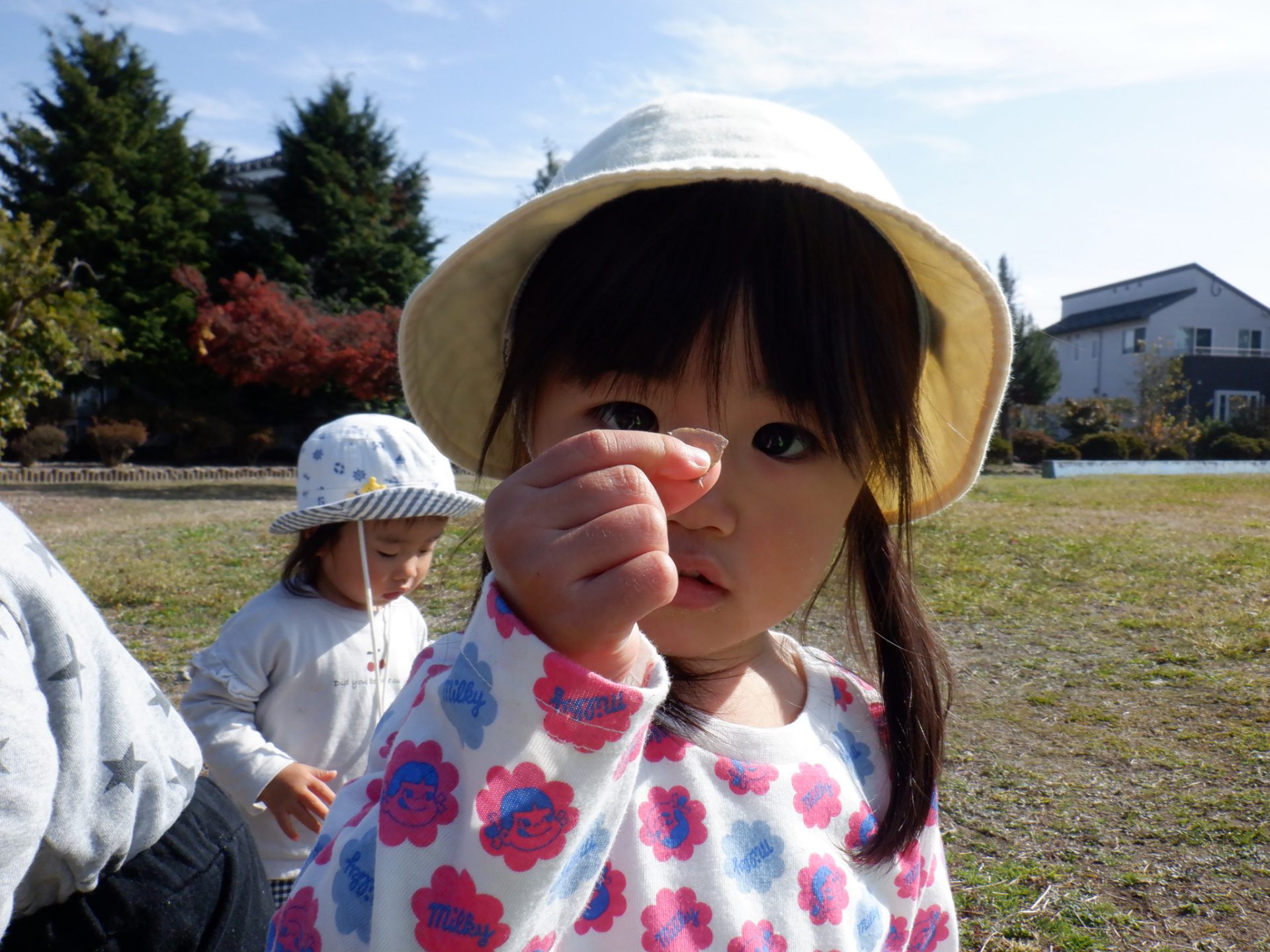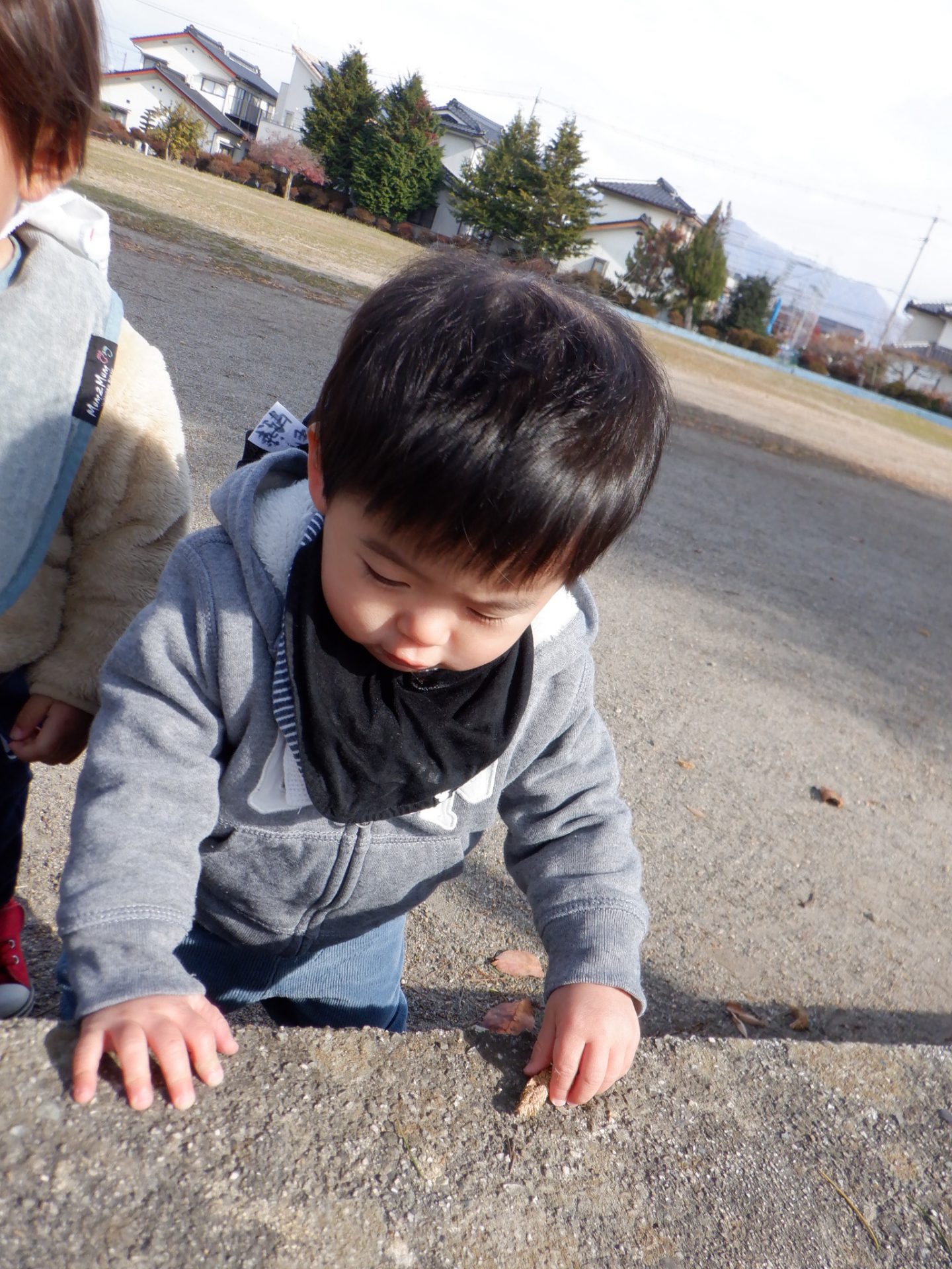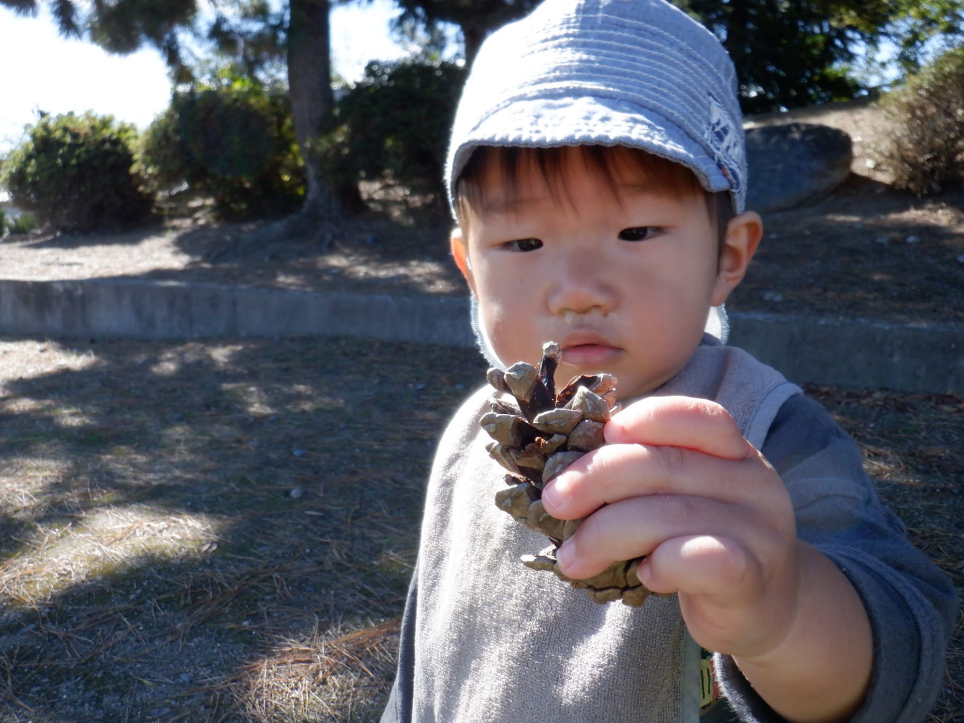 「さっそくおっきい松ぼっくり見つけたよー!」