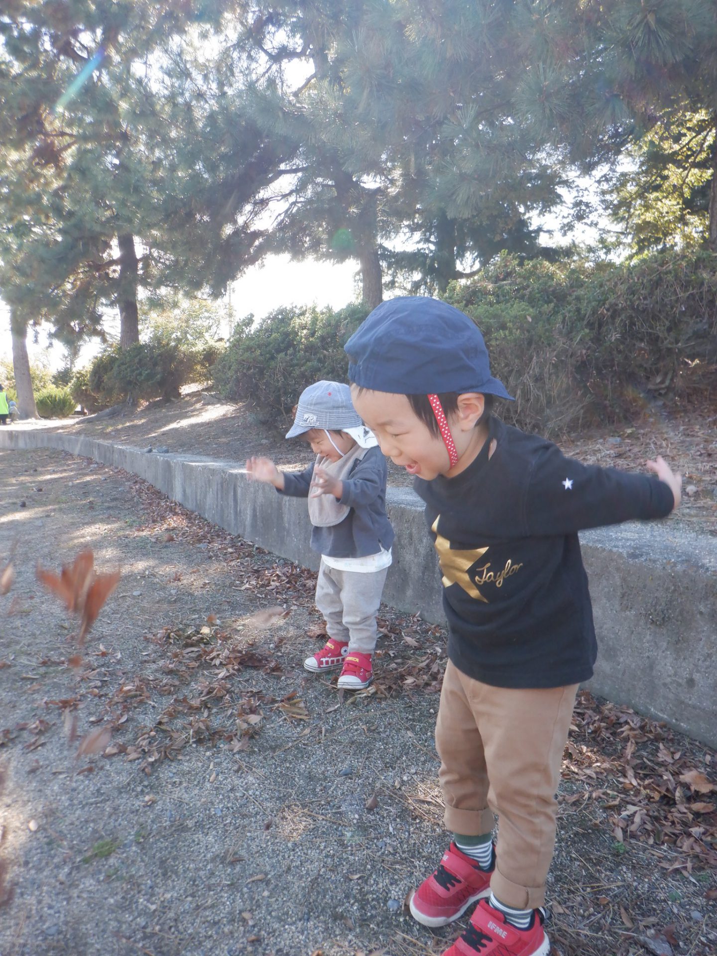 「わあ!葉っぱの雨みたい!せーのっ、それっ!!」