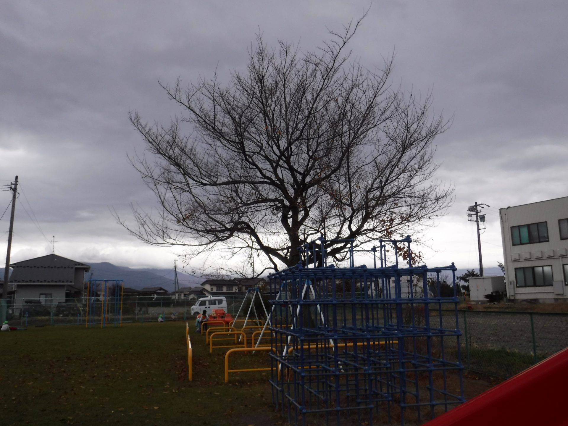 葉が落ちた園のシンボルツリーの桜の木を見上げた子どもがつぶやきます。