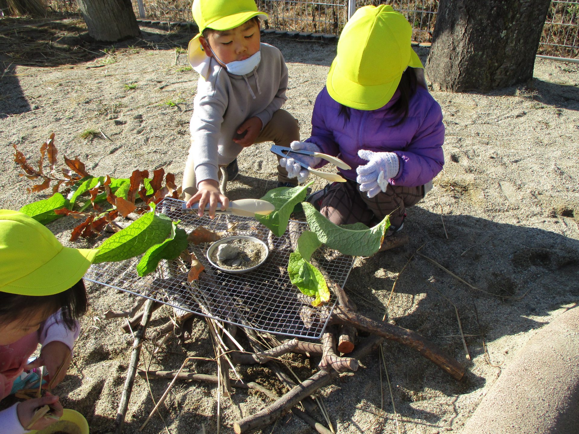 「こうすると火がつくんだってー」「本当につくかな・・・」