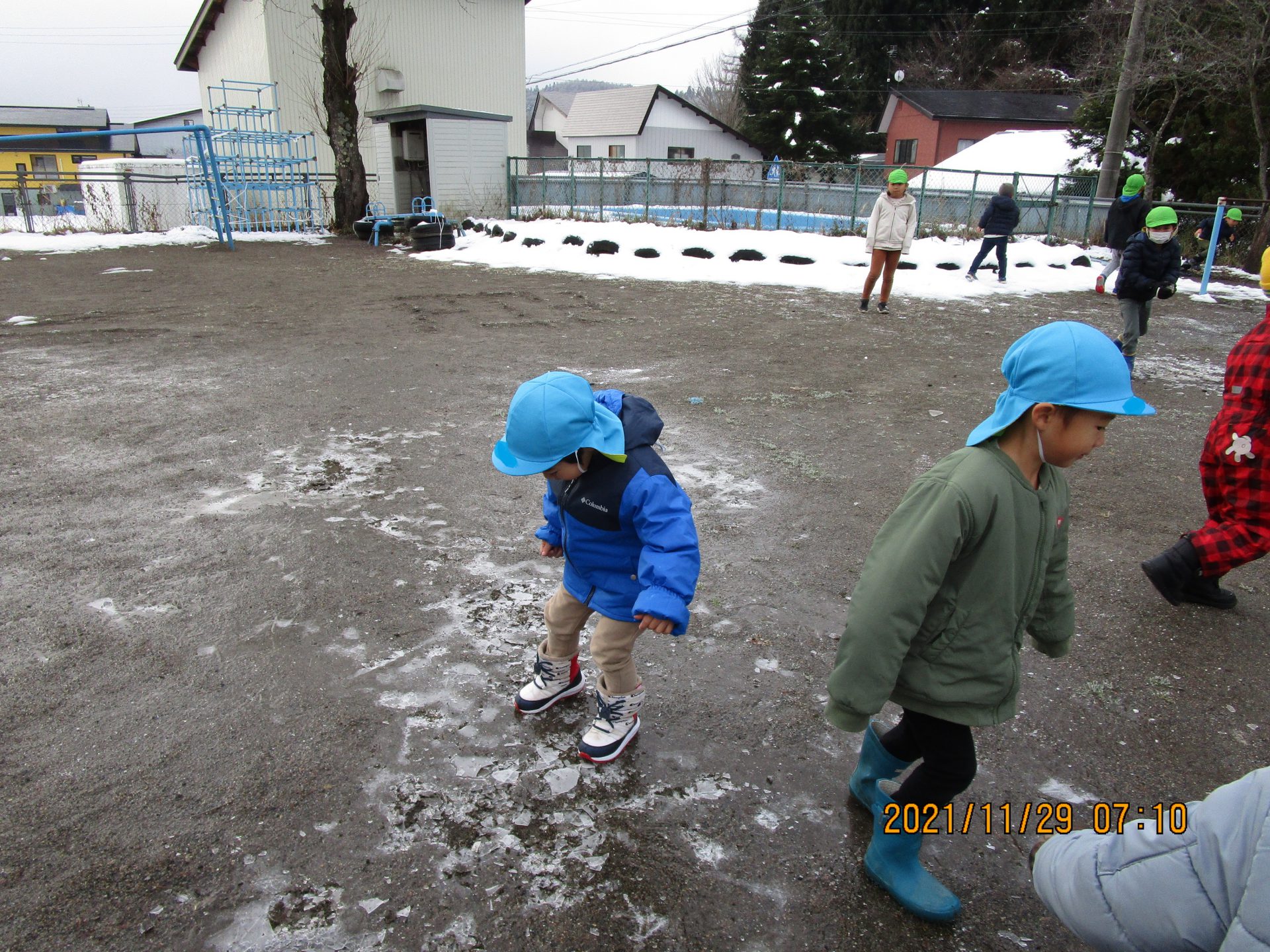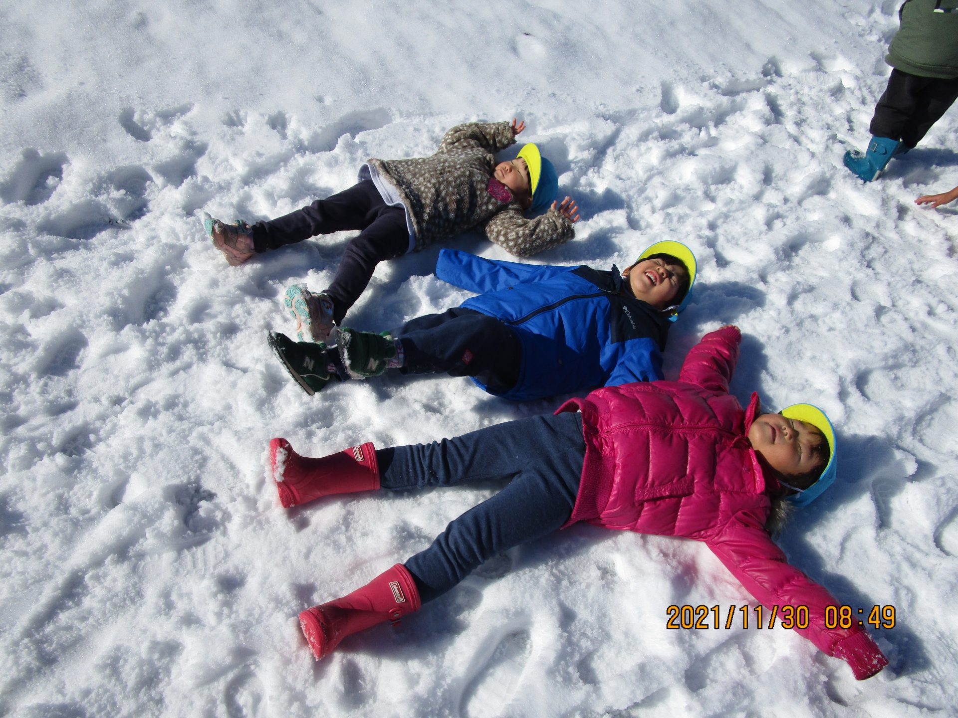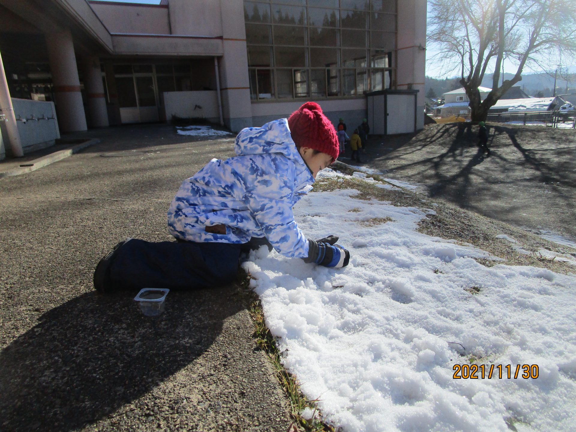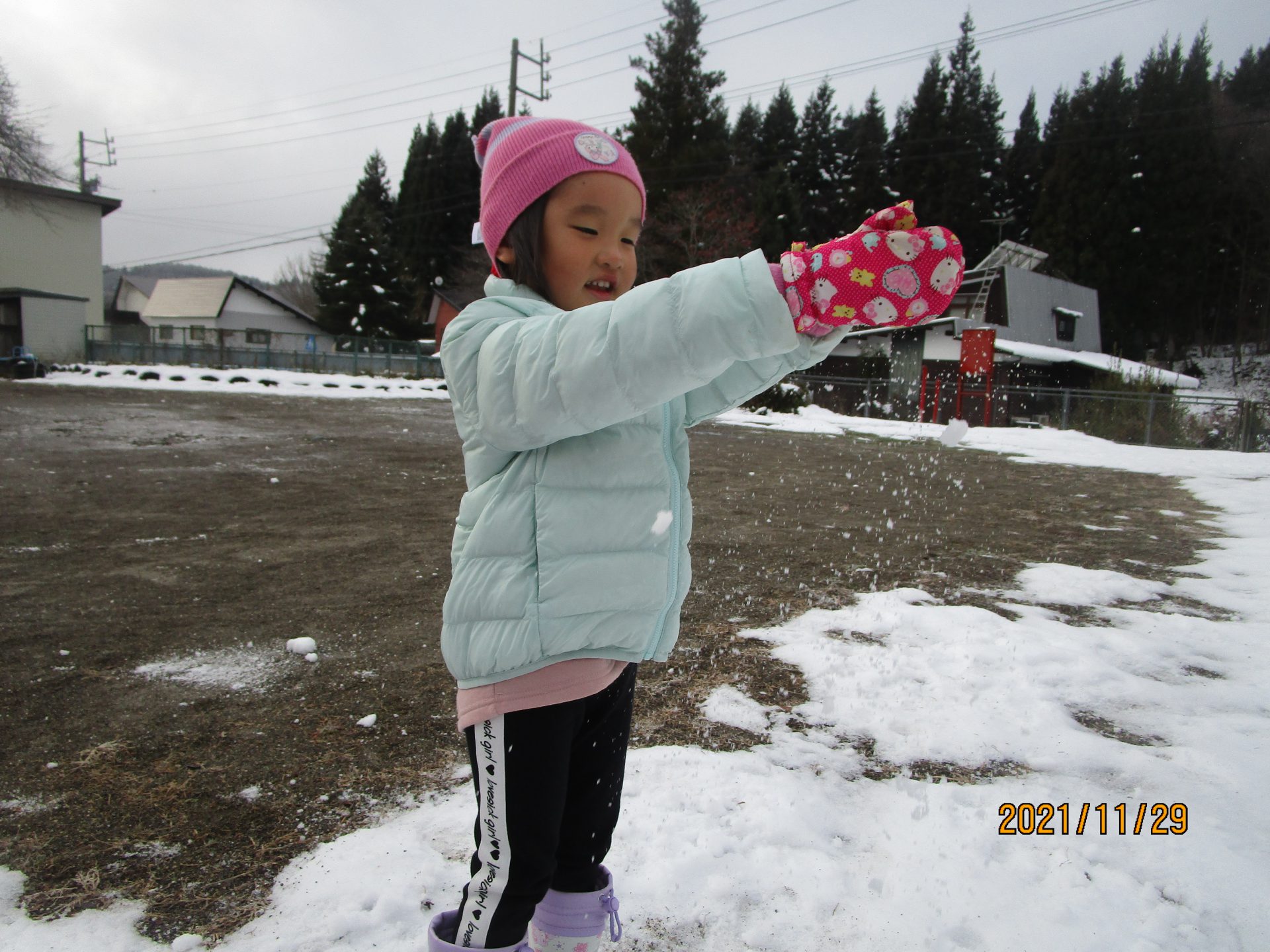 いよいよ信濃町にも冬がやってきました。今年の初雪を、みて、触れて、遊んだ子どもたち。こころが動かされた瞬間がいくつもありました。これから冬も本番となってきます。園庭中が真っ白になるほど雪が降るのを今か今かと待ちわびている子どもたちです。手洗い・うがいなどの風邪予防も忘れずに、今年の冬も元気いっぱい雪あそびを満喫していこうと思います。