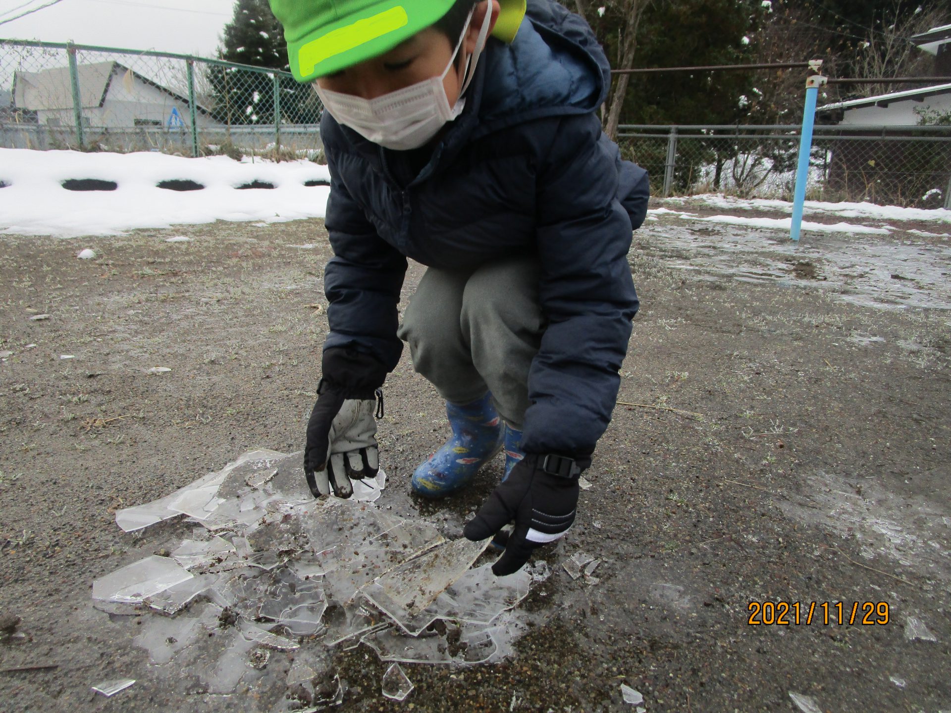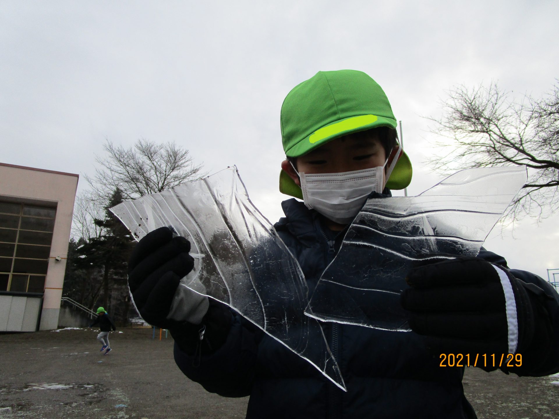 先週まで水たまりだったその場所は凍ってぴかぴか輝いていました。