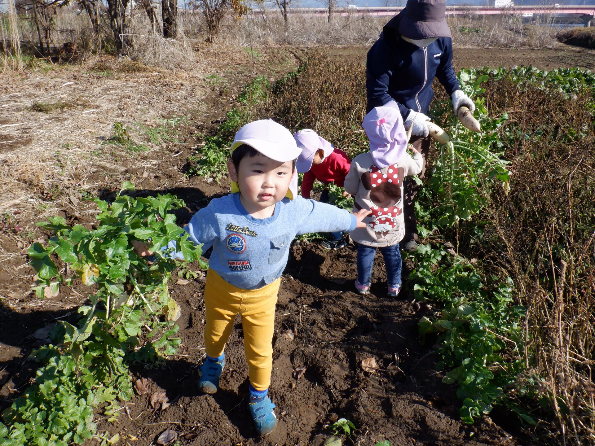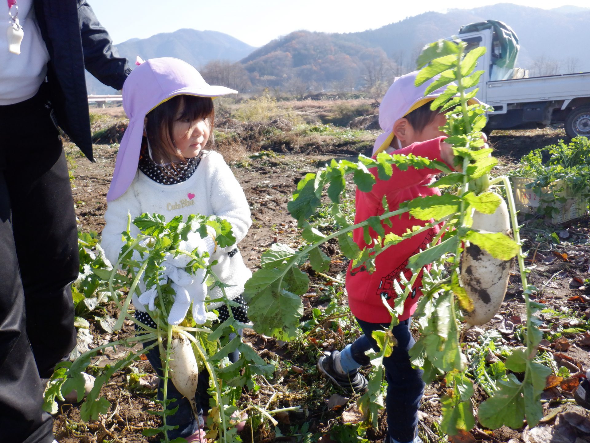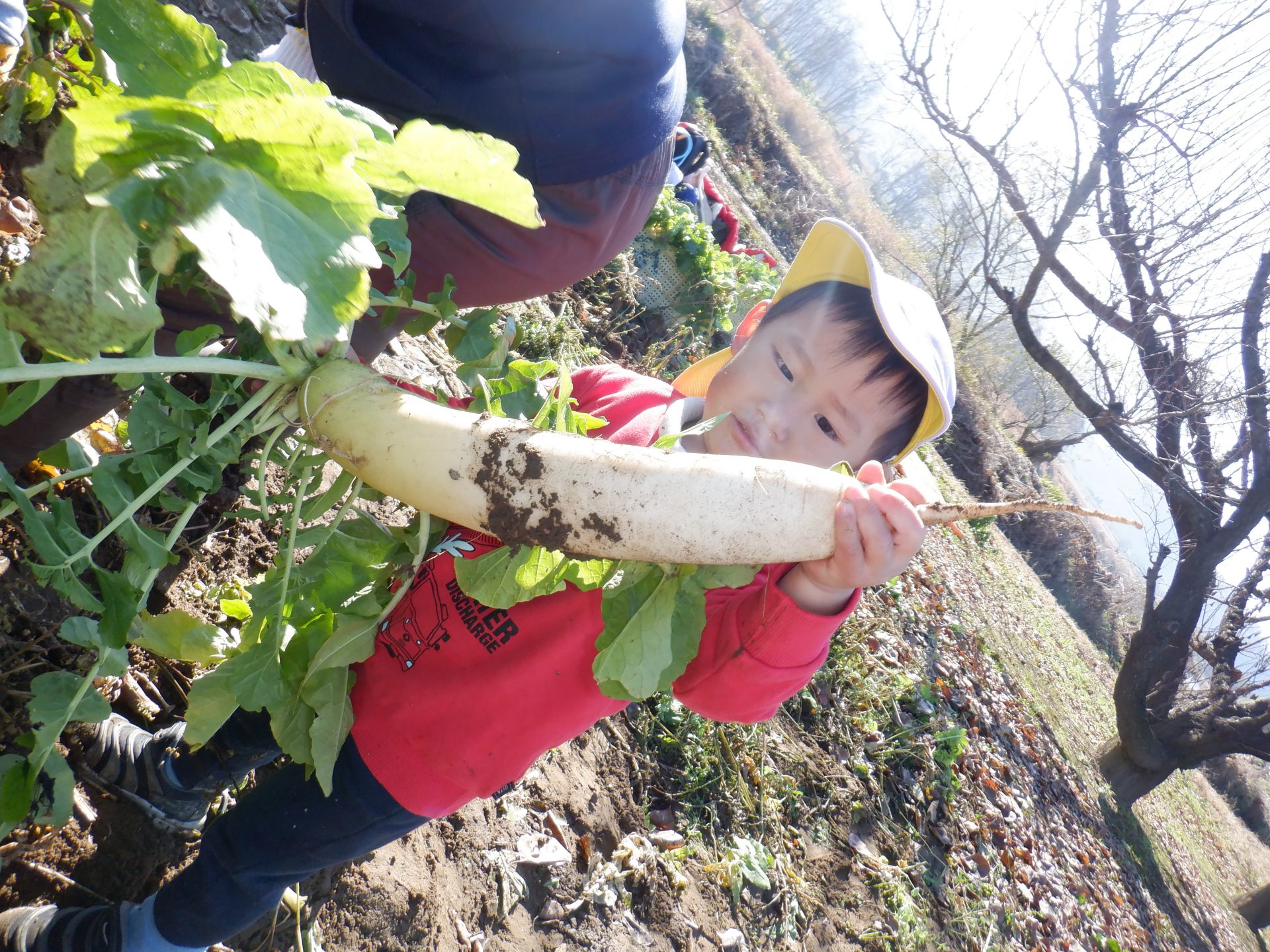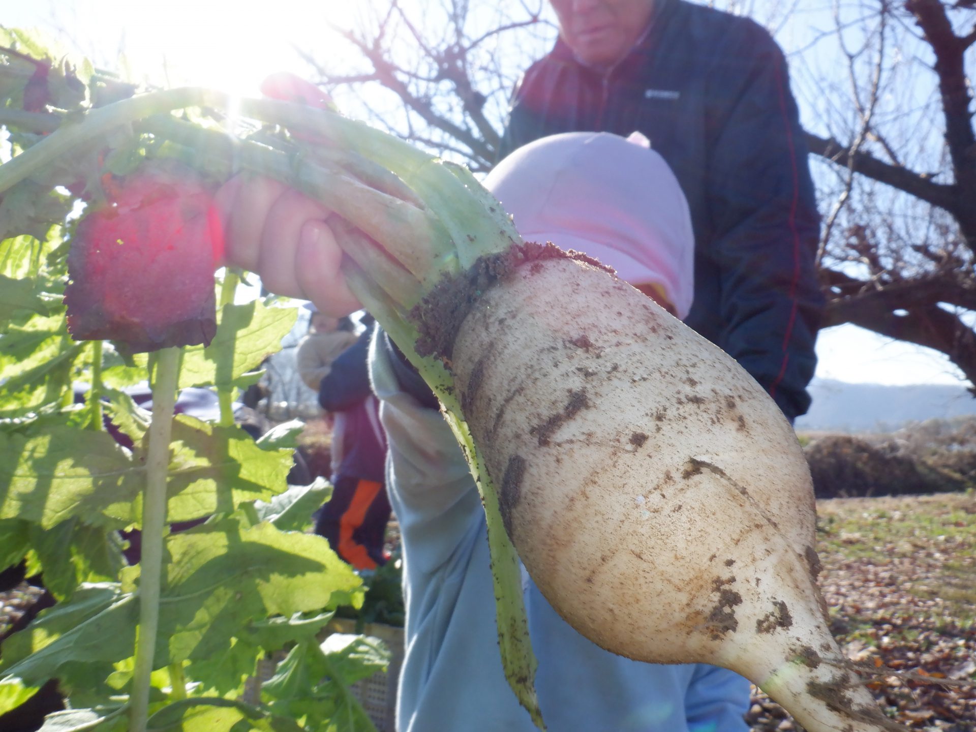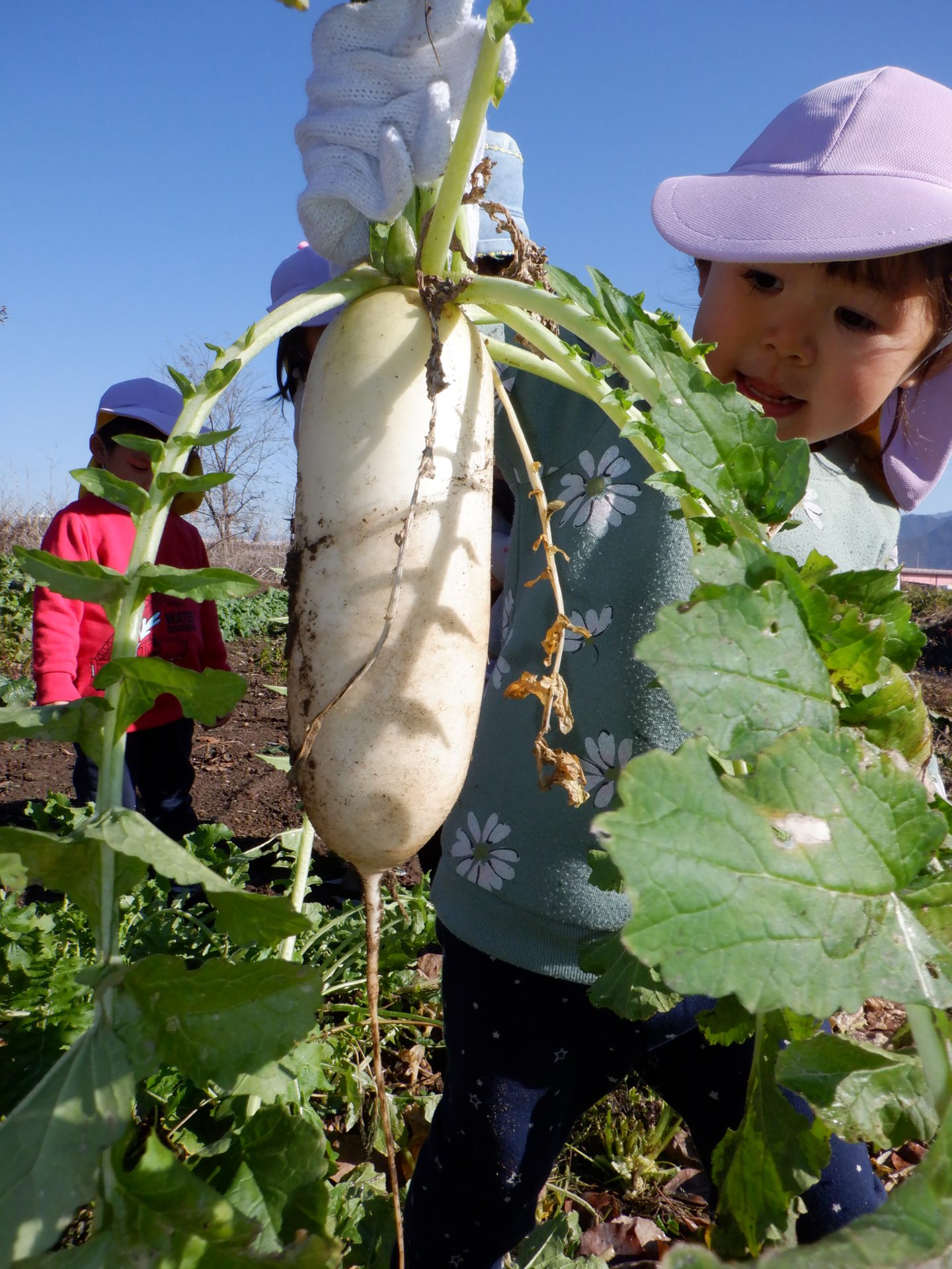 「だいこん、1こ? 2こ? ん~・・・? ・・・たくさんとったね~」