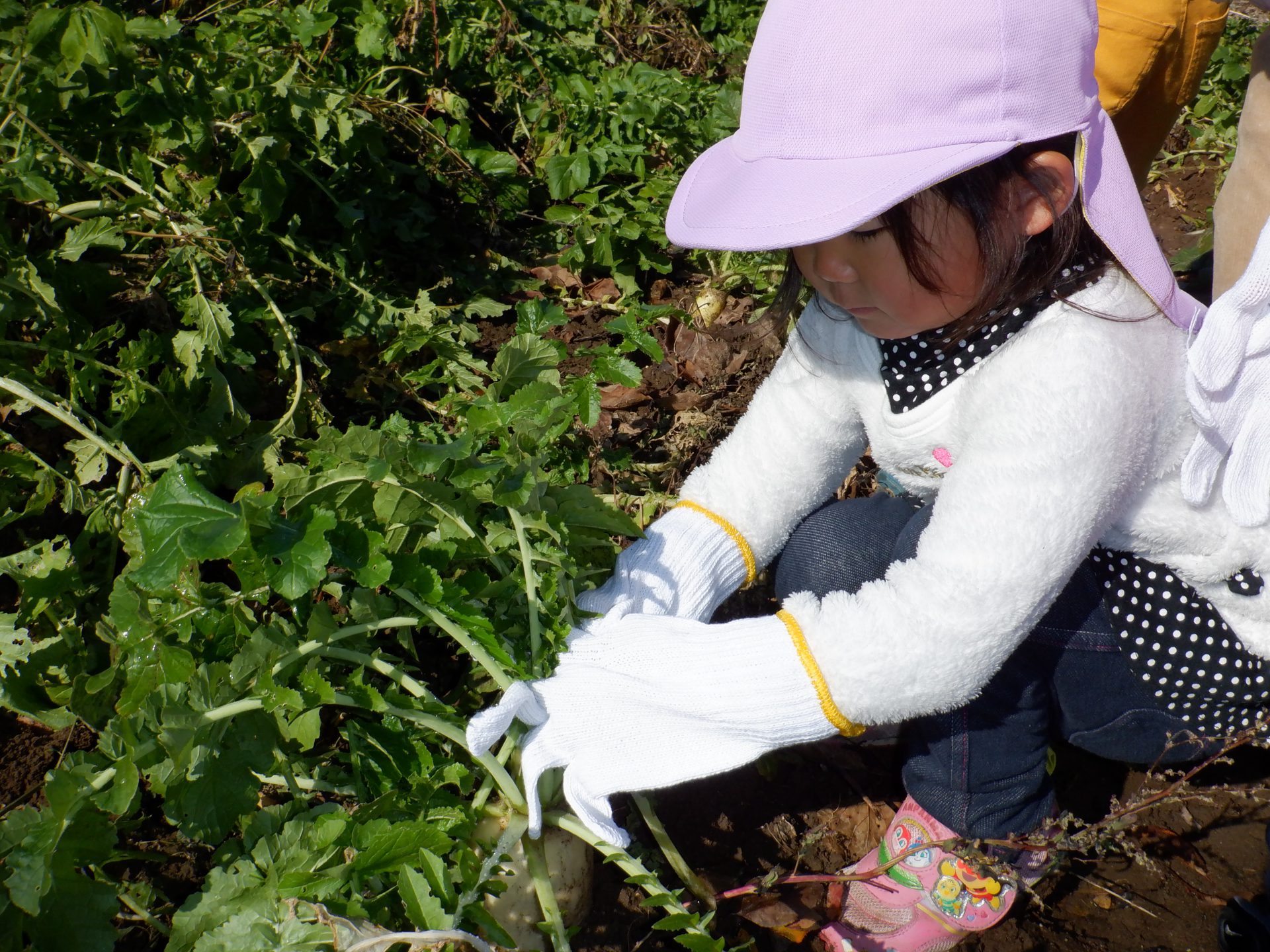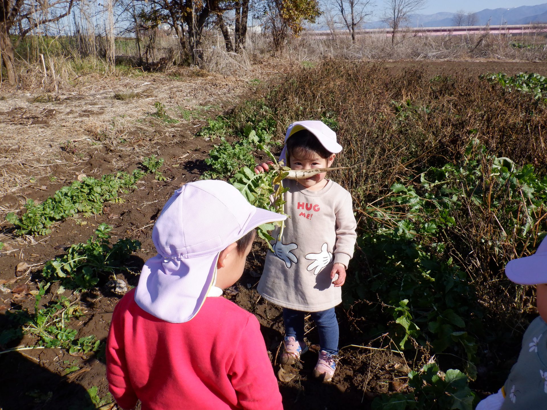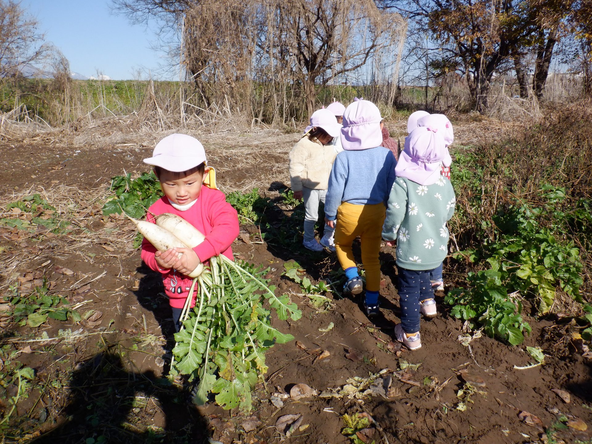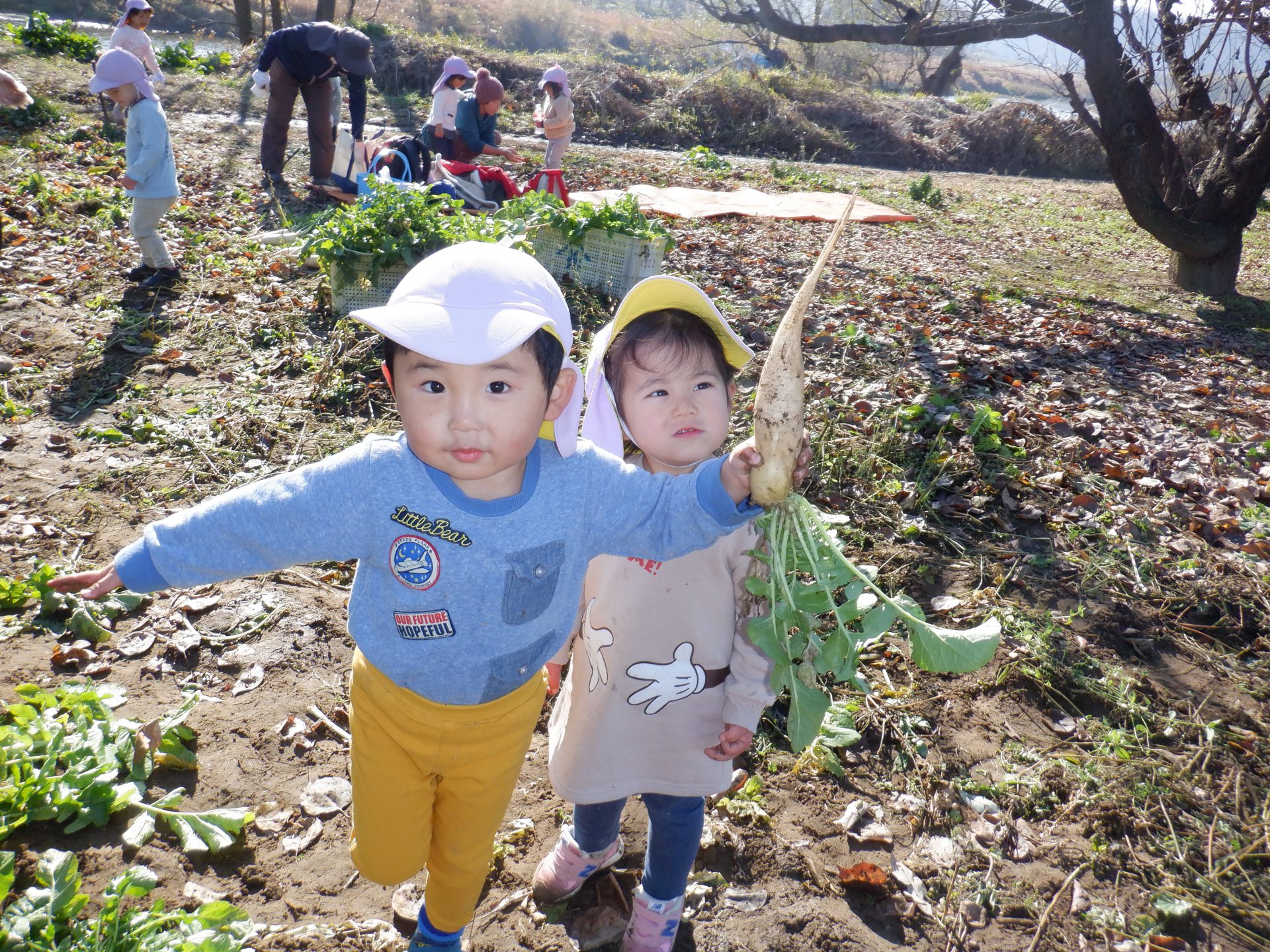 「だいこん、1こ? 2こ? ん~・・・? ・・・たくさんとったね~」