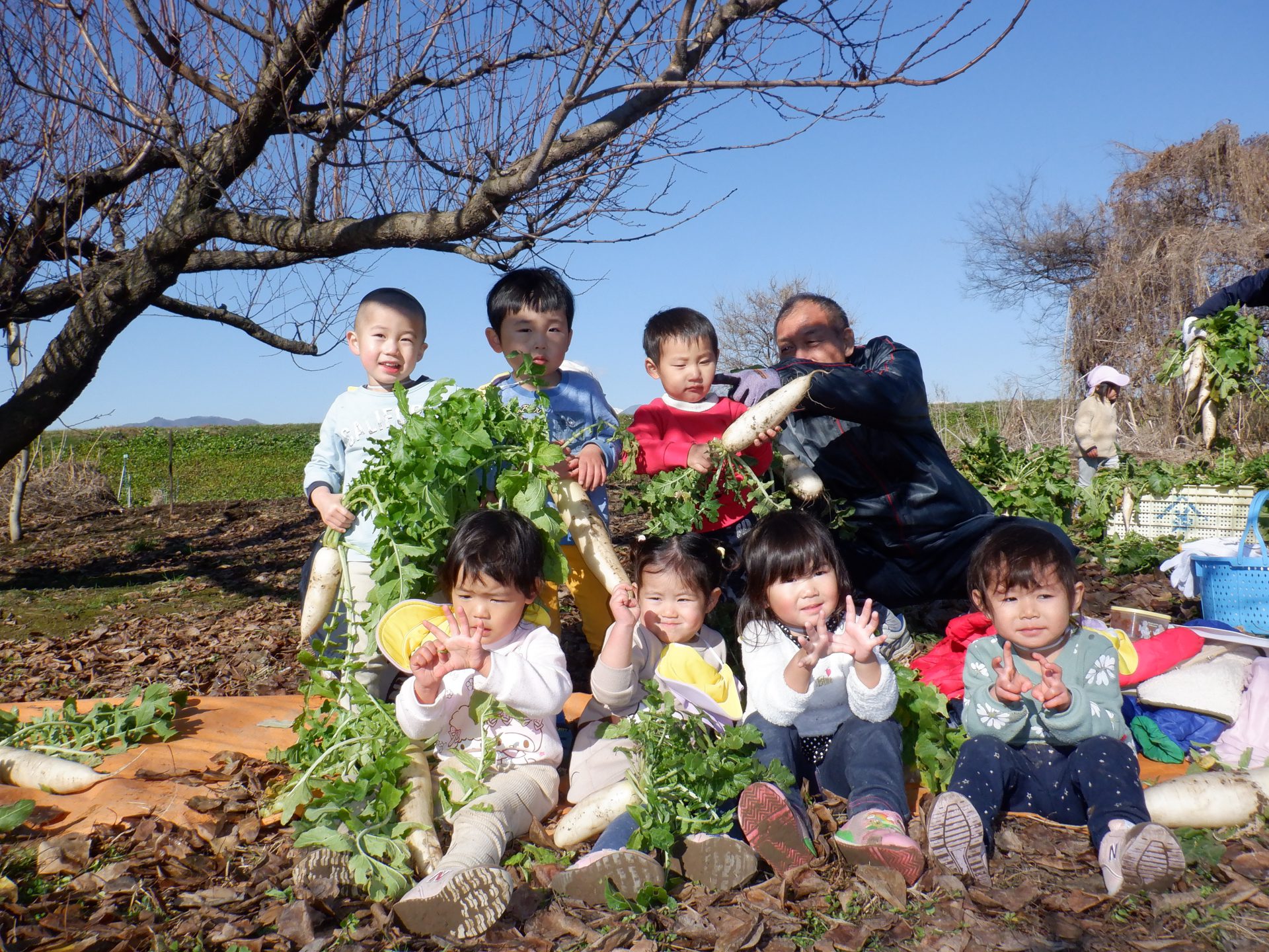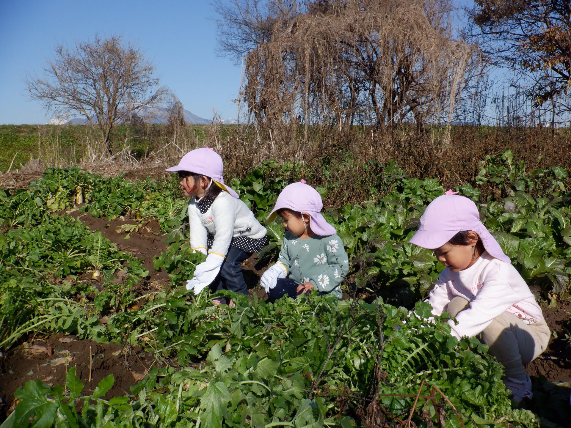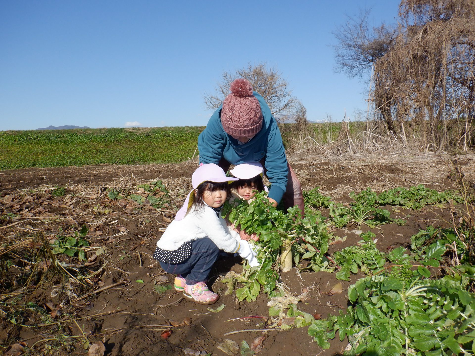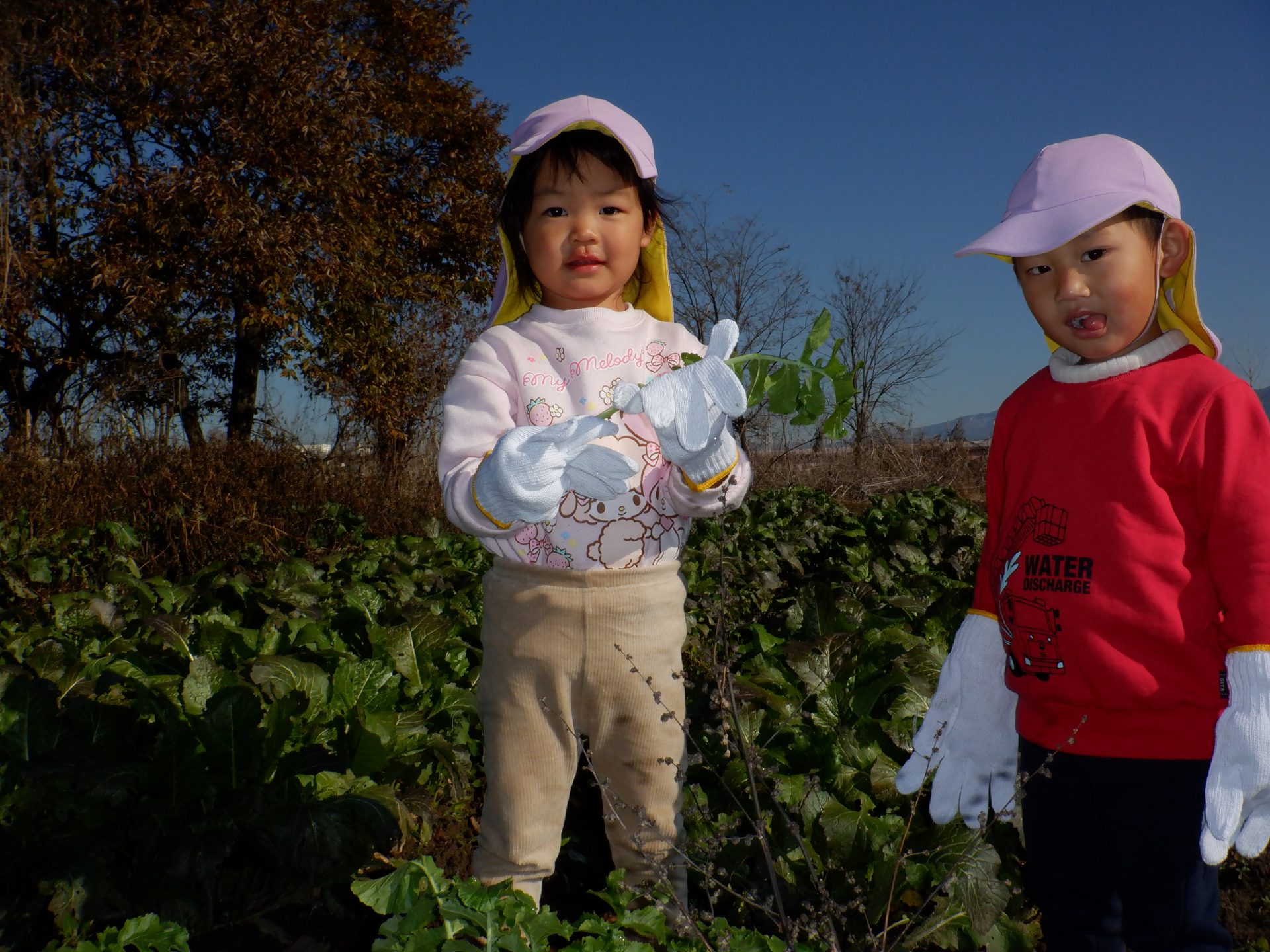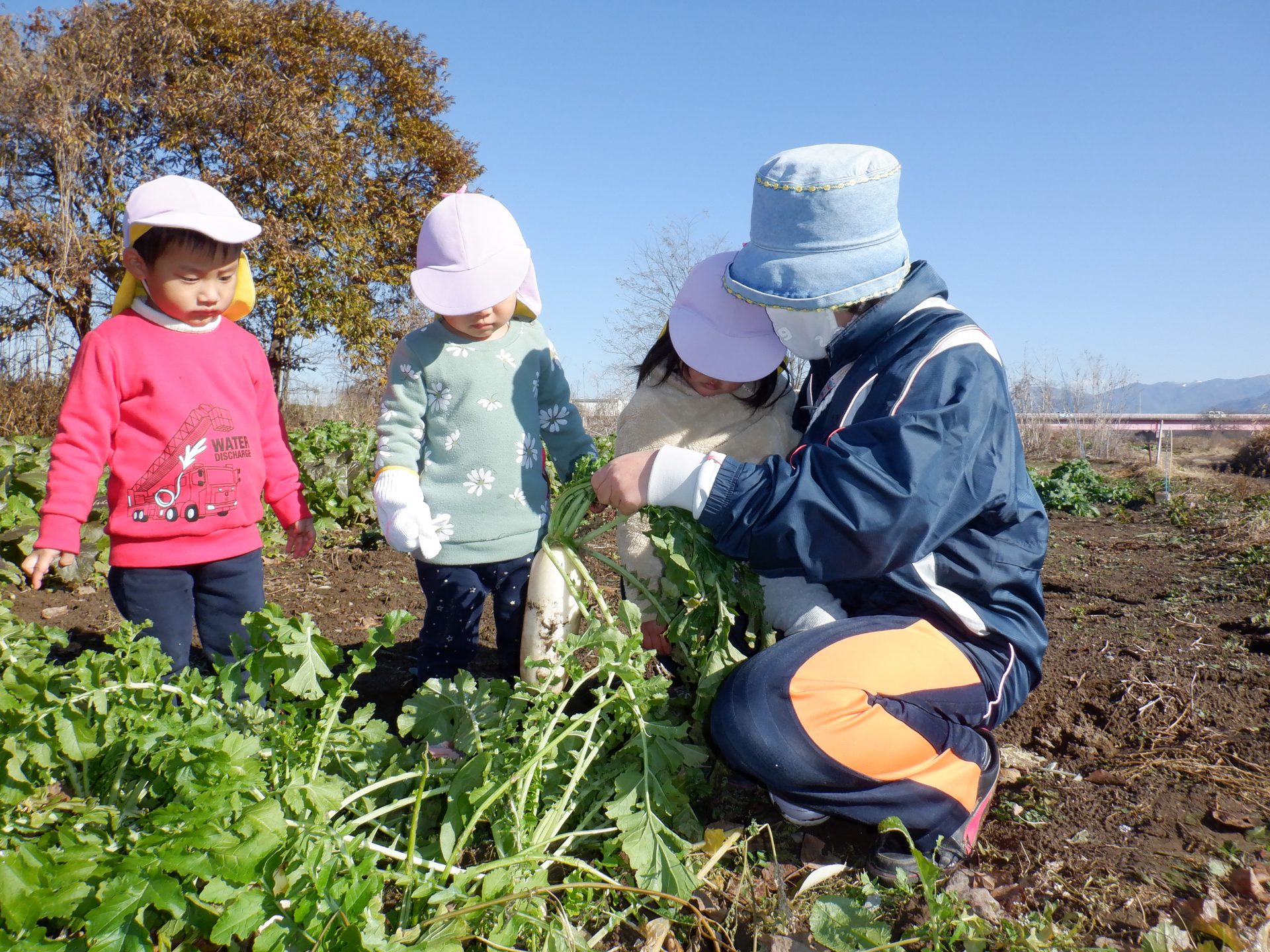 「だいこん、1こ? 2こ? ん~・・・? ・・・たくさんとったね~」