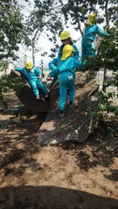 また、石の上からジャンプをして常緑樹に触ったり、よじ登ろうとする姿もありました。