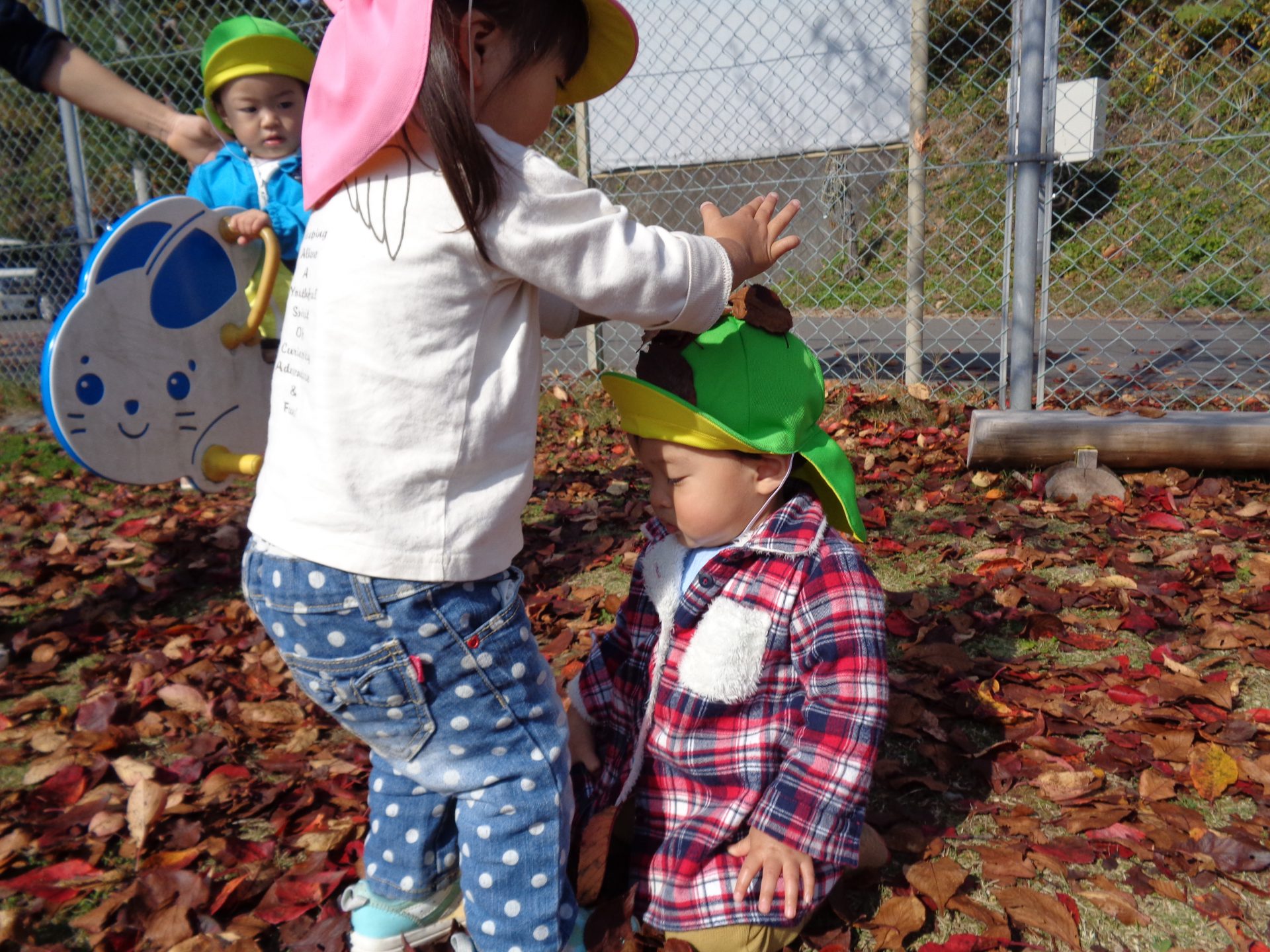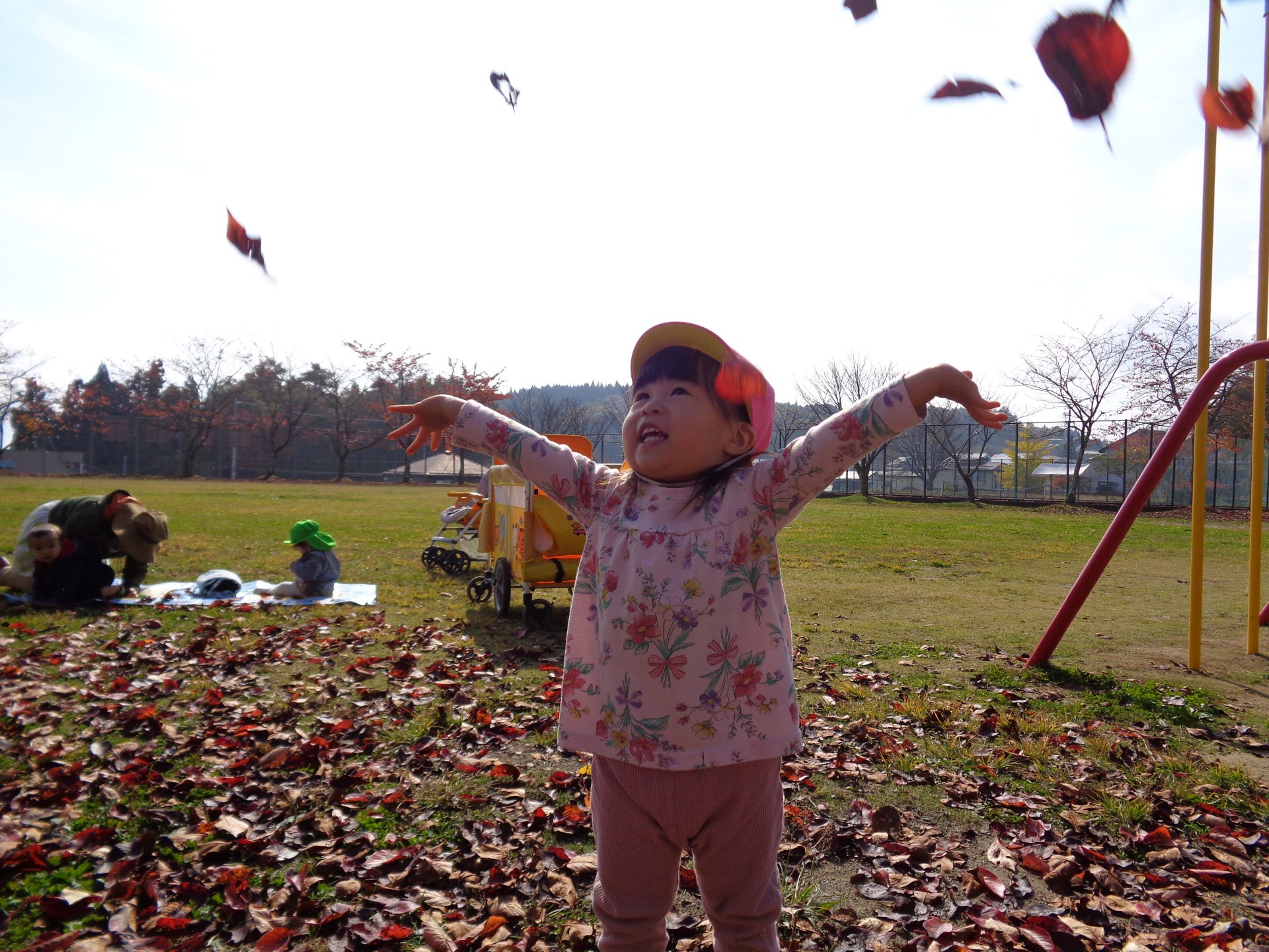 「うわ~葉っぱの雨だ~」