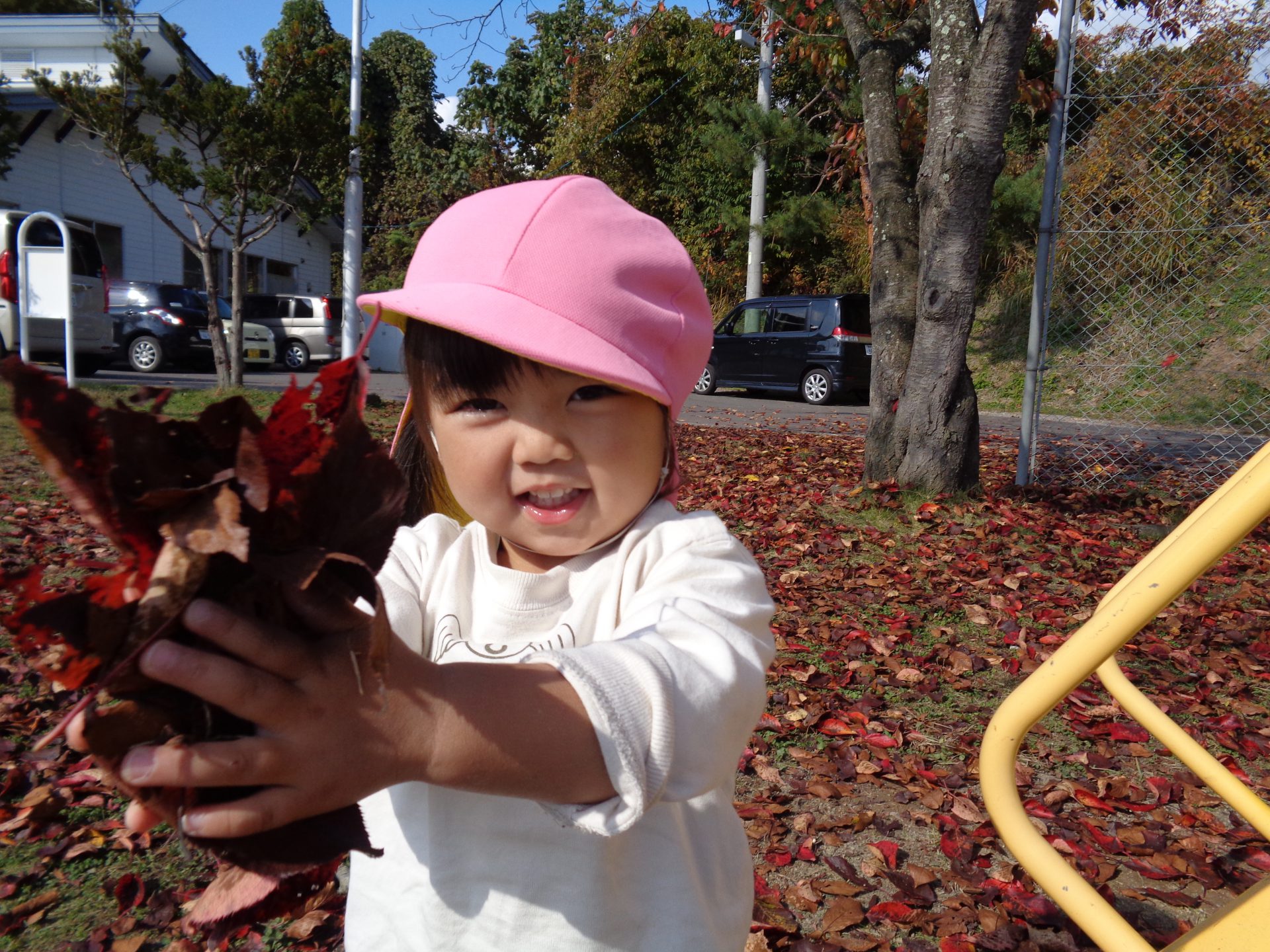 ・秋の自然との触れ合いの中で、保育者が感動したことを伝えたり、子どもの発見や驚きに共感するように心掛けていきたいと思います。