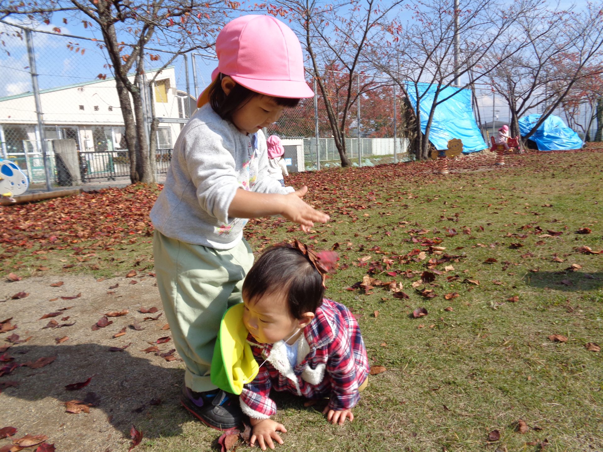 年齢は異なりますが、日頃から戸外遊びや散歩などの活動を共にしている子ども達。