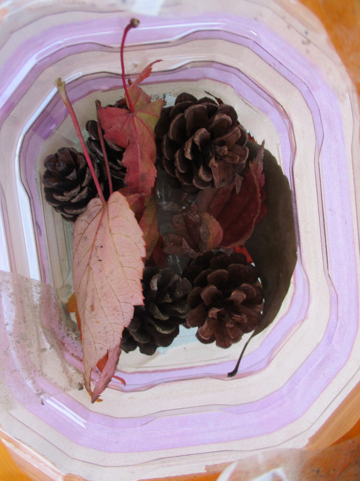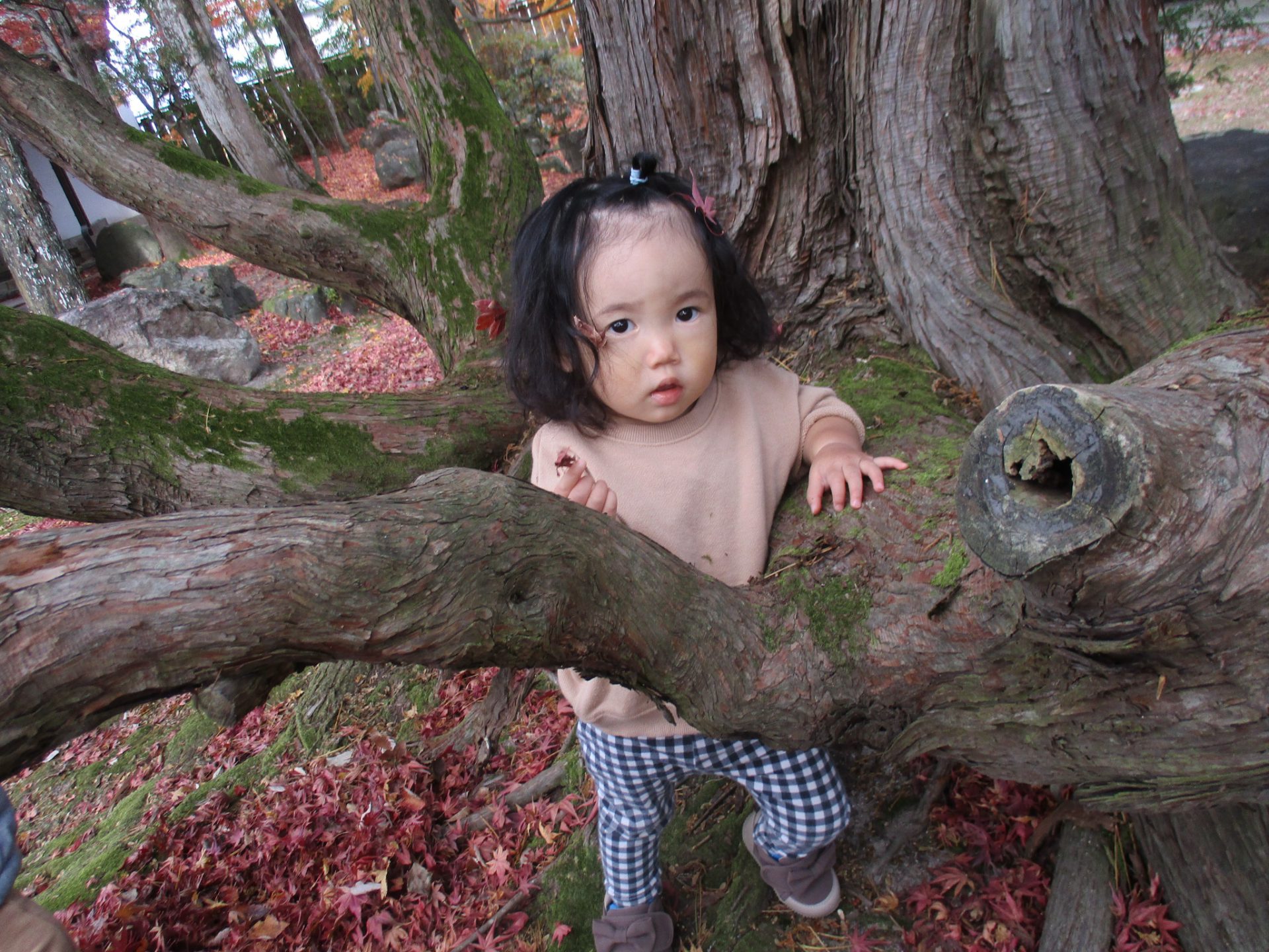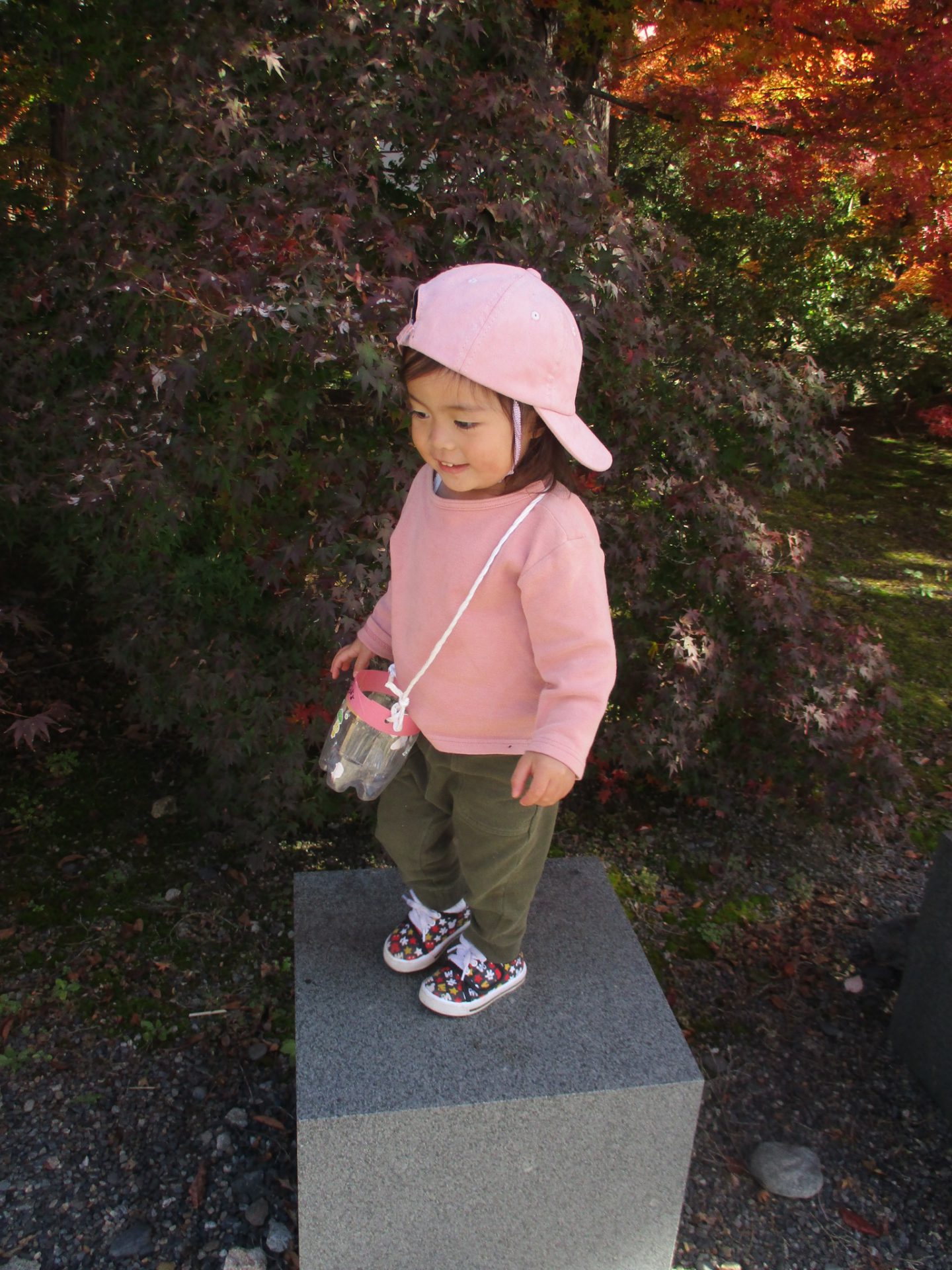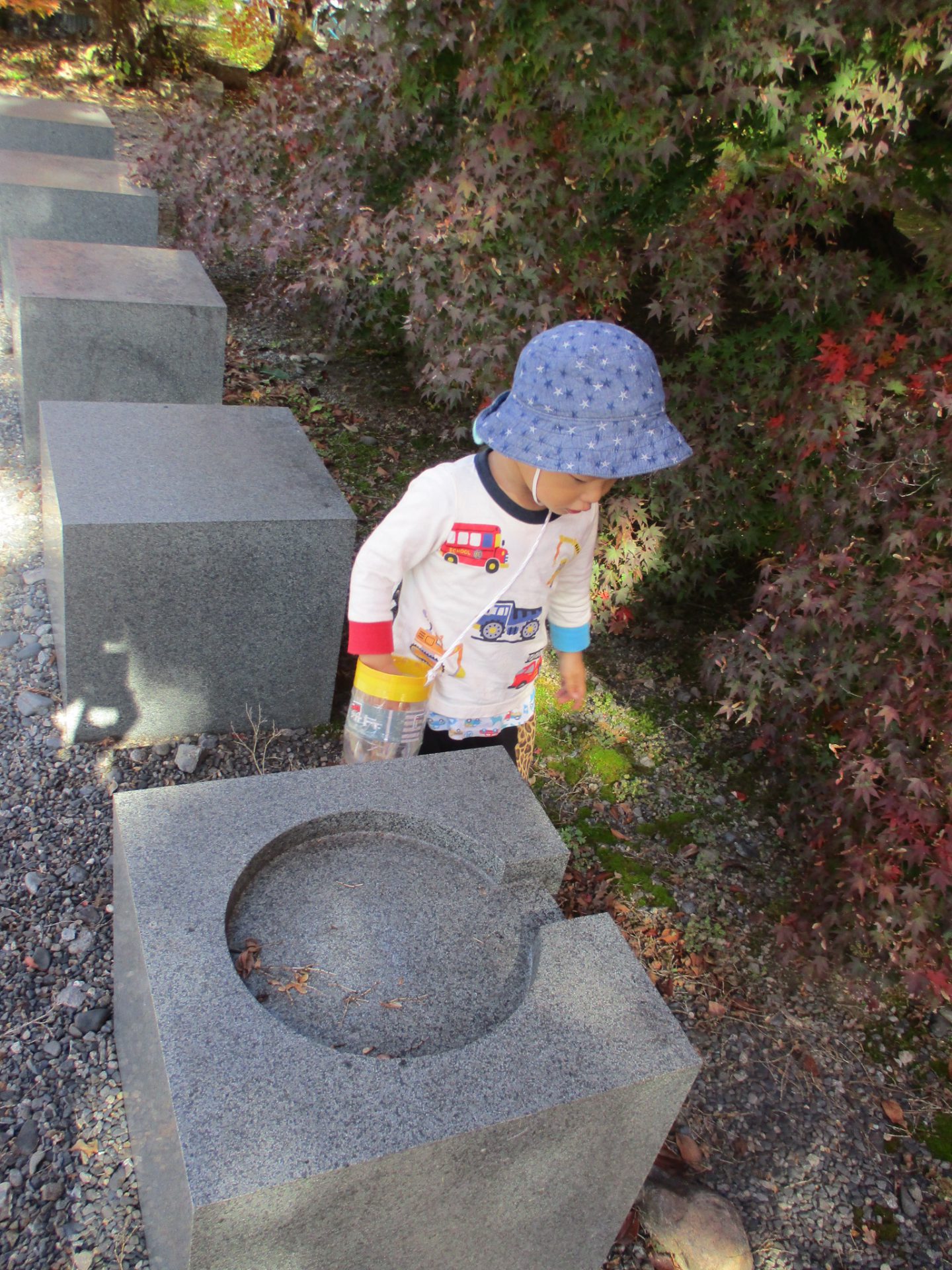 たくさんの真っ赤な落ち葉を見て散歩バックに集める姿、子ども達の上から葉っぱを散らすとうれしそうにする姿、葉っぱかんむりに興味を持って葉をくっつけて頭にかぶりポーズをとる姿...一人ひとり楽しさを感じることはちがうけれど葉っぱに興味を持てたことにうれしく思います。成長していく中での未満児のこの時のこの体験が土台になっていってすくすくと育っていってほしいと思います。