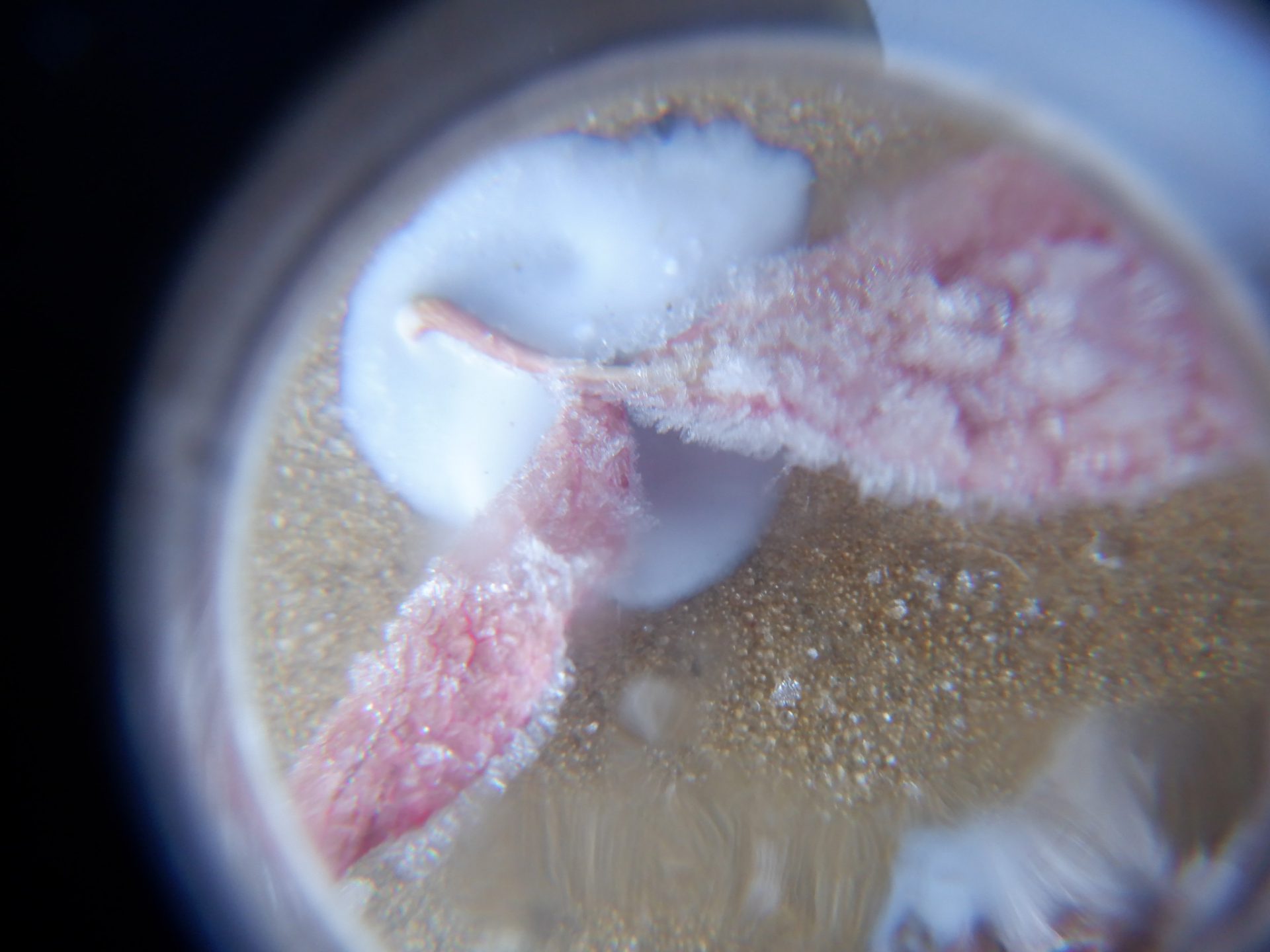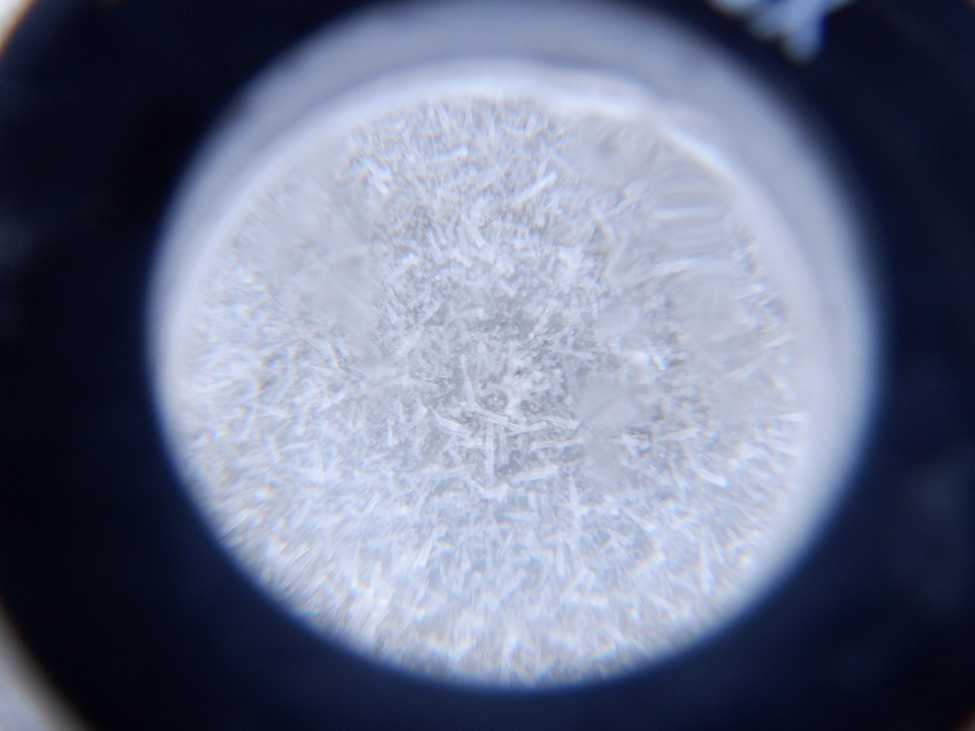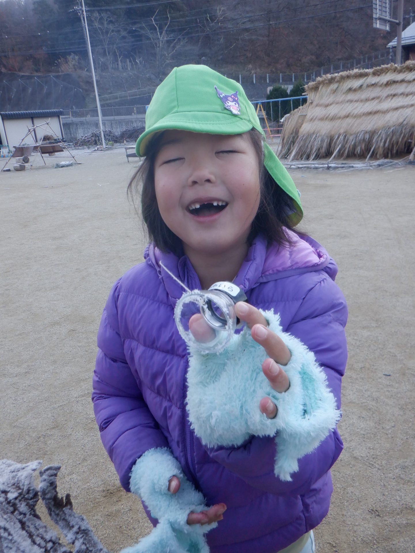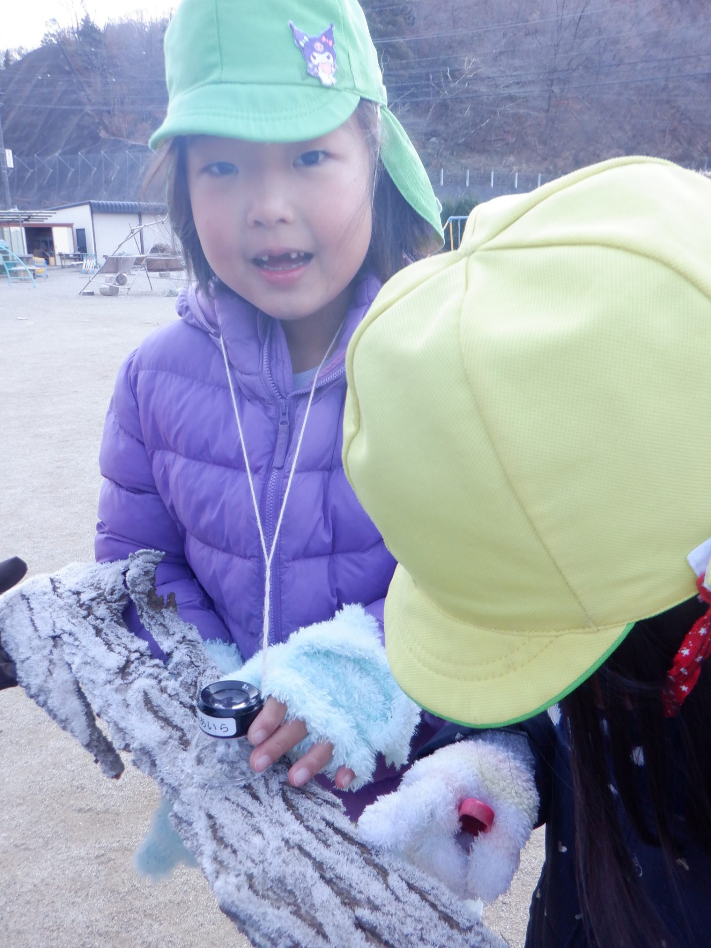 「見て~ルーペに(霜が)付いちゃった!笑」
