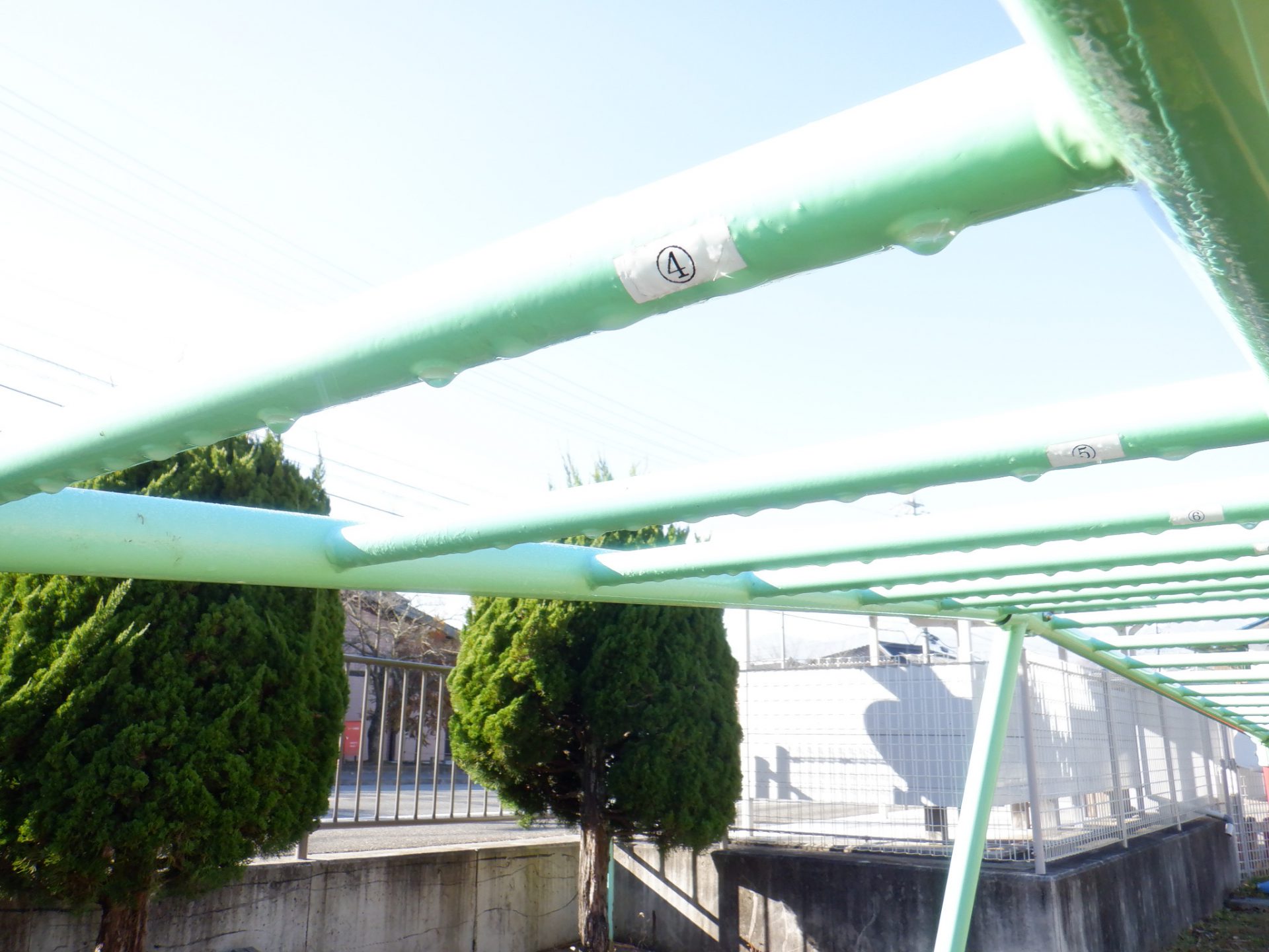 遊具から真剣に霜を削り取っています。