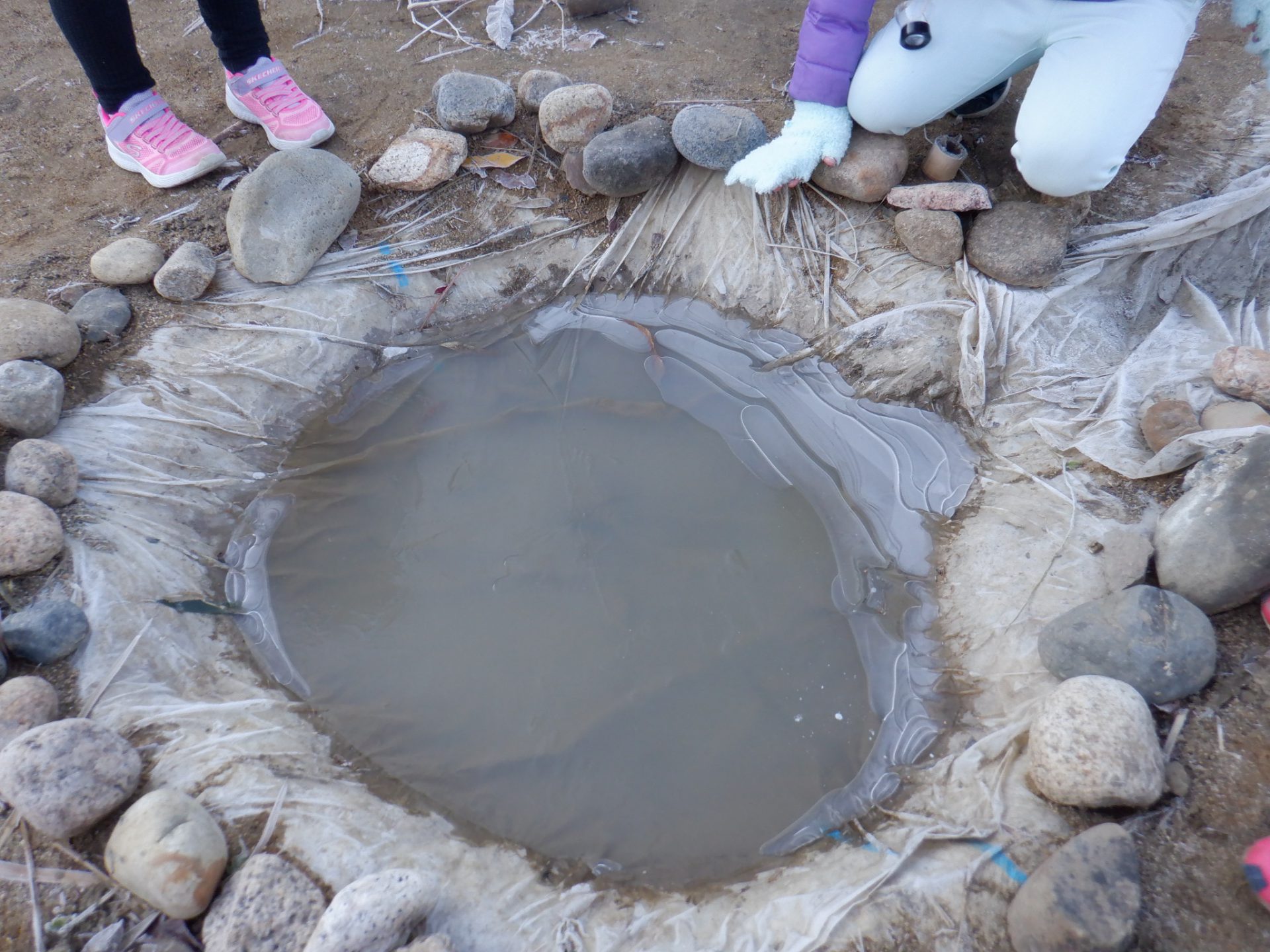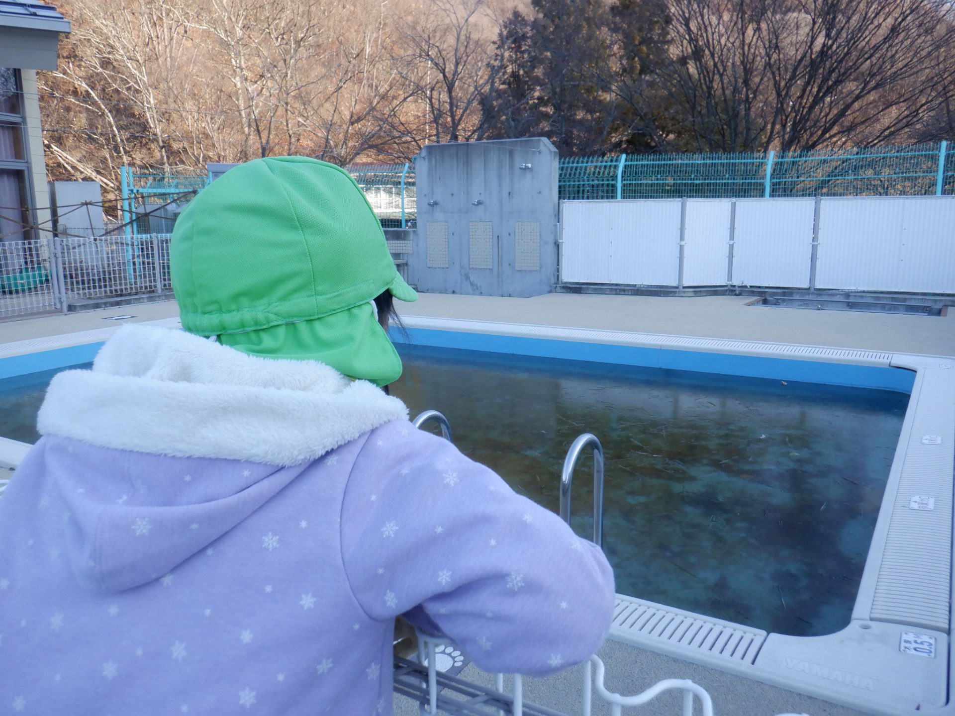「ねえねえ! プール凍ってるよ!!」