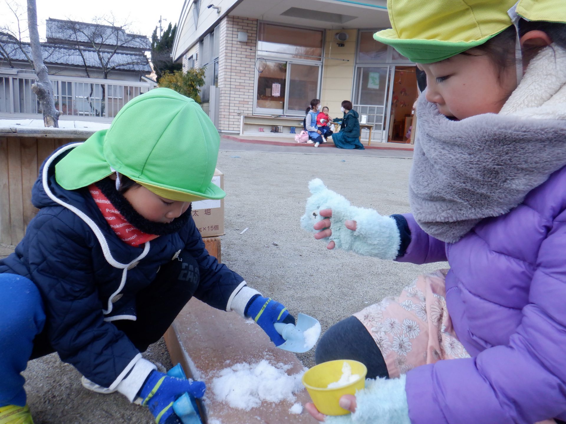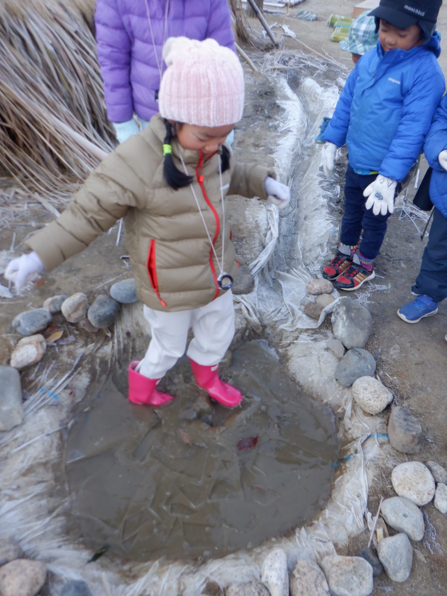 寒さも楽しめる体と心、気づきや発見を楽しむ仲間、共有できる友だちの存在が子どもたちの意欲をさらに高めています。この日の子どもたちの姿や関わりを通して、成長を改めて感じることができ嬉しくなりました。