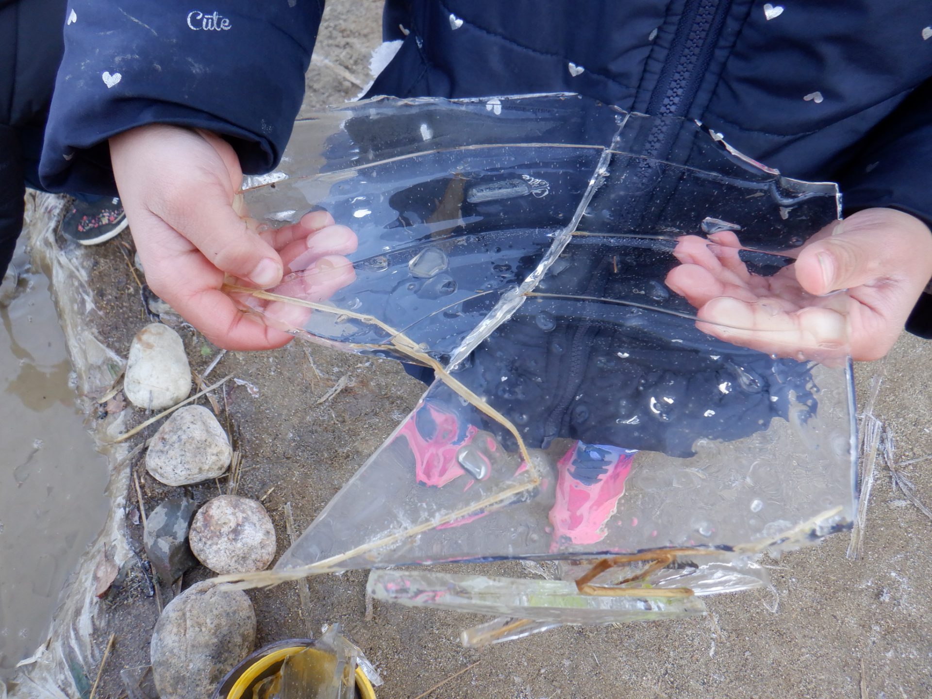 「三角の氷みっけ」
